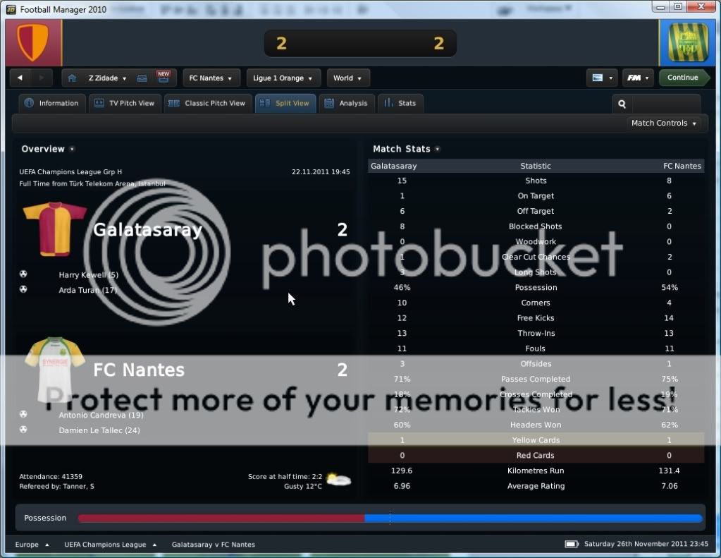 Seo Beraldo Postado 11 de Junho 2010 Denunciar Postado 11 de Junho 2010 Excelente temporada, o Nantes está fazendo. E que bom que está conseguindo a consistência que desejava. Minha curiosidade maior é como o Nantes irá na UCL. A vitória contra o Real foi excelente. Eh! Posso dizer que fiquei muito contente com o desafio que propos! rsrs! tambem quero ver como vai ser na reta final da UCL, precisamos vencer o Spurs, ------------------------------------------------------------------------------------------ Nantes, 1 de Dezembro de 2011 Contra o Real Madrid, em Madrid, eu realmente não contava com o que aconteceu... Pellegrini e sua formação distante, não deu conta de penetrar em nossa defesa com Kaká ou Cristiano Ronaldo! E voltamos a França com o segundo lugar do grupo, deixando o Spurs em primeiro lugar, e o Real em terceiro! Zebra! O jogo começou quente, com Benzema abrindo o placar logo aos três minutos. Mas ainda no primeiro tempo, Le Tallec acertou um lindo chute da entrada da área em uma grande jogada ao estilo “Jeu à la Nantaiese”. empatamos, e assim foi até o final da partida, com a defesa bem estruturada, e sem querer correr riscos de perdermos a bola, jogamos na base do chutão mesmo. Após um desarme, que passar a bola pro lado que nada, era chutão la pro ataque, se Gignac conseguisse segurar a bola, a gente tentava algo, mas não era o caso. E assim ficou a partida! Novembro fui um mês confiante e seguro na Ligue 1, e pela primeira vez consegui não ser derrotado pelo Bordeaux, que antes me derrotara em três ocasiões de um total de 3 três confrontos. Foi um empate, suado, com uma grande apresentação de Candreva e Sessegnon. O italiano abriu o placar, e nos recuamos tentando segurar a vitoria, contra o Bordeaux que apertava bastante. Mas na virada do segundo tempo, Chamakh de fora da área empatou, e minutos depois, de fora da área, de um lance idiota inicado em tiro de lateral, Sessegnon arrisca de fora da área e vira! Mas Candreva estava inspirado, e no final da partida marcou seu segundo gol na partida, garantindo que nos permanecêssemos invictos, pelo menos até agora! Jogando contra o Havre, adivinhem quando abrimos o placar? Sim, aos três minutos com Gignac de fora da área certando um belo chute. Aos 13 minutos, Djourou de cabeça ampliou nossa vantagem em um cruzamento de escanteio. Com dois a zero no placar antes de completar 15 minutos de partida, recuei o time e mandei gastarem tempo, estava contente com o resultado e assim terminou a partida. Uma vitoria em cima dos turcos, e um emapte do Real contra os Spurs, praticamente assegurava nossa classificação para a próxima fase. Mas nenhuma destas previsões aconteceram. E pior, sentimos o amargo gosto que temos dado a nossos adversários, o de sofrer gols nos minutos iniciais da partida. Em 17 minutos de jogo, e o Galatasaray já estavam vencendo por 2x0. Mas nos temos um grande time, e fomos atrás do resultado. Antes de virar o primeiro tempo, já conseguimos nosso empate. Primeiro Candreva diminuiu chutando da entrada da área, e minutos de pois, o próprio Candreva fez uma jogada de linha de fundo para cruzar e Le Tallec empatar a partida. Pensei que os Turcos fossem partir para cima, mas após nosso empate fulminante, eles optaram em se defender até por volta dos 60 minutos do segundo tempo, quando voltaram a atacar. Aceitei isso como um desafio para tentar um gol no contra ataque usando da velocidade de Gameiro, Le Tallec e Candreva. Em duas jogadas de contra ataques, quase marcamos, sendo desarmados segundos antes da conclusão. E isso pos os turcos a novamente jogarem na defensiva. Sai contente com o resultado, mas uma vitoria do Real Madrid de 4x3 sobre os inglês, nos deixava com a terceira posição, com a ultima partida a ser disputada em Nantes contra os Spurs. Tabela Atual de nosso Grupo Fechamos o mês de Novembro com mais uma vitoria, e adivinhem, sim, gol logo no inicio. Com Boghossian e Gignac um pouco cansados, experimentei entrar em campo desde o inicio com Gameiro jogando como atacante jogador alvo com ordens de se enfiar pelo meio em busca de lançamentos. E fico contente em ver que o entrosamento de meu time esta acontecendo, pois nossos gols tem saído como espero. O primeiro gol, Gameiro recebe de Le Tallec um cruzamento baixo, dribla Landreau em um curto espaço e toca para o gol em uma linda jogada (É o gol do resumo do mês). No segundo gol, Le Tallec se aproveitou de um erro de passe adversário, roubou a bola, entrou na área e chutou rasteiro batendo o otimo goleiro do Lille. Nosso terceiro gol, contra ataque pela esquerda, Feghouli cruza, Boghossian que entrara no segundo tempo de cabeça passa para tras, e o baixinho Gameiro marca seu segundo na partida. Uma falha de marcação de nossa zaga permitiu ao Lille a marcar o de honra, mas em nenhum momento apresentaram risco maior a nossa solida defesa. Bom, o Lyon encostou na tabela, esta em quinto lugar. Mas nos deslanchamos de tal forma, que posso até relaxar e respirar um pouco fazendo um rodízio de jogadores. Estamos muitos pontos a frente do segundo colocado, e com enormes chances de conquistar o titulo da Ligue 1. Sem sofrer derrotas, e atualmente com a segunda melhor defesa do campeonato, acredito que o equilíbrio de ataque e defesa que eu conseguia nos FM do passado, estou conseguindo agora através dos gritos! UFA! E o que me deixa mais empolgado, e nunca ter deixado de lado a sugestão do GG de jogar com o “Jeu à la Nantaiese”. Apesar de indicar a folga, aos jogadores, não pretendo fazer isso não, continuamos firmes e fortes na competição, em busca de manter esta boa distancia que temos dos demais candidatos ao titulo. Talvez o rodízio que eu esteja fazendo na frente esteja prejudicando um jogador se destacar quanto a artilharia da competição, apesar de Boghossian seguir na vice artilharia com 8 gols, 1 a menos que o líder Blas Peres. Imagino que se eu tivesse usando mais Boghos