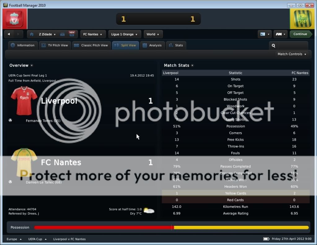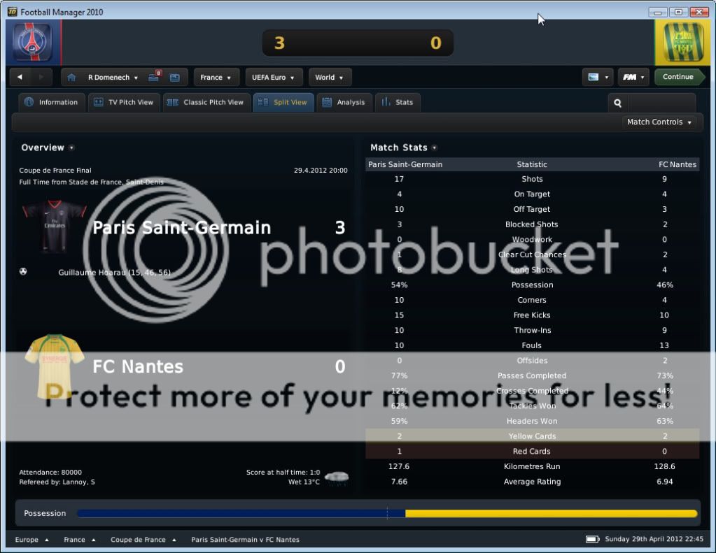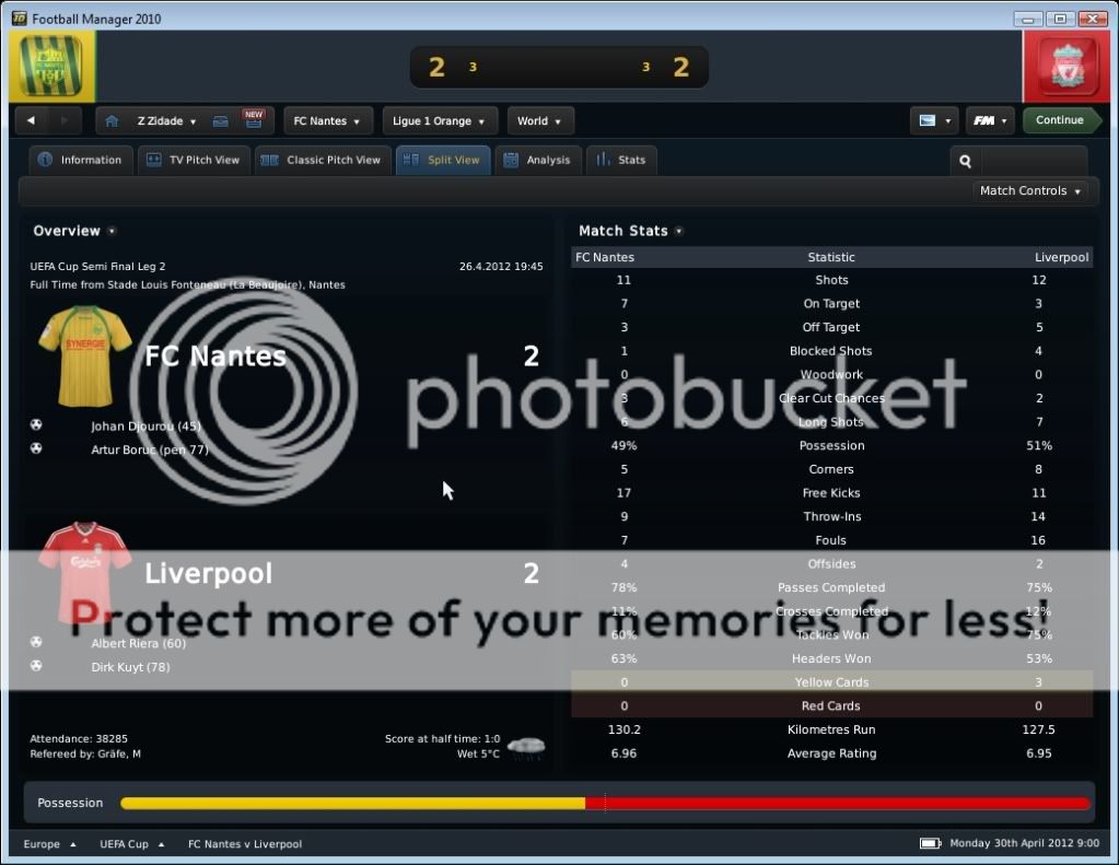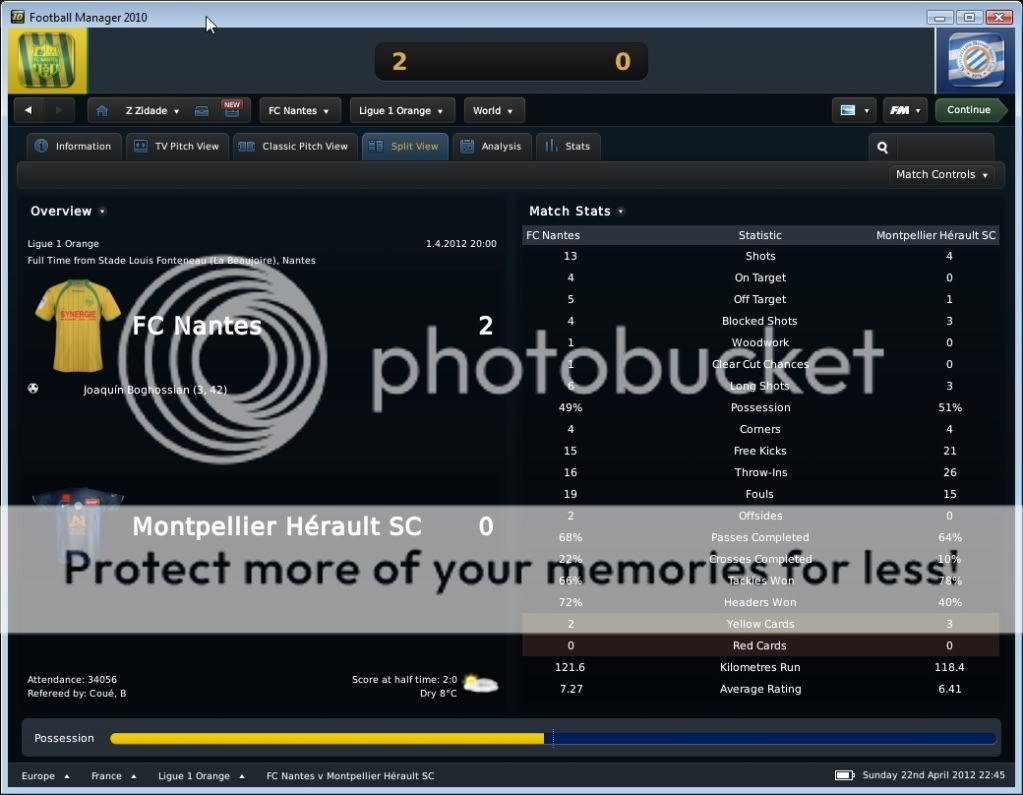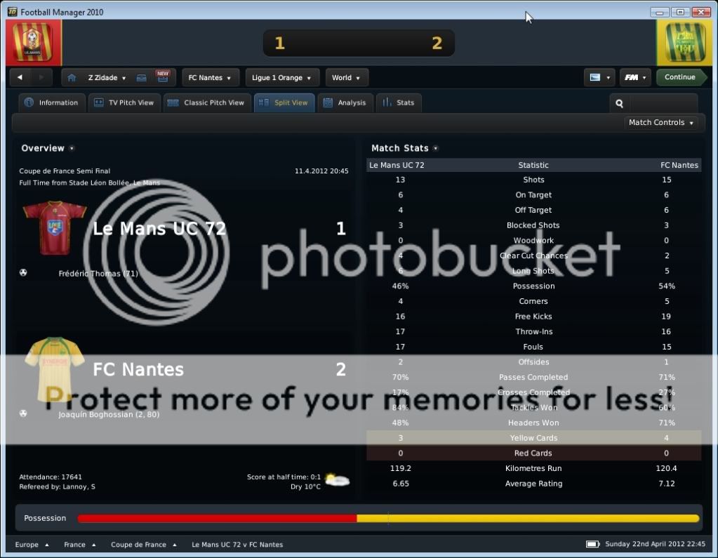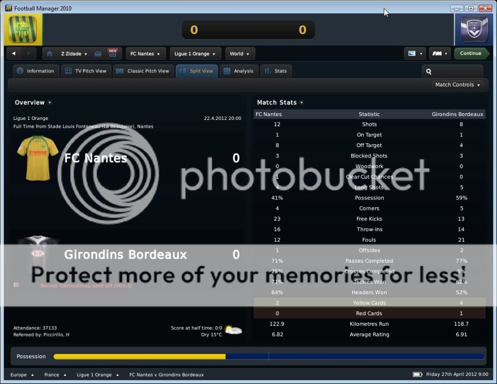 Seo Beraldo Postado 18 de Junho 2010 Denunciar Postado 18 de Junho 2010 ------------------------------------------------------------------------------------------ Nantes, 15 de Abril de 2012 Em busca do titulo, que pode chegar antecipado, buscamos atacar desde o inicio, e ao “Jeu à la Nantaiese” obtivemos o nosso gol logo aos três minutos com Annan armando a jogada e Boghossian com frieza marcar. Ah, vale colocar que agora Bogholles não chuta mais com violência, e sim coloca a bola no canto do gol, algo que esta influenciando na hora de finalizar. Bogholles fechou o placar ainda no primeiro tempo ao acreditar em uma bola recuada para um defensor, roubou a bola e a queima roupa marcou. Na seqüência, fomos a Espanha para decidir nossa permanência na Europa League empatando com o Sporting Gijon. Estava decidido a poupar meus jogadores, não mandando um time reserva, e sim jogando atrás, controlando a posse de bola, e organizando poucos mais eficientes ataques. Infelizmente em uma jogada de escanteio, os espanhóis saíram na frente. Mas nossa resposta foi imediata, tão logo reiniciamos a partida, Kakuta correu pelo flanco esquerdo com a bola e cruzou na medida para Andre-Pierre Gignac. E assim foi até o final da partida, e vamos a quarta de final. Mas agora é pedreira, temos o Liverpool pela frente! O Milan deu adeus a competição ao perder para o HSV, mostrando que os alemães estão fortes! E o Sunderland, quase surpreendeu o Man City. Resultados Finais na Quarta de Final da Europa League Jogando contra o Grenoble, sofremos com uma boa marcação em nossa intermediaria, e isso dificultou nossa organização de jogo. Matic não tinha tempo para conseguir iniciar jogadas, pois sempre havia um jogador em sua marcação, e o apertando. Dei maior liberdade para meus alas, pois assim puxaria dois marcadores conforme a gente fosse subindo com a bola, e assim foi. Gassama e Bastos cansaram de entrar na área, ou chegar na linha de fundo, mas nada de gols! O gol saiu de pênalti, quando Gassama fora derrubado. Quando Bogholles cobrou, senti um frio na barriga, quando o goleiro acertou o canto. Mas a bola foi forte, e o gol saiu! Estamos a quatro pontos do titulo! Valendo pela semi final da Coupe de France, carimbamos a nossa presença em mais uma final de taça francesa. Começamos forte, e aos dois minutos Candreva deixou Boghossian na cara do gol, e o uruguaio botou a bola no fundo das redes. No segundo tempo, em um lance onde nossa defesa parou, mas Lukovic na esquerda dava condições, Thomas subiu sozinho para cabecear e empatar a partida. Bom, com o empate, queria evitar a prorrogação e apelei pra o jogo aéreo de Boghossian. E conseguimos o que queria, a vitoria. Em um cruzamento da direita, Bogholles subiu mais alto, e marcou o gol da vitória. Do outro lado, o Paris SG venceu o Toulouse, e nos enfrentara na final da Copa Francesa. Força Nantes! Começamos dançando leve contra o Auxerre, e logo aos quatro minutos Gameiro abriu o placar chutando cruzado. Ficamos muito alegres quando vimos no placar eletrônico que o OM estava a perder por 1x0 do PSG, e isso nos dava o titulo com esta vitoria parcial em cima do Auxerre. Mas este titulo antecipado se passou quando quando Bertin empatou a partida nas costas de Lukovic. Nossa resposta, pra variar, foi imediata, e Faty apareceu na área para marcar seu primeiro gol pelo Nantes. Minutos depois, Boghossian de cabeça marcou nosso terceiro, mas ao mesmo instante o OM virou para cima do PSG, e nosso titulo antecipado foi adiantado! No segundo tempo, Opare foi expulso após dura entrada, e o Auxerre nos apertou, chegando ao segundo gol. Não querendo um empate, recuamos. Mesmo assim em um contra ataque, Boghossian se antecipou a um cruzamento baixo e marcou nosso quarto, e seu segundo na partida. Este gol também o colocou empatado com o turco do PSG na artilharia pela Ligue 1 com 18 gols. Ufa, por enquanto chega de Abril!, e olha que estamos na metade! No próximo post, o resto do mês, com os confrontos valendo a Europa League, e nossa chance de conquistar por antecedência o titulo da L1.