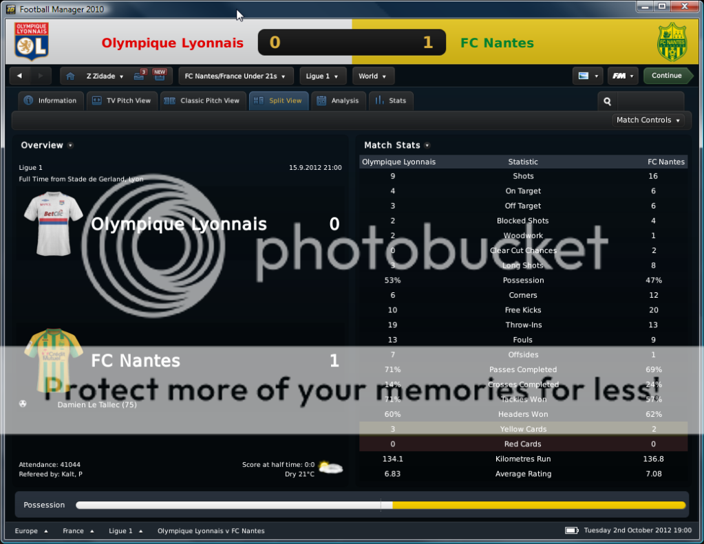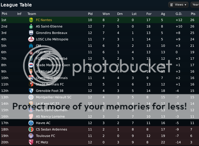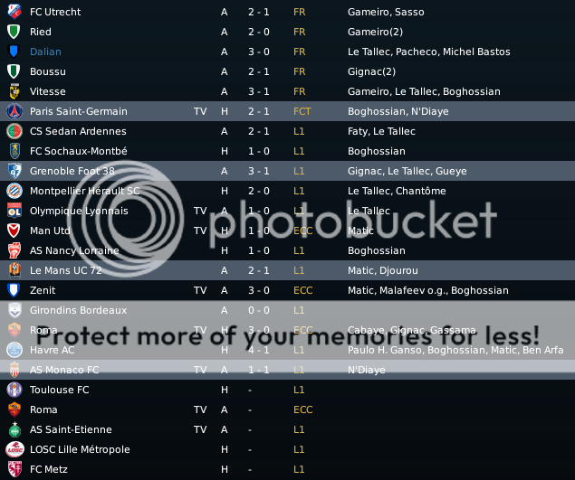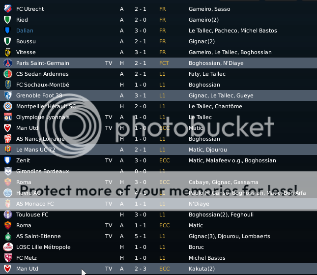 Seo Beraldo Postado 29 de Junho 2010 Denunciar Postado 29 de Junho 2010 ------------------------------------------------------------------------------------------ Nantes, 1 de Dezembro de 2012 Vencemos o Toulouse com certa facilidade para nossa defesa, pois apesar de dominar a posse de bola, o Toulouse pouco criou, e em ambos chutes que deram, Boruc defendeu com tranqüilidade. Já do nosso lado, Bogholles logo aos três minutos de jogo de cabeça marcou seu primeiro, e ainda no primeiro tempo, marcou um golaço, deixando meio Toulouse para trás ao driblar seu caminho para o gol (é o gol do mês). Feghouli fechou o placar no segundo tempo. http://i326.photobucket.com/albums/k413/newerabert/4%20Temporada/AA-3.png '> Viajamos a Itália para defender nossa posição na Champions League, e uma vitoria poderia garantir nossa presença na próxima fase. Aos 28 minutos, Gueye fez uma ótima jogada puxando a marcação do lateral esquerdo, enquanto Matic se enfiou pelo espaço. Gueye então fez um ótimo passe a rasgar para o sérvio livre de marcação entrar na área e mesmo sob pressão de Juan, abrir o placar! Como estávamos jogando fora de casa, recuei a linha defensiva, mas continuamos com mentalidade de atacar. Dos pés de Gueye, quase saiu o segundo gol, mas a defesa italiana se fechou bem, e aliviou a nossa oportunidade. No segundo tempo, o veterano Totti entrou em campo, e empatou a partida em uma bola cruzada e falha de nossa marcação. Que venha o Manchester United! http://i326.photobucket.com/albums/k413/newerabert/4%20Temporada/BB-4.png '> O St. Etienne seguia em segundo lugar, mas Gignac e seu hat-trick provaram que dificilmente alguém seria capaz de manter o mesmo futebol que o nosso. Os três gols do atacante partiram de lançamentos de nossa intermediaria. O primeiro, de Boruc cobrando falta. O segundo com Djourou aliviando uma bola para frente e Gignac oportunista guardou. Por fim, Feghouli lançou, e Gignac alcançou, correu ao gol, e chutou no momento certo antes do corte do zagueiro adversário. Djourou marcou o seu após no rebote de cobrança de escanteio, a bola voltar para o cobrador Feghouli, que colocou na cabeça de Djourou. Feghouli ainda cobrou um segundo escanteio para a cabeçada certeira de Lombaerts. O gol que sofremos quebrou a marca de 563 minutos sem sofrer gols! http://i326.photobucket.com/albums/k413/newerabert/4%20Temporada/CC-3.png '> O Lille briga para se manter entre os 5 primeiros, e tem feito um bom trabalho, mas seu estilo de jogo é recuado, e defensivo. Isso atrapalhou o “Jeu a la Nantaiese”, e tivemos uma magra vitoria. Mas o que importa são os três pontos! O goleiro artilheiro Boruc cobrando pênalti marcou o único gol de nossa vitoria. Jogamos com 10 homens a partir dos 55 minutos, e mesmo assim o Lille não saiu para o ataque. http://i326.photobucket.com/albums/k413/newerabert/4%20Temporada/DD-2.png '> Com o cansaço já batendo em nossa porta sem mesmo ter iniciado nossas campanhas nas copas francesas, jogamos com um mistão contra o recém promovido Metz. E como jogamos mal, vejam que pela media da equipe, poderíamos ter rendido muito mais! O gol saiu no segundo tempo, quando Bogholles entrou e mostrou a sua importância, dominou bonito, não foi fominha e deixou Michel Bastos na cara para marcar nosso gol da vitoria. http://i326.photobucket.com/albums/k413/newerabert/4%20Temporada/EE-2.png '> Um pedreira pela frente, Manchester United no Old Trafford! Mas nos entramos em campo sabendo da importância de mostrar nossa força, para que nas rodadas seguintes, nossos adversários tivessem maior respeito com nos. E aos dois minutos, como gostamos, abrimos o placar aos 2 minutos, quando Serge Aurier lançou de nossa intermediaria para Gael Kakuta correr em direção ao gol e marcar um bonito gol. Mas minutos depois Anderson empatou a partida! Quando Gignac saiu lesionado, optei em colocar Gueye, e mandar Kakuta para o ataque, aproveitando sua velocidade e imprevisibilidade. Foi uma aposta certa, pois assim que voltamos do intervalo, Matic lançou Kakuta nas costas da lenta defesa do MU, e o leve ponta avançou sozinho até concluir a gol! Mas os Red Devils são fogo, e arrancaram a virada nos últimos minutos da partida, com Macheda em jogada ensaiada e Rooney aproveitando uma falha de nossa defesa! Droga! Mas já estávamos classificados! Viva o Nantes, na próxima fase da Champions League! http://i326.photobucket.com/albums/k413/newerabert/4%20Temporada/FF.png '> Deixo o resumo do mês para a imagem abaixo! '>