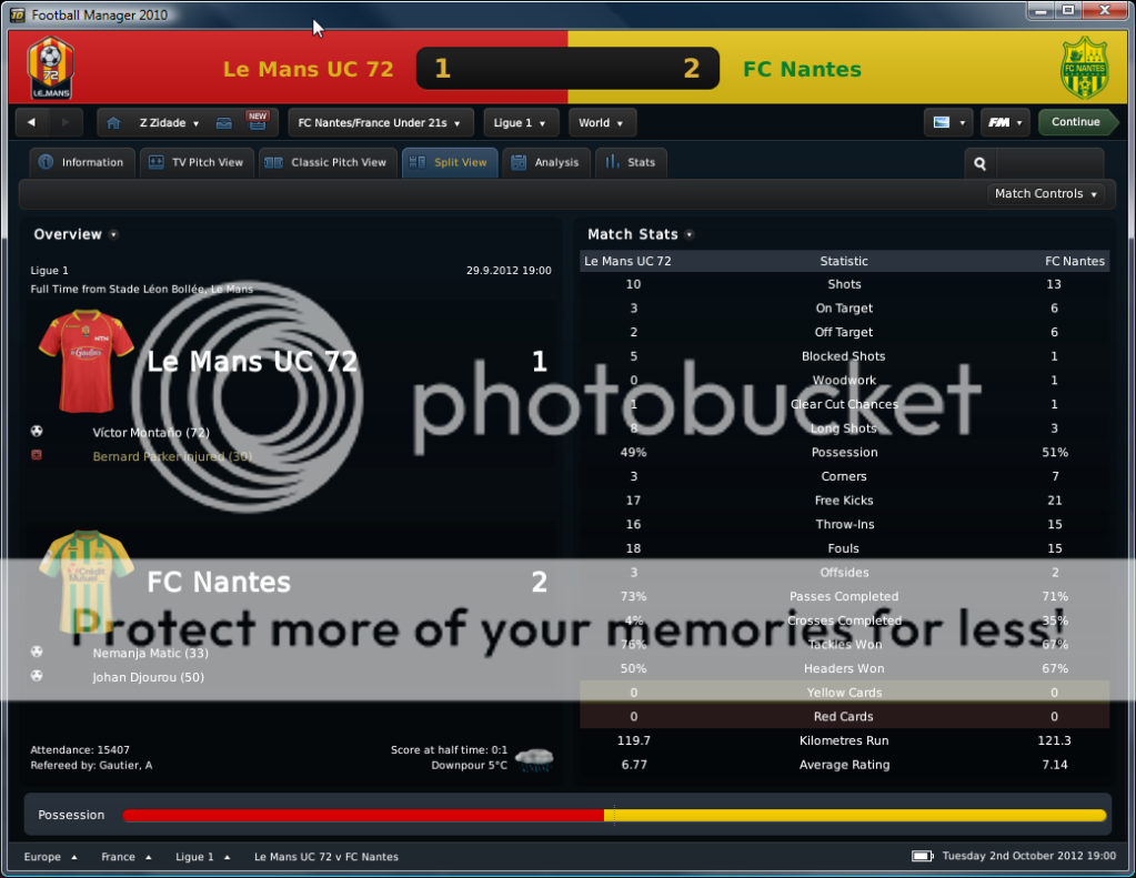 Seo Beraldo Postado 27 de Junho 2010 Denunciar Postado 27 de Junho 2010 Ta bem de mais mestre. Me confirma uma coisa o Alfred N’Diaye jogou de MC recuperador de bolas naquele jogo contra o PSG? As posições nos sorteios das competições europeias são decididas por aquele ranking europeu de clubes que leva em conta os resultados dos clubes nos ultimos 5 anos, como o nantes estava na segunda divisão e não participava de competições europeias deve ter menos de 10 mil pontos nos 3 primeiros anos do ranking o que ja o coloca la em baixo. Deve estar com uns 60 mil pontos no ranking, os cabeças de chave devem ter uns 120 mil pontos pra mais. Le Tallec como sempre esta dando passes e fazendo os gols. :thumbsup: Yeap, N'Diaye recuperador de bolas! Ta sendo um monstro assim em meu meio de campo! Eu to ligado no sorteio! rsrs, atualmente temos incriveis 14,50 pontos rssr! Mas brigando para elevar nosso status! Le Tallec eh o cara! Se der, vou tentar carregar ele por onde eu for! rsrs! Caramba, esse NJA tá fuderoso! Bela vitória contra o Manchester. Viva o JNA, grande esquema de jogo, e estou gostando de ver! MU ficou para tras! E agora partimos para cima do Zenit e Roma! Time está com tudo! Le Tallec e Matic jogando demais! Grandes vitórias sobre o MU e o Lyon! BS na continuidade! Le Tallec e Matic agora fazem parte dos ícones do Nantes. Enquanto Johan Djourou e Joaquin Boghossian aparecem como pessoal favorito! De um em um, o time vai ganhando... :D Também não saquei essa do sorteio. Deve ser aquela história dos coeficientes dos clubes na UEFA. Pelo menos seu time mostrou que não é como a UEFA classificou e foi muito bem contra o Man Utd! O sorteio eh como o Dellinghousen explicou! sim, os coeficientes resr! fomos bem contra o MU e queremos mais! Grupo difícil, mas como já ganhou do United passa a ser mais fácilzinho, três das seis partidas tem que ganhar pelo menos. BS! sim, temos que ganhar do Zenit, em ambas partidas, e jogar bem contra a Roma em casa! grupinho encardido na UCL... mas jah provou q pode passar com a vitória pra cima do united pra cima deles nantes Encardido, mas apos a vitoria em cima dos Red Devils, nos acreditamos! Grupo é chato, venceu o Manchester e isso te ajuda, mas o resto ainda é complicado. :thumbsup: O Nantes ainda vai ter que ralar um pouco para conseguir deixar o pote 4 na hora do sorteio. Mas isso tenho certeza que conseguirá. Começou bem a temporada e essa vitória contra o United foi muito importante. Creio que consiga a classificação, desde que vença mais duas partidas e consiga roubar um ou dois pontos em outra partida. eh este pote 3 esta bem distante! Temos apenas 14,50 pontos! argh! Mas a vitoria contra o MU mostra que este coeficiente nao eh tudo! VAMOS PRA FRENTE NANTES!!!------------------------------------------------------------------------------------------ Nantes, 1 de Novembro de 2012 Nossa segunda partida na Champions League foi contra o Zenit, e demos um grande passo rumo a uma possível classificação, garantindo uma boa vitoria fora de casa. Como de costume, o gol no inicio da partida nos deu grande tranqüilidade para jogar trocando passes, e esperando o adversário errar para matar a partida. Este gol inicial foi de Matic, que driblou seu caminho pela área, e chutou forte para nosso delírio. Controlamos a partida, como eu esperava, e apenas no segundo tempos que aplicamos o golpe final. Ginac aos 76’ minutos de cabeça meteu a bola entre as pernas do goleiro adversário, mas o juiz interpretou como gol contra. Tudo bem, o que vale é o gol! Fechamos o placar com Boruc lançando Boghossian, que teve apenas de vencer a marcação e chutar forte para matar o goleiro adversário! Ótima vitoria, nossa segunda nesta fase de grupos. http://i326.photobucket.com/albums/k413/newerabert/4%20Temporada/AA-2.png '> Enfrentamos o Bordeaux fora de casa, e com grande desempenho defensivo, conseguimos manter os adversários longe de nossa área, e Boruc saiu ileso, e não tocou a bola em chutes adversários. Sim, minha defesa simplesmente bloqueou todos chutes adversários! Em contrapartida, nosso ataque estava sonolento, e não conseguimos grandes jogadas ofensivas, ficamos restritos a chutes de longa distancia, pois tentei pegar o adversário desprevenido. Não deu, mas continuamos invictos. http://i326.photobucket.com/albums/k413/newerabert/4%20Temporada/BB-3.png '> Jogando em casa contra os italianos da Roma, estava decidido a surpreender jogando com a linha defensiva muito recuada, mas jogando fechado, e com passes diretos, procurando sempre a força de Gignac na área para segurar a bola, enquanto o restante da equipe ia pro ataque. E funcionou bem, jogamos recuados, mas com nossos jogadores apertando, pressionando, recuperando a bola e lançando para Gignac. Aos 10 minutos Cabaye de fora da área marcou um belo gol, e fez a Roma sair da defesa, partir para o ataque tentando o empate. Isso nos deixou mais espaço, e aos 41 minutos, Gignac finalizou da entrada da área para aumentar nossa vantagem. O segundo tempo foi apenas administrar a vantagem, recuamos um pouco sim, mas apenas a linha defensiva, a mentalidade era atacar, até os 70 minutos, quando passamos a jogar na defensiva. E justo na defensiva que fechamos o placar com um gol de Gassama aos 92 minutos, aproveitando uma falha da defesa italiana e aparecendo dentro d área para finalizar. Grande vitoria! Liderança isolada do grupo após três rodadas. Ta cheirando a classificação. http://i326.photobucket.com/albums/k413/newerabert/4%20Temporada/CC-2.png '> Cheios de moral, enfrentamos o Havre AC em casa. O primeiro gol, aos seis minutos, saiu dos pés de Ganso, que recebeu de Gassama dentro da área, livrou-se de um marcador e ficou cara a cara com o goleiro adversário para finalizar a gol com estilo. Nosso segundo gol partiu de uma bola roubada em nossa intermediaria, e novamente Gassama foi o homem da assistência. Após correr pelo flanco esquerdo, cruzou 