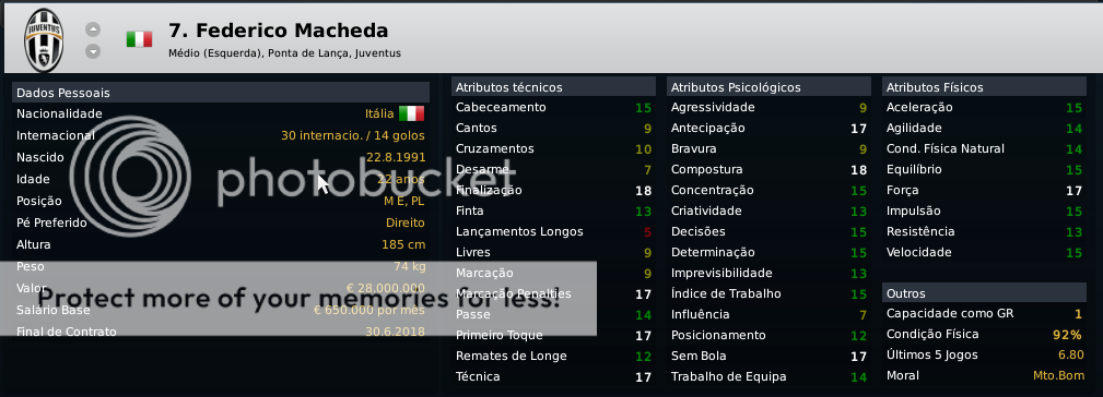 Seo Beraldo Postado 15 de Agosto 2010 Denunciar Postado 15 de Agosto 2010 ------------------------------------------------------------------------------------------ Turim, 30 de Julho de 2014 Mais uma vez, na hora de decidir pelo patrocinador, optei em usar o Random.com. E fiquei contente com a opção desta temporada. De um total de 22 patrocinadores que tenho em minha listinha, deu que a UNICEF estaria estampada na camisa da Juve! A camisa um mantém o tradicional alvinegro, a segunda camisa homenageia as cores da bandeira italiana, com o branco predominante e detalhes em verde e vermelho. E por fim, uma terceira camisa laranja, com uma marca d’agua do cavalo no escudo da Juventus. Claro, foi adicionado no centro da camisa o “scudetto” por sermos os atuais detentores do titulo da Serie A. Novos uniformes para temporada de 2014-2015 A pré-temporada para 2014-2015 vai começar com um amistoso contra o Flamengo em Turim. E depois enfrentaremos Ahlen, Academica, AC Milan, Standard. Uma pausa para o jogo valendo a Super Copa Italiana, contra a Palermo. Interessante que nos conseguimos a tríplice coroa, então a Palermo que perdeu para nos na final da Copa Itália, aparece aqui. Por fim, um ultimo jogo contra o Alaves da Espanha para então iniciar nossa campanha rumo ao 30 “Scudetto” para a Juve, e direito de estampar a terceira estrela em sua “maglia”! Expectativas Com o sucesso da temporada passada, a diretoria da Juve estava bastante otimista, e já de cara me ofereceu um contrato novo, aumentando meu salário para €450 mil! Teria disponível inicialmente €65 milhões de euros para gastar, mas declarei que seriamos campeões novamente! Isso me rendeu outros €10 milhões, ou seja, um total de €75 milhões de euros, mais 100% do que eu conseguisse levantar com venda de jogadores. Na Champions League, a expectativa da diretoria era que alcançássemos a quarta de final. Com o timaço que tenho em mãos, e motivado pela campanha da temporada passada, acredito que temos grande potencial para chegarmos a final, e assim torço, para ganhar meu primeiro titulo da Champions League. A Super Taça Européia, a ser disputada contra o Valencia, que venceu a Champions na temporada passada, é uma boa forma de mostrar nossa força e a que viemos. A diretoria espera que eu vença esta disputa. De volta a Itália, a diretoria não tem grandes expectativas para as disputas da Taça Itália e Super Taça Italiana. De qualquer forma, são dois títulos que dão moral a equipe e aos torcedores! Força Juve! A mídia italiana prefere apostar na Inter Milão como favorita ao titulo, mesmo após nossa grande temporada passada. Nos somos candidatos ao segundo lugar, e atrás de nos respectivamente seguem Genova, Udinese, Napoli e Milan. Sim o Milan esta na pior, não vence um titulo desde o inicio do save! Transferências: Disse no fim da temporada passada, que iria mexer pouco no elenco. MAS EU NÃO CONSIGO! Com €75 milhões e um clube de alta reputação, a minha vontade e trazer todas estrelas possíveis! Vamos começar falando das vendas de jogadores da Juventus, foram vários, e houve um grande retorno financeiro, para então despejar em contratações! Para começar alguns veteranos se foram, destaque para a volta de Patrice Evra para o futebol francês defendendo o Bordeaux. A França também foi destino de Mirel Radoi e Vincenzo Rennella. Primeira grande venda foi de Gerson, em co-propriedade com o Cagliari, que bateu minha oferta de €3 milhões com uma ótima oferta de €14,25 milhões de euros. Robert Huth que vinha namorando com o Man Utd, acabou aceitando proposta do Spurs. Já Pedro Leon, desmotivado com a condição de rodízio, acabou permanecendo na Itália, e defendera a Genova. O colombiano James Rodriguez se destacou na Juve, mas acredito ter melhores opções, e uma oferta de €6 milhões do Wolves foi o suficiente para eu negociar-lo. O torcedor que antes ficou muito animado com a chegada de Simone Pepe, não apareceu no aeroporto para a despedida do mesmo, que voltou para a Alemanha para defender o Hamburgo por um valor de €7,5. O Man Utd levou o jovem argentino Pablo Checchi por empréstimo, apesar de ter sido de graça, é possível que Checchi desenvolva seu jogo por la, pois o Man Utd trocou de treinador recentemente e deve deixar de jogar com apenas 1 atacante de área. A grande e “inesperada” venda foi de Luis Suarez. Antes da Copa do Mundo, Man Utd e Sevilha fizeram ofertas de €11 e €12.5 milhões respectivamente, sendo que o uruguaio vale €15. Recusei as ofertas, e durante a Copa, Suarez jogou bem, e colocou seu nome na boca dos managers e agentes. Após duras semanas negociando, o Arsenal foi o único que chegou perto dos €20 milhões que eu queria por ele. Ao total, negociamos para fora de Turim um total de €72 milhões de euros, gerando um grande caixa, e mantendo as finanças numa boa, uma vez que foram gastos €96 milhões reforçando o elenco. Transferências de Julho Em Janeiro, havia entrado em acordo com dois jogadores que teriam seus contratos expirados agora em Junho. Estes jogadores rapidamente aceitaram minhas propostas e chegam para integrar o plantel. Paolo de Ceglie já é um nome conhecido em Turim, e após passar por Chelsea e Real Madrid, volta a Juve aos 27 anos para ser reserva de Criscito. Também para a lateral, mas para assumir a titularidade do jovem Margelli e de Chretien que não adicionou muito a equipe, Marco Motta. Motta é determinado e bom na marcação, e vai se encaixar muito bem na função defensiva que meu lateral direito tem. Laterais da Azurra chegam para brilhar em Turim Como abandonei a postura de jogar com um ponta no final da temporada passada, estou apostando em jogadores que consigam segurar a bola no meio de campo, e armar jogadas, mas também é importante saber defender, e desarmar adversários. Com isso em mente, arrastei para Turim o brasileiro Sandro, do Internacional de PoA, e o italia