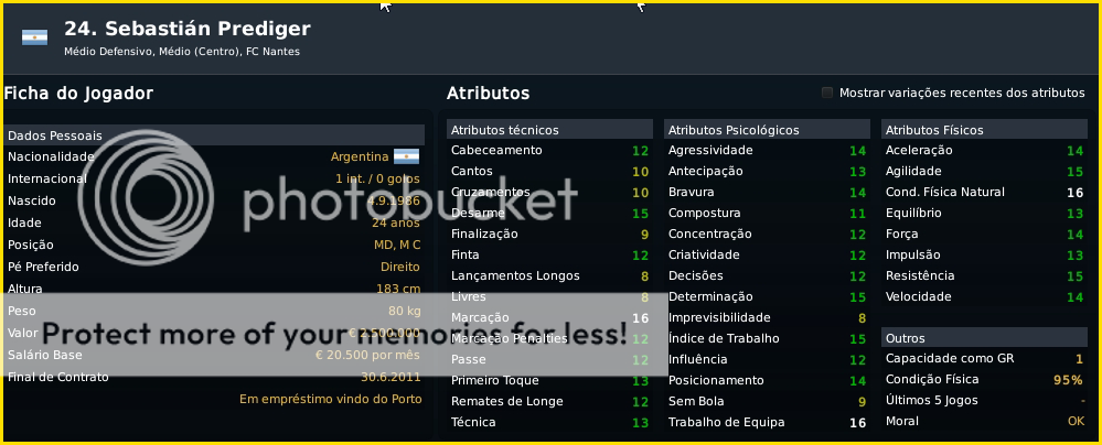 Seo Beraldo Postado 23 de Maio 2010 Denunciar Postado 23 de Maio 2010 Nantes, 31 de Agosto de 2010 A votação chegou ao fim, e o modelo escolhido pela maioria para ser a terceira opção de fardamento do FC Nantes na temporada de 2010-2001, foi a preta. Vale apontar também que não houve mudanças em patrocinadores, os quais tem direito sobre o Nantes até 2012. Recebemos a miséria de € 890k anuais da SYNERGIE, e espero que o próximo, ou próximos patrocinadores sejam mais lucrativos! Modelo C Preto escolhido pela maioria Obrigado pela participação! A mídia prevê que nos terminemos a temporada em 9º lugar, a expectativa mínima da diretoria é justamente terminar a temporada em uma posição do meio pra cima, ou seja, de 10º para cima estou no lucro. Inicialmente eu acreditava em uma 8ª a 7ª colocação, agora já estou pensando que poderemos terminar a temporada entre os seis melhores da liga, devido a qualidade de jogadores que trouxe ao Nantes. O Lyon é o favorito ao titulo, seguido respectivamente por Bordeaux, o atual campeão Monaco, Rennes e fechando com o Nancy Lorraine. O Olympique de Marseille estranhamente não aparece na lista de favoritos, dei uma espiada no clube, e atribui isso ao fato de que a única contratação de que fizeram nesta temporada foi a de Pascal Feindouno, que apesar de matador, não é nenhuma grande estrela. Nossa reestréia na Ligue 1 foi contra o Grenoble, e apesar de nos sermos o favorito para a partida jogando em casa, ficamos com apenas 1 ponto, e com um fraco desempenho da equipe ofensiva. Na temporada passada, houve problemas defensivos, agora o ataque parece que não consegue infiltrar com a mesma capacidade. Na seqüência viajamos para Caen para enfrentar nossos adversários da Ligue 2. E como ainda não consegui equilibrar o Jeu à La Nantaiese aos contratados, fizemos uma fraca partida ofensiva, mas bastante equilibrada lá atrás com os novos zagueiros mostrando que fiz a coisa certa ao trazerem. O único gol da partida saiu dos pés de Pedro Ribiero, em uma jogada que ficou dentro da área com 6 adversários e mesmo assim conseguiu finalizar ao gol. No primeiro clássico que enfrentaria ao voltar para a Ligue 1, contra o Olímpico de Marselha, os visitantes mostraram sua força e em 33 minutos de jogo o placar estava em 2x0 para eles. Dei um pause, e mudei geral o time, que estava a jogar um 442 com alas avançados, e passei a jogar com apenas um ala, o direito, Bamba de trinco, Matic de construtor defensivo, Ganso e Milinkovic de MAC, Le Tallec e Pedro Ribeiro dentro da área. Finalizando com Lukovic como ala esquerdo avançado, e Miguel Lopes um lateral direito fixo na zaga. Portanto tinha os dois zagueiros, lateral direito e trinco defendendo, lateral esquerdo, ala direita, dois MAC e um atacante dando atacando. E Matic e Le Tallec dando apoio. O empate saiu nos acréscimos do segundo tempo, quando Le Tallec cruzou da direita e Pedro Ribeiro de cabeça marcou. No intervalo, saiu Darbion e entrou Makiavala, que detonou o adversário. Tão logo o segundo tempo começou, e uma triangulação entre Ganso, Makiavala e Le Tallec saiu o gol do empate (gol que vemos no resumo do mês). Novas mudanças, sai Pedro Ribeiro, entra Joaquin Boghossian, pois eu iria apelar para o jogo aéreo. O gol da virada veio de bola parada e com o uruguaio marcando, mas devido ao erro adversário, que não tirou a bola da grande área, deixando Boghossian marcar. Com 3x2, os adversários partiram para cima, e abriram espaços para a gente explorar o contra ataques, e gastar tempo com a bola. Com a bola pacientemente passando de pé em pé, chegamos ao quarto gol já nos acríssimos, em uma boa jogada individual de Le Tallec ao livrar-se da marcação, entrar na área e chutar a gol. Que grande vitoria! Video com os gols, se possível alguém me diga como up em melhor qualidade? Fechamos o mês com mais uma vitoria, a qual nos levaria a liderança da competição com uma partida a mais. Um ótimo começo! Posso dizer que efetivamente foi o primeiro jogo após o Gilson me convencer a manter o “Jeu à la Nantaiese”. E aos poucos estou conseguindo refazer o estilo que vinha mantendo na segunda divisão, sem haver tantos erros defensivos, mas jogando com velocidade. Ao observar o jogo, vemos que não jogamos um bolão, mas os dois gols que fizemos foram em contra ataques, o que mostra que ao pegarmos a bola, e partimos para o ataque, estes são mortais. Darbion abriu o placar com uma OTIMA bola do Ganso. O brasileiro novamente fez a assistência para Boghossian, que entrou no segundo tempo, marcar o seu já nos acríssimos do segundo tempo. Bom, fechamos o mês de forma positiva, e voltarei a utilizar a imagem “Resumo do Mês”. A tabela vai sempre estar no lado direito superior, abaixo da barra do titulo, e caso o Nantes não esteja entre os 5 primeiros, a tabela terá a posição do Nantes, com um clube abaixo, e dois superiores, de forma que assim sempre haverá a indicação de quem lidera a competição. O esqueminha de altos e baixos é sempre referente as ultimas 5 partidas jogadas. Ou seja, se algum jogador jogar apenas uma vez no mês e tirar 5, e outro jogar mais vezes e tirar uma media de 5,3 este vai ser o jogador em Baixa. A janela de transferências fechou, mas antes disso foi confirmada a saída de William Vainqueur, o qual recebi uma proposta irrecusável do Bordeaux, por £6 milhões, mas acabou que o volante optou em ser titular no Le Mans pelo mesmo valor, a ser um mero jogador do elenco no Bordeaux. Como já estava de olho em um trinco pegador, falhei na contratação do M. Diarra, e este acabou não sendo registrado para a liga espanhola, vai ficar no mínimo 6 meses sem jogar pelo Real. Diarra era minha primeira opção por falar francês e ser experiente. Perfil dos Jogadores Na falta de um volante para a equipe, escutei meu adjunto, e trouxe por empréstimo o argentino Sebastian Prediger do Porto. Não consegui fixar o passe