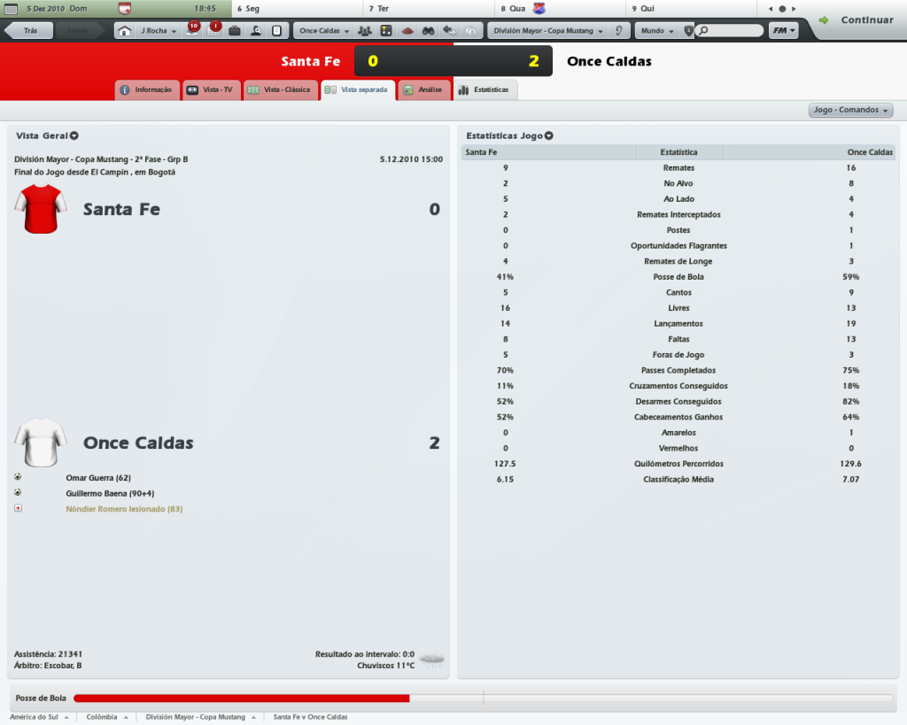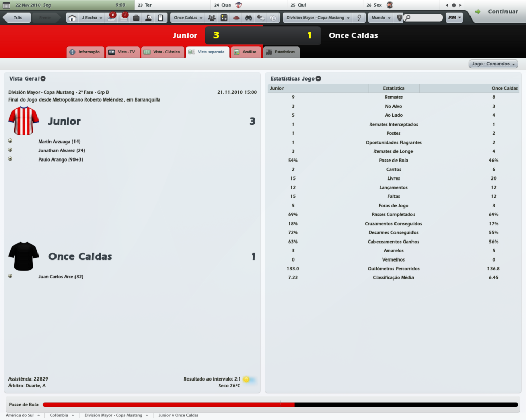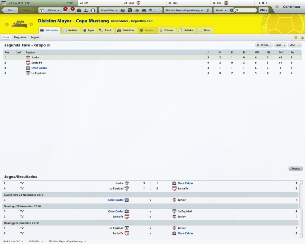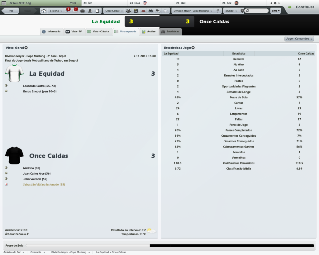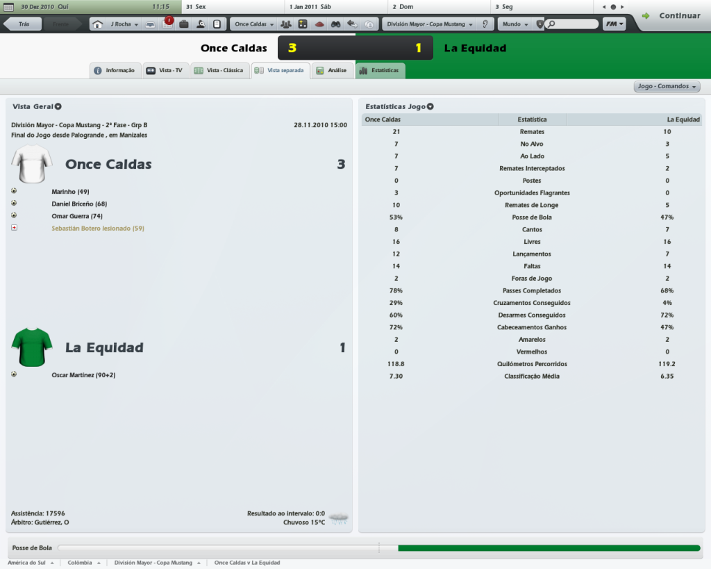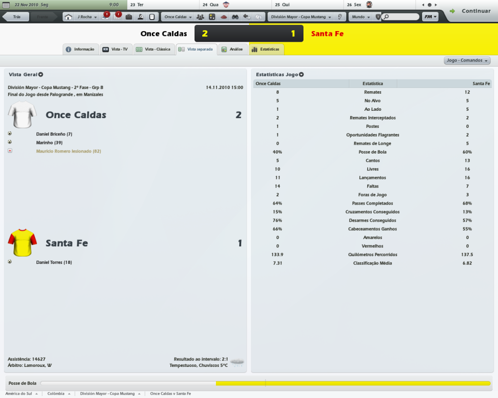 Jirimias Postado 1 de Junho 2010 Autor Denunciar Postado 1 de Junho 2010 É preciso ficar de pé. Estreamos na segunda fase da Copa Mustang contra o La Equidad.Jogamos uma partida perfeita até os 15 minutos do segundo tempo, onde goleávamos os donos da casa, mas a partir daí, o time acomodou e deixou o La Equidad reagir de forma incrível até empatar nos acréscimos. COntra o Santa Fé voltamos a abrir o marcador, sofremos o empate em seguida, mas não nos abatemos, tomando a frente do placar novamente.Depois disso nem Once Caldas, nem Santa Fé acrescentaram nada ao jogo. Apagão geral contra o Junior.Sofremos três gols e marcamos apenas um, resultado que momentaneamente nos tirava qualquer possibilidade de chegar à final da competição.Era preciso vencer o Junior no segundo confronto. Enfim uma arbitragem justa para punir a violência que castigou nossa equipe durante toda a competição.Com dois expulsos do lado dos adversário ficou fácil jogar e os gols saíram naturalmente até finalizar em uma bela goleada. Novamente marcávamos três gols no La Equida, mas desta vez se chance de reação para eles.Com a vitóriatornamos líderes e dependeno apenas de nós para chegarmos à final. O Santa Fé era o adversário direto e contava com o fato de jogar em casa para tomar a frente da competição.A qualidade dos campeões da Copa Colombiana era ressaltada pelos jornais esportivos, mas mostramos que apesar de todos os fracassos desta temporada, estávamos de pé.Com um incontestável 2x0 garantimos a vitória que nos levaria à grande final do campeonato nacional.O outro finalista não perdeu em seu grupo, e já foi escolhido por alguns aqui na Colômbia como o favorito. Favoritos ou não, o Medellin como adversário era garantia de jogo duro, os últimos confrontos entre as duas equipes apontam isso. Citar