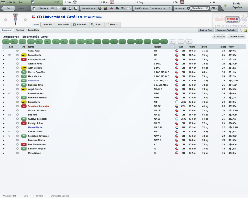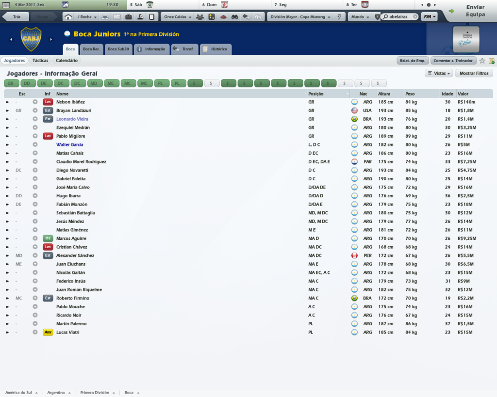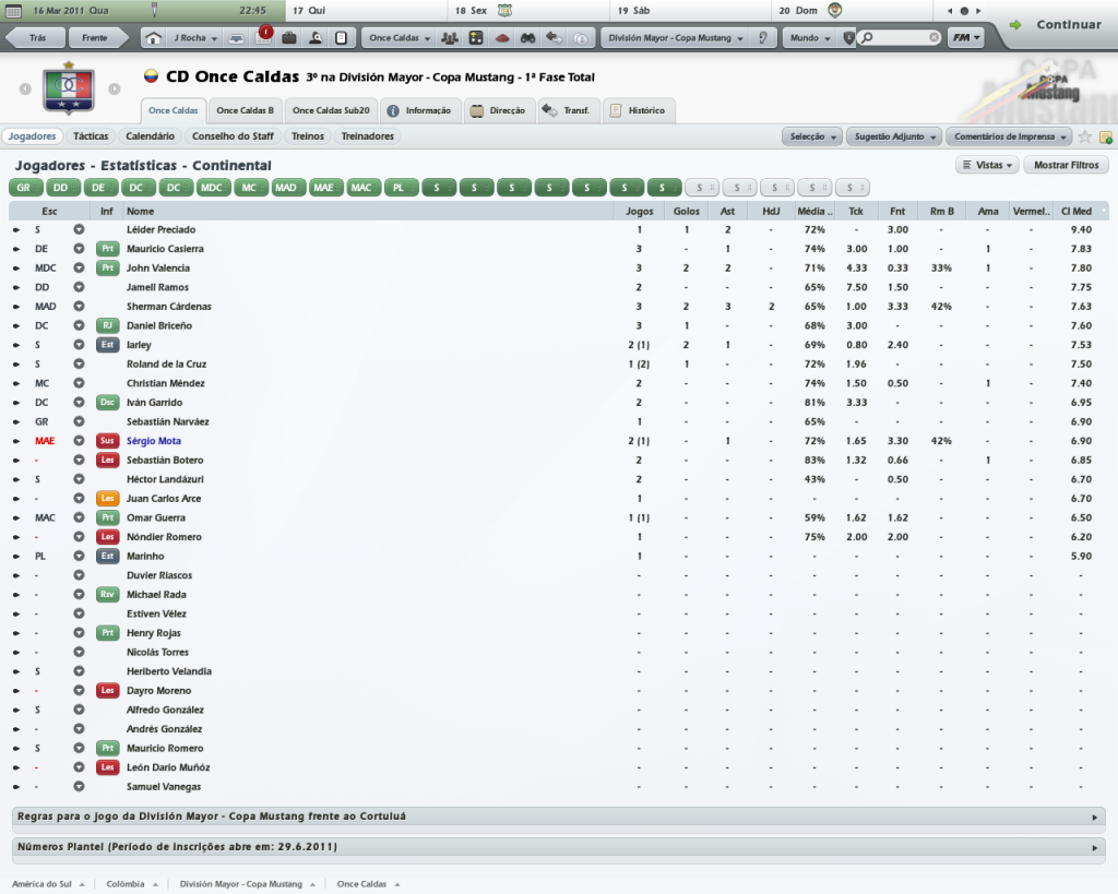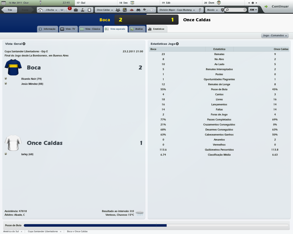 Jirimias Postado 3 de Junho 2010 Autor Denunciar Postado 3 de Junho 2010 Sempre contra o Boca ein! A PUC é fraca, mas o Necaxa pode atrapalhar. Sempre,sempre Boca.Nãoe stou certo sobre estes adversários, vamos ter que nos esforçarmos muito. Caceteeee. Sorteio do FM te sacaneou d+++ Mas vamos lá neh, se queremos ser campeões não temos que temer nenhum adversário. O Fator casa vai ser importantissímo. Gostei da contratação do Cardenas, acho ele um puta jogador(no fm) Boa sorte Abraço Demais mesmo,FabinhoO bom é que esta fase de grupo mostrará até onde pode ir a equipe, e como vc falou não dá apra escolher adversário. Cardenas joga fácil.Abs.Vlws! Nossa, sacanagem esse sorteio para o Internacional colombiano :bleh:. Vai ter que usar, e muito, o fator casa. Apesar do Necaxa ter caido como ultimo no sorteio, é um bom time, até melhor que o Universidad que caiu em segundo, mas vamos lá, acredito no Jean \o/ Muita sacanagem mesmo.Teremos que fazer a diferença em casa, serão adversários difíceis fora de casa.Jogar com o Boca é triste. :no: Vle pela confiança! Grupo dificil, mas como o plantel está forte, creio que passa! Tomara, tomara, acho que este plantel não está fechado, começo a perder jogadores. :mellow: Citar