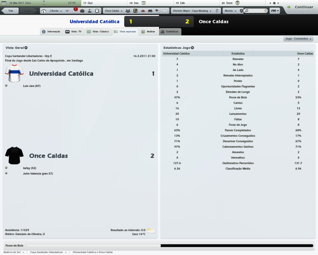 Jirimias Postado 4 de Junho 2010 Autor Denunciar Postado 4 de Junho 2010 Olá, meu nome é Marcelo Matuche, sou cronista esportivo e serei colunista do site do Once Caldas enquanto o clube estiver na Libertadores da América.Espero sinceramente que este trabalho seja pé quente, e meu trabalho se estenda até a final da competição e cubra a glória deste clube na competição mais importante do continente. Quando 36 anos não pesam. Iarley foi apontado por alguns colegas de profissão como só mais um membro do asilo do Once Caldas, mas é lógico que quem falou isso não deve conhecer bem o brasileiro.Contratado pelo Once Caldas há poucos meses, o atacante já é a grande figura do Once Caldas neste início de temporada.Seja nos gols de oportunismo puro, seja na mágica dos passes capaz de transformar o improvável em perfeição. Na estréia contra o Boca Jr., Iarley parecia tranquilo em sua antiga casa, o La Bambonera, tão tranquilo que foi capaz de perceber a desatenção do goleiro Medran ao sair com a bola, era o gol do Once Caldas abrindo o placar na Argentina.A equipe argentina, melhor no jogo, acabou por virar o jogo. Veio o Necaxa, gente estranha, time esquisito, e show de Iarley,Cardenas e Preciado.Dos sete gols, Iarley não marcou nenhum gol, mas participou de uma jogada memorável com direito a tabelinha e calcanhar antes do gol de Cardenas. Na terceira rodada, o Once Caldas viajou até Santiago e venceu o Universidad Católica por 2x1, o primeiro gol foi dele: Iarley, que recebeu um magnífico lançamento de Cardenas.Esta dupla promete. Foi assim com Iarley e Cardenas se entendendo muito bem, que o Once Caldas garantiu a segunda colocação no Grupo E, e o Grupo da Morte, está longe de ser aquele bicho todo que se anunciava.Agora o Once Caldas jogará duas partidas em casa, o que pode definir a classificação da equipe. Até a próxima!! Citar