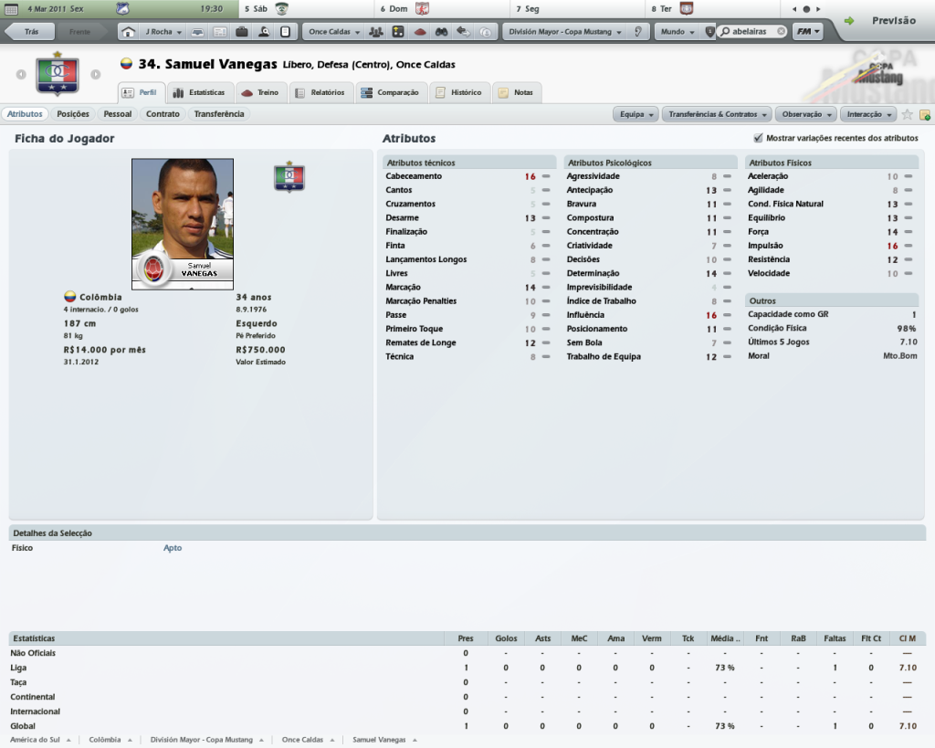 gq-tricolor Postado 4 de Junho 2010 Denunciar Postado 4 de Junho 2010 Muito legal o save. Eu sou um fã incondicional do futebol sul-americano, não adianta. Fico sedento por jogar uma Libertadores quando leios saves assim. Haha. Força, Jiri. Pegar o primeiro lugar do Boca agora. Jogos em casa farão a diferença na retinha final. Citar