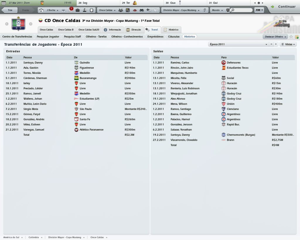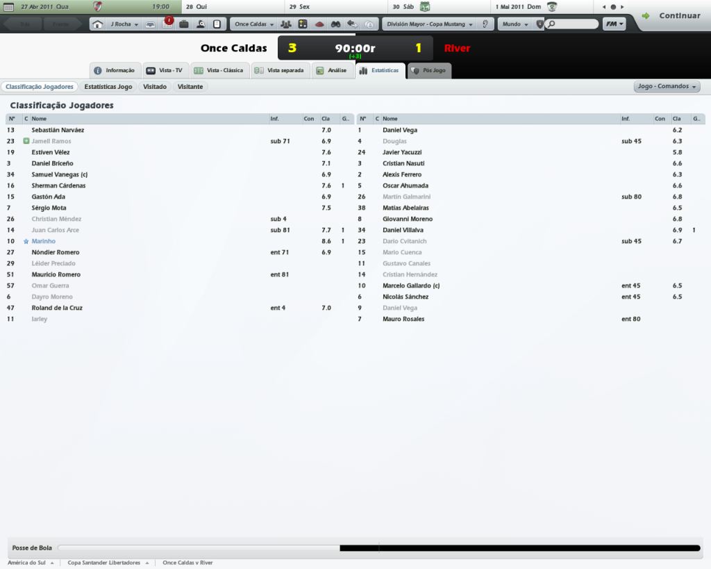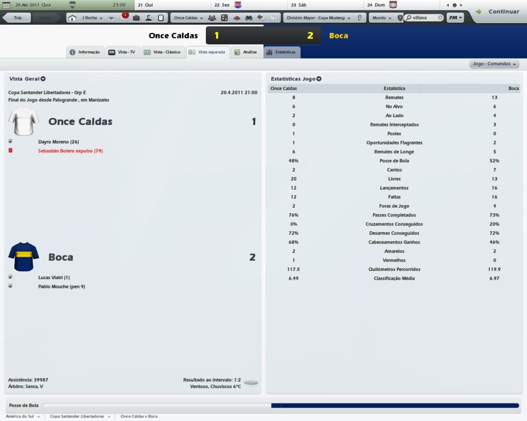 Jirimias Postado 4 de Junho 2010 Autor Denunciar Postado 4 de Junho 2010 Muito bom Once Caldas. Isso ai, não deu mole pro Boca, apesar da derrota, e ganhou os outros 2 jogos. Ainda acho que se tu ganhar do Boca em casa, tu briga pra pegar o primeiro colocado. Boa Sorte Abraços Vou tetnar ganhar deles lá dentro e tomar este primeiro lugar, vai ser difícil, mas seria itneressante dificultar o confronto para eles. ihhh tá fácil esse "grupo da morte", hein. Será que o tráfico não ajudou o Once Caldas a comprar os árbitros? muito estranho isso :heh: Uma correção: Tu colocou Universidade de Chile, mas esse é outro time chileno (rivais, por sinal). Obrigado, já corrigi. hsuahsuahs o tráfico não me ajuda a contratar o Perea, muito menos vai me ajudar a comprar árbitro :heh: 7x0 no Necaxa, BS Foi bonito, mas não dá para acostumar. :lol: Muito legal o save. Eu sou um fã incondicional do futebol sul-americano, não adianta. Fico sedento por jogar uma Libertadores quando leios saves assim. Haha. Força, Jiri. Pegar o primeiro lugar do Boca agora. Jogos em casa farão a diferença na retinha final. Vlw,gq!Eu tô ficando fã tb rsrs, gostando muito de jgoar na América do Sul. Vamos lá roubar o lugar do Boca. Citar
