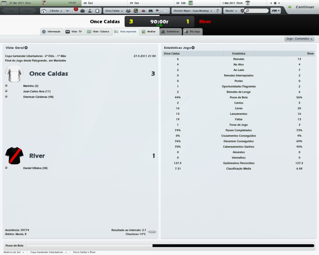 Jirimias Postado 4 de Junho 2010 Autor Denunciar Postado 4 de Junho 2010 Olá, meu nome é Marcelo Matuche, sou cronista esportivo e serei colunista do site do Once Caldas enquanto o clube estiver na Libertadores da América.Espero sinceramente que este trabalho seja pé quente, e meu trabalho se estenda até a final da competição e cubra a glória deste clube na competição mais importante do continente. A vantagem está de que lado? O primeiro confronto contra o River argentino transformou uma tediosa noite de Manizales em uma fantástica noite de futebol.Trinta e nove mil pessoas foram ver o Once Caldas perder ou empatar, mas vencer ninguém esperava ver, por 3x1 então, nem pensar.Tá certo que o River não é um Boca, mas o River é sempre River.Foram melhores, mas não competentes, e futebol é isso: ganha quem faz mais gols e não quem lamenta as chances perdids.. Mas o jogo contra o River começou a ser ganho naquela prancheta que o Jean carrega, ali ele simplemente jogou fora a tática que o time vinha jogando todas as partidas desde que chegou ao Once Caldas, e instaurou o 4-1-3-2.Cardenas jogava recuado, depois da pressão feita pelos comentários do treinador do River, Jean mudou o posicionamento do jovem.Nó em Astrada.Laterais viraram defesas, e Gastón Ada aparece do nada entre os titulares.Eh, por essa nem este cronista esperava.Jean surpreendeu a todos, menos seus jogadores que pareciam completamente entrosados no esquema.Destaque para Marinho, que deixará o clube em Julho, e abriu o marcador e fez um belo jogo.Cadê Iarley?Ficou no banco, estratégia de Jean, que lançou a dupla Arce e Marinho que jogaram juntos durante toda a tempora passada. O Once Caldas venceu por 3x1, placar que dá uma vantagem, mas não sei porquê eu fiquei com a impressão de aquele gol do River parece ter invertido de lado a vantagem.Já classificado para a próxima fase da Copa Mustang, o Once Caldas deverá poupar jogadores contra o Atlético Nacional para chegar com força total para o confronto de volta contra os argentinos. Ah, John Valência está voltando e Botero também, isso sim é vantagem para o Once Caldas.Para os amigos que estão preocupados com o Boca, eles empataram com o Estudiantes, qualquer um que vier dali será pedreira. Até a próxima! Citar