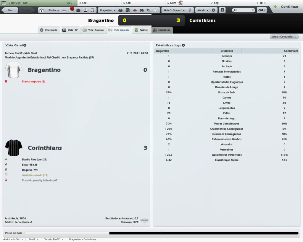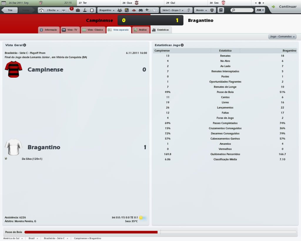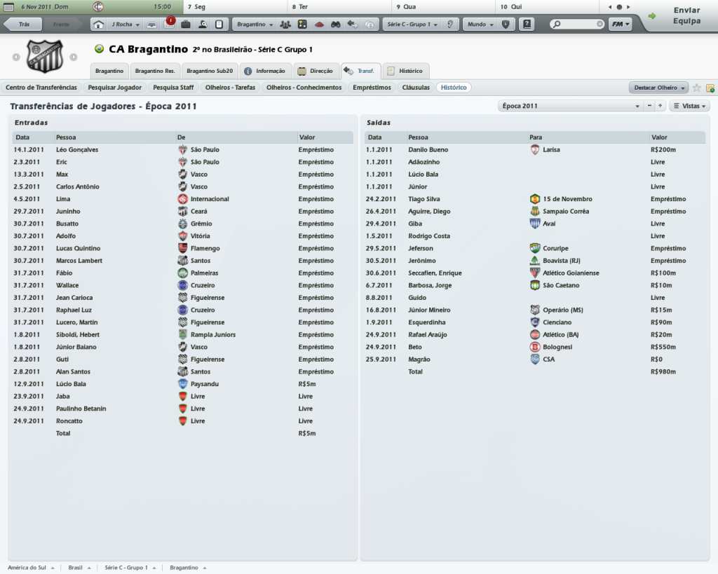 Jirimias Postado 7 de Junho 2010 Autor Denunciar Postado 7 de Junho 2010 Luxa folgado.. o tempo vai mostrar pra ele quem é que manda.. chegar as fases finais com o elenco que tinha já é alguma coisa.. agora com a casa arrumada dá pra arrancar uma boa classificação na série B (meio da tabela já é relevante) do outro ano Ah deixa o Luxa comigo hehe. Pois é, achoq ue ter chegado para disputar ainda a Série C foi uma surpresa, o time era bem ruim, tive que montar um time mais competitivo em questão de dias até o fechamento do mercado, mas enfim cehgamos.Espero conseguir chegar à promoção, e paara o ano que vem ter umt iem bom para Série B ou Série C. Grande vitória sobre o Vasco ali! Mas caiu cedo na Taça Brasil... Na Série C foi muito bem. Força na sequência! Foi bom, o time ficou focado na SÉrie C, eu tb já tava casnado de um monte de jogos rsrs Ta indo bem na Série C e agora tem premiação pro seu objetivo Rumo aos R$500mil rsr bela campanha no rio-sp agora eu quero série b! Eu tb quero !! São Raimundo maldito, podia ter ido melhor na Taça Brasil mesmo. Já na Rio-SP a tabela te ajudou e tu conseguiu chegar as semis, pena que encontrou o Corinthians e aí cagou tudo, mas enfim, é focar na Série C, onde está muito bem e pode subir. BS! Nós merecíamos perder para Corinhians e São raimundo, por outro lado o time tb fez por merecer a classificação aos playoffs, apesar que tenha sido pura sorte.Vamo subir! Boa, agora vai receber uma grana pelos seus objetivos e acho que dá pra subir ein.; Vamos lá,Braz!O desafio dos R$500 mil começa na próxima temporada. Os empates foram ruins, mas vendo o nível das outras equipes o Jean tá perdoado. Agora é passar pelo Campinense. Não deve ser tão complicado assim. Ah valeu heheh. Acho que não vai ser complicado não. Citar