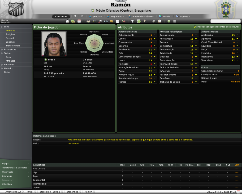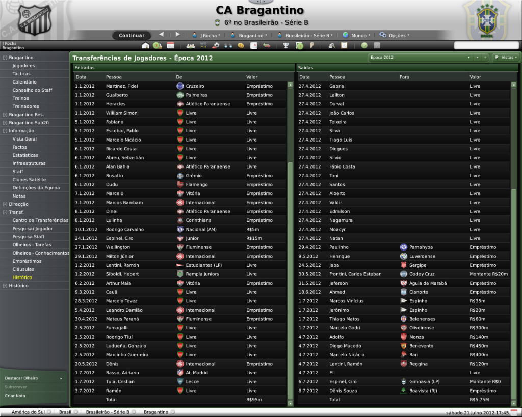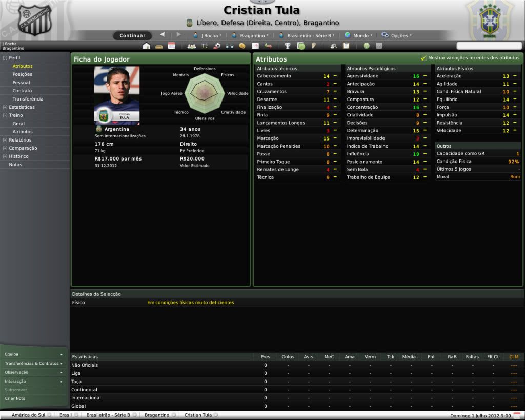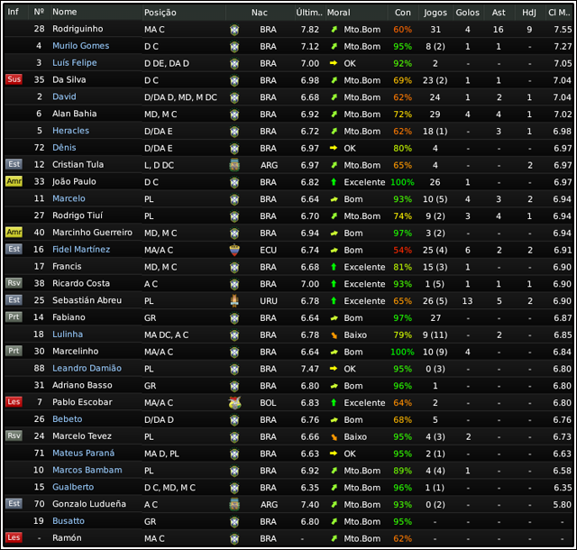 Jirimias Postado 17 de Junho 2010 Autor Denunciar Postado 17 de Junho 2010 Equilibrado como sempre... Essa é a reta mais importante. Se continuar vencendo e na ponta, mais pra frente será complicado algum time chegar no Braga. Este bom início será importante para refletir mais a frente, mas não me empolgo mais, aquela do Camp. Paulista me deixou cismado rsrs Devolver o Braga pra Série A seria fantástico, não perdeu para o Fla com um a menos, tá ótimo. Além disso não perdeu, e sempre com bons resultados contra quem está ali em cima, como Tupi e Figueirense fora. Vamo subir Braga e Figueira! :rolleyes: O time se superou contra o Flamengo, aquela expulsão atrapalhou bastante.A campanh tá boa mas as próximas rodadas podem definir para que viemos realmente. Bom palpite! :specool: Ta indo benzão no Bragantino, o time da terra da linguiça promete ein! Deve ter sido estranho jogar contra o time do coração mas o Jean passou por esse teste. A linguiça mecânica rsrs. Tirou de letra o desafio de enfrentar o time do coração,perder seria terrível. Ae Jan, começou bem garoto. O sistema ofensivo tá muito bom, melhorou bastante. Agora é diminuir os gols sofridos, média maior que 1,00 por jogo é foda. A defesa está sendo mais exigida pois estou priorizando o ataque, até achar o equilíbrio vamos ter que sempre marcar mais gols.Mas o começo foi bom, e que continue! Mano Menezes? Fla na Série B? euaheuahuaehuaehuaehuaehuhaeuhaehaeuhaeuheauhae Começou bem, bela série que teve. Tem que manter o padrão pra abrir vantagem. Mano Menezes é treinador de Série B mesmo huhaushaus tem experiência nisso. Temos que continuar jogando bem, pois o time sempre cai de rendimento depois de algumas rodadas. Se disparar agora, não terá problemas no fim! Bom o jogo contra o Mengão! Jiri, tem como ver se o Marcos Paraná está bom aí ? Abraço! Tem uma SS do M.Paraná ali atrás, se não me engano, mas em termos de rendimento eu gostei dos últimos jogos dele, o pior é que sou teimoso e teimo em colocar jogadores que nãoe stão emrpestados ao clube, para evitar desgastes com estes. rsrs Olha só, ta muito bem. O time ta correndo super bem na competição, fazendo muitos gols e goleando os times mais fracos. Empate super importante contra o Flamengo que prova que o Bragantino não é mais qualquer time de segunda divisão. Marcelo ta super bem, tem a melhor média da série B e é bem completo nas assistências e gols, parabéns. Agora é focar e manter o fôlego, boa sorte e abração! Falou tudo,henrique.O Bragantino é umt ime qu pede respeito aos seus adversários e tem no Marcelo uma ameça real, atua muito bem ali no ataque e não se limita em só marcar gols.Que ele ajude o Braga a seguir assim! formou um elenco grande de alto nível a vitória pra cima do fla prova isso e ta muito bem na série b, so tem q manter Manter, esta é a palavra certa.Foi bom jogar de igual contra o Fla, estamos no caminho certo. Pessoal, hje não deu para postar, tive que participar de um simpósio que me tomou parte da noite.Até a manhã com novidades. Citar