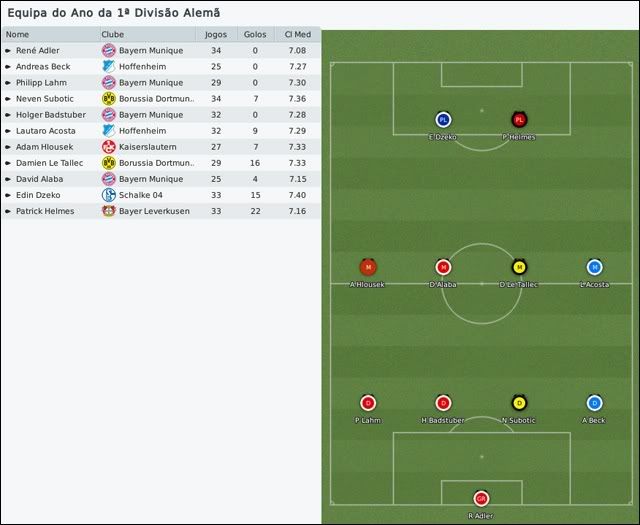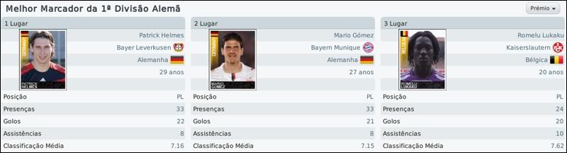 GG. Postado 22 de Agosto 2010 Autor Denunciar Postado 22 de Agosto 2010 Temporada 2012/13 A Bundesliga tem um novo campeão Neste save eu tenho feito atualizações com período de tempo mais largos, mas não resisti e resolvi colocar as partidas mais recentes e informar sobre as novidades do Kaiserslautern. Por isso mesmo, esta atualização terá apenas partidas. Março e Abril | Bundesliga, DFB-Pokal e Liga dos Campeões Com a temporada em sua reta final enfrentamos o Schalke 04. Campeão da Liga dos Campeões, os Azuis Reais necessitavam da vitória contra o Kaiserslautern para continuar com chances de conquistar o título alemão que o Schalke não conquista desde a temporada 1947/48, ainda na época pré-Bundesliga. Para isso, o S04 contratou Dzeko por 12 milhões de euros em janeiro. O fato é que se depender do Kaiserslautern, o Schalke 04 ficará pelo menos mais uma temporada sem o título. Em Gelsenkirchen, fizemos um 1º tempo muito bom e marcamos duas vezes com Maiga e Olic. No 2º tempo, seguramos a partida e mesmo com um Dzeko, conquistamos o três pontos com a vitória por 2 a 1. Com a vitória para o Schalke 04, aumentamos a vantagem para 16 pontos para os segundos colocados: o próprio Schalke 04, o Bayern de Munique e o Wolfsburg. A 2ª partida do mês, outra importante partida, foi contra o Bayern de Munique. Sem perder para o Bayern há três partidas, o desafio era derrotá-lo e alcançar a final da DFB-Pokal, que mesmo sem ter sido uma prioridade na temporada, agora se tornava algo alcançável e até desejável diante do desempenho do FCK. A partida foi em nosso estádio e desde o início procuramos o gol. Mesmo com mais de 60% de posse bola no 1º tempo, não conseguíamos arrematar. O Bayern também não. No 2º tempo, os bávaros foram para o jogo e foi aí que conseguimos marcar, primeiro com Lukaku, aos 56 e depois, Hlousek decidiu a partida, aos 79. Com a vitória de 2 a 0 sobre o Bayern, o FCK disputará a final da DFB-Pokal pela primeira vez desde a temporada 2002/03, quando ficou com o vice-campeonato. Na outra semifinal, o Wolfsburg bateu o Nuremberg fora de casa por 3 a 2 na prorrogação e será o nosso adversário. A sequência de bons resultados nos campeonato domésticos continuou contra o Leverkusen. Em nosso estádio fizemos um 1º tempo excelente e marcamos duas vezes com Juan Barros. No 2º tempo, perdemos a concentração, o Bayer Leverkusen cresceu, marcou um gol, mas garantimos a vitória por 2 a 1. Eu sabia que o Kaiserslautern não teria facilidades contra o Real Madrid no Santiago Bernabéu. Minha equipe é muito boa, mas está em um nível abaixo das grandes equipes europeias e além disso deu azar no sorteio. Se conseguisse segurar o Real Madrid, poderia tentar em um contra-ataque marcar um gol. Não foi isso que aconteceu. Sofremos um gol aos 34, mas no início do 2º tempo empatamos com Olic, gol que nos classificaria, mas logo depois, Burdisso fez um pênalti e Kaká fez 2 a 1. Em desvantagem fomos ao ataque em busca do gol que nos classificaria. Não conseguimos e nos acréscimos, Pepe fez, de fora da área, mais um para o Real. Com os 3 a 1 fomos desclassificados, mas sem o que lamentar. Faltando oito rodadas e com vantagem de 16 pontos era preciso paciência e não cometer grandes erros para se alcançar o 5º título nacional do Kaiserslautern, o 3º da Bundesliga. Outro passo importante demos na goleada de 4 a 0 sobre o Nuremberg com dois gols de Maicon. O título se aproximava a cada rodada e na 28ª uma goleada por 5 a 2 no Hamburgo. O título poderia vir diante do Bochum, último colocado da Bundesliga. Talvez por isso, a equipe esteve nervosa e teve um pouco de dificuldades para conseguir derrotar o Bochum. No final, depois de sairmos atrás, viramos a partida e vencemos o Bochum por 2 a 1, fora de casa, e conquistamos o título antecipadamente. Com o título antecipado, estou mais preocupado em manter o moral e a condição física de meus jogadores e também garantir para alguns, o número mínimo de partidas para concorrerem aos prêmios da Bundesliga e esse número não é baixo. Para um jogador concorrer é preciso ter disputado 70% da partidas, ou seja 24 das 34 partidas do campeonato. A final da DFB-Pokal ainda não foi agendada, mas ela é o alvo do restante da temporada. Seria muito bom fechar a temporada com mais essa conquista, mas se ela não vier, o principal objetivo da temporada já foi atingido. Citar
