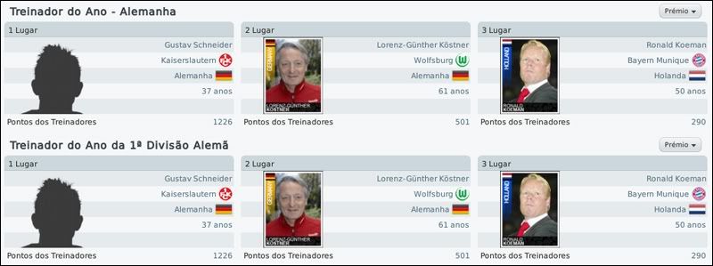 GG. Postado 26 de Agosto 2010 Autor Denunciar Postado 26 de Agosto 2010 Poxa vida, não veio o título da Pokal. Mas também não é algo traumatizante, na próxima temporada já estará brigando por ambos os títulos (Bundes e Pokal) além de estar (espero) incomodando na Liga dos Campeões. Chegou a hora de conhecerem o Kaiser! BS gg. Tem preferência a alguma seleção? você explicou bem meu sentimento. Na temporada que vem tem mais, mesmo a DFB-Pokal não sendo prioridade. Tenho sim. no post inicial do save eu falei sobre isso, mas como faz muito tempo, aqui está; A preferência é pela seleção alemã, mas não descarto outras, principalmente aquelas com ligações com Alemanha, como por exemplo, a Áustria e Suíça, países onde o idioma alemão é predominante. Outros dois países que também poderei dirigir são a Polônia e a Turquia. O primeiro tem uma grande colônia de alemães em seu território e o segundo guarda uma relação histórica com a Alemanha e possui o maior contingente de estrangeiros vivendo em território alemão. Fora essas cinco seleções, a Rep. Tcheca, a Rússia e a Ucrânia também me interessam. Li as três últimas páginas e fiquei aqui torcendo: Na UCL não teve sorte com os sorteios, depois de superar aquele grupo da morte , veio um encontro indigesto contra o Real.Era difícil sair vencedor, mas o time saiu erguido, e alcançou a expectativa de passar da Fase de Grupos, que já era um desafio. Campeão nacional sem contestação, 16 pontos não é para qualquer um, e quem quiser ser campeão nacional agora já sabe que terão que passar primeiro pelo Kaiser. Na DFB Pokal fiquei surpreso, pois confiava no título, mas quando a coisa fica para ser definida nas penalidades não tem lógica e nem merecimento. O clube tá evoluindo e promete mais. :thumbsup: Acho que fomos bem na UCL, mas a falta de sorte atrapalhou um pouco, mas tudo bem. O título na Bundeliga, esse sim foi muito bom. Fiquei feliz e agora quero o bi. Quando vi o retrospecto, fiquei preocupado. O Wolfsburg será a asa negra do save. Citar