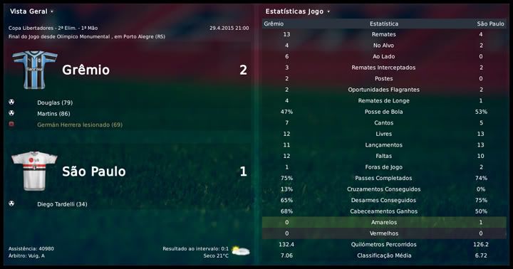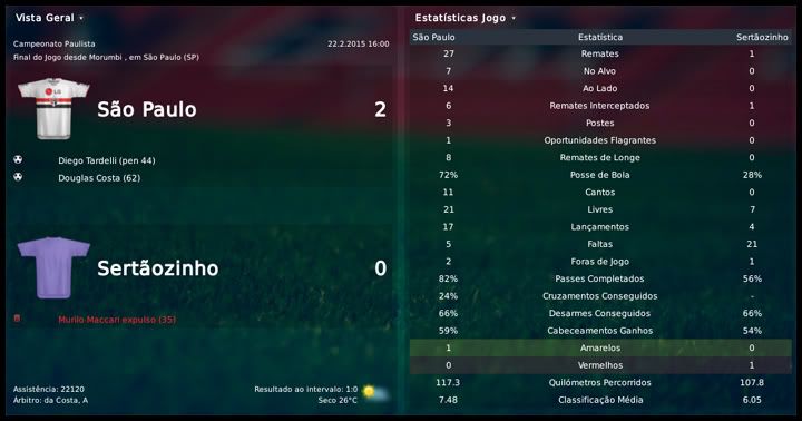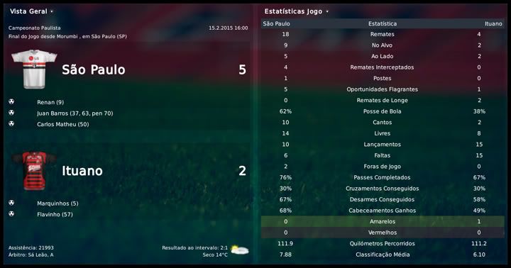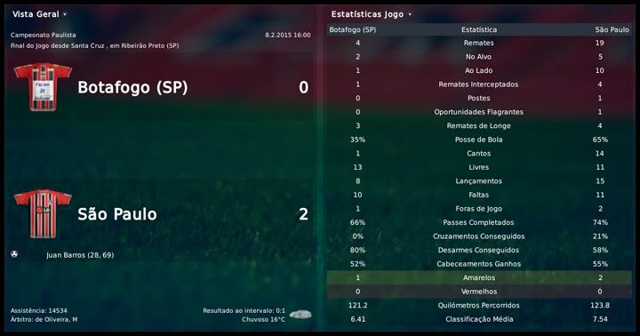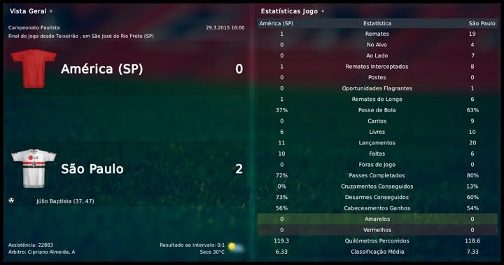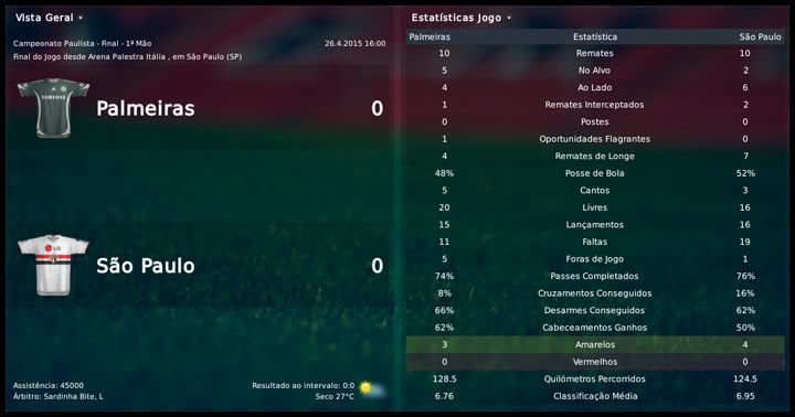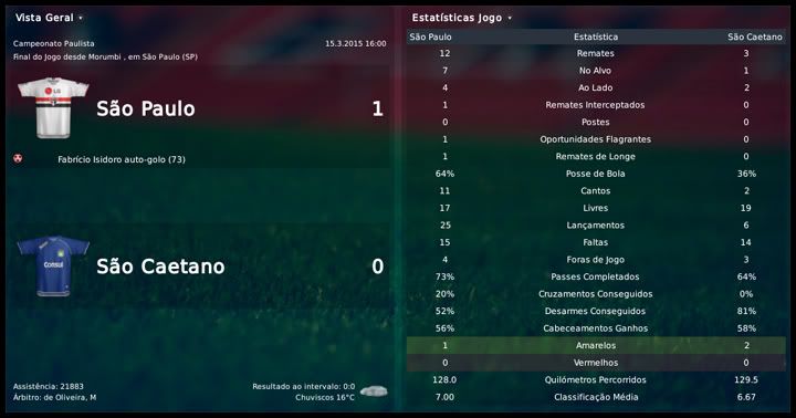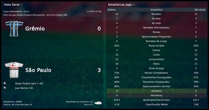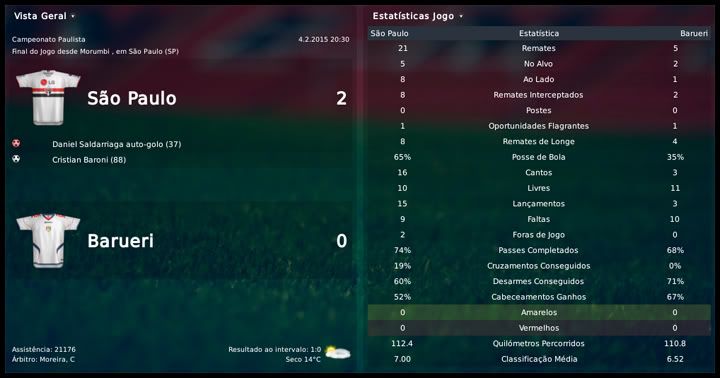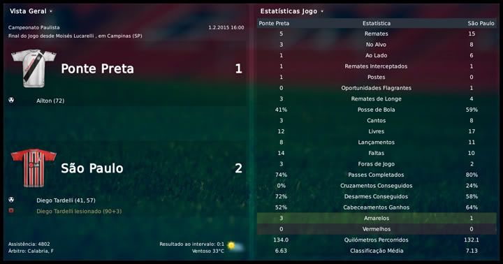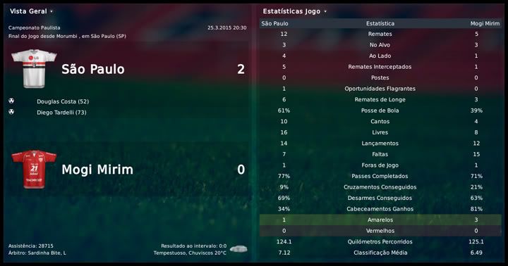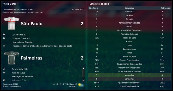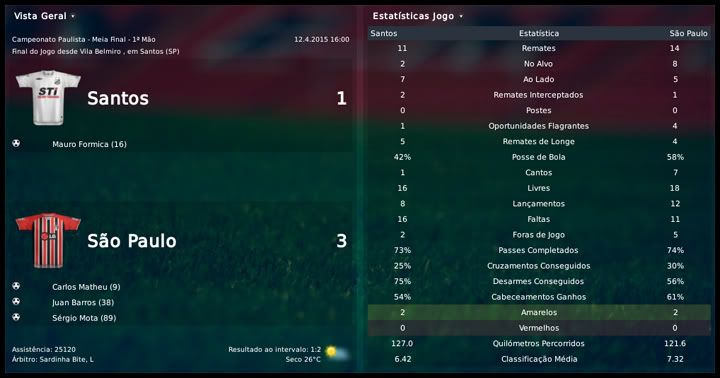 Bruno Trink Postado 20 de Setembro 2010 Autor Denunciar Postado 20 de Setembro 2010 Estava com dificuldades para atualizar a história, mas não para jogar. Então, acabei indo direto até o final da fase de grupos do Paulistão. Com uma dupla de ataque como Barros e Tardelli, não dava para esperar menos do que um caminhão de gols. Achei que, talvez, os dois fossem demorar alguns jogos para se entrosar, mas parece que nasceram um para o outro. Os dois se completaram perfeitamente e, excetuando algumas partidas em que poupei titulares, um ou outro marcou em praticamente todos os jogos em que a dupla atuou. A média de um gol por jogo para cada um deles é assombrosa. Assim, o que vimos foi uma equipe voltada para o ataque e que marcou 69 gols nos 23 jogos oficiais, entre Paulista e Libertadores. A defesa já não é mais aquela mesma fortaleza, dá para relevar que amoleçam quando o ataque resolve na frente. Paulista Paulista | São José | Santo André | Palmeiras | Ponte Preta Barueri | Botafogo | Rio Branco | Ituano | Sertãozinho Noroeste | Guaratinguetá | Guarani | São Caetano | Corinthians Mogi Mirim | Portuguesa | América | Santos Ainda sem o Tardelli, Barros resolveu decidir sozinho na estreia e marcou cinco vezes. Daí em diante, a dupla desandou a marcar e o time passou a enfileirar os adversários. Vencemos dezoito deles, vários por goleada, e só paramos no Corinthians, um empate, quando já estávamos praticamente classificados e com o primeiro lugar garantido. Pelo segundo ano consecutivo, os quatro grandes passaram para a fase final. Dessa vez, reeditaremos a final do ano passado já na fase semifinal, já que o Santos caiu para a 4ª posição na última rodada, ao perder para nós. Libertadores Aurora | Juan Aurich | Grêmio | Grêmio Caímos em um grupo onde, teoricamente, o Grêmio seria o nosso principal adversário. Nem isso aconteceu. Ganhamos bem de bolivianos e peruanos e derrotamos os gaúchos duas vezes, tanto no Morumbi quanto no Olímpico. Com isso, conseguimos a classificação antecipada para a próxima fase e poderei poupar muita gente, pelo menos na semifinal do Paulista. Além, claro, da dupla de ataque, as demais duplas do time estão muito bem. Acertamos mesmo a zaga com o Matheu e o Mário Fernandes, os dois laterais continuam muito consistentes, assim como a dupla de proteção Renan - Rodrigo Souto. O elenco também ficou muito equilibrado. Tanto é que nem as lesões do Anderson Silva e do Diogo me preocupam tanto, já que o Bismarck e o Robertinho, respectivamente, entram no time sem que se sinta falta dos titulares. Citar