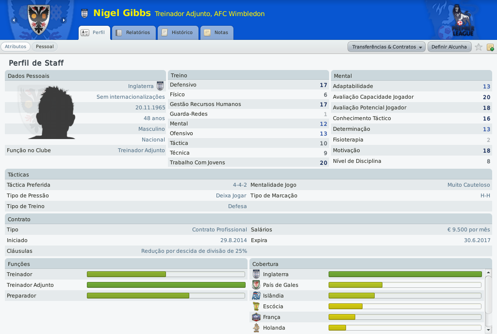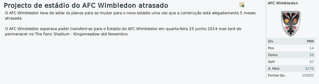 Jirimias Postado 12 de Outubro 2010 Denunciar Postado 12 de Outubro 2010 Dream Team? A temporada 2014/2015 começa agora.Desta vez o Wimbledon vem forte, vem para consolidar sua participação na Premier League e também conseguir uma vaga européia.Para formar uma equipe forte, projetei com a diretoria a vaga européia como objetivo principal, em contrapartida, qualqur coisa diferente disso poderá acarretar pressões internas, inclusive dos jogadores, como aconteceu na temporada passada quando não conseguimos ficar na metade superior da tabela. Como acontece todos os anos, a diretoria oferece alto um valor para aquisição de jogadores, mas valores baixos de salários, o que me obrigou mais uma vez a ajustar as verbas.No fim os núemros ficaram em €41M para compras e €2M para salários. Apesar do mau rendimento geral da equipe na temporada anterior, preservei a base, apostando no entrosamento e até mesmo em uma temporada melhor destes jogadores.Porém um outro time foi montado com os reforços, e este time tem qualidade, nome e experiência. Alguns reforços: Samuel Eto'o | Quaye | Lukaku | Frank Lampard | Chris Cohen. Aproveitei esta temporada para satisfazer alguns desejos que não pude concretizar na temporada passada.São eles: Chris Cohen, jogador brilhante na época do save com o Nottm Forest, e Lukalu tão badalado neste FM e que pude comprovar seu poder no save do Gilson. Temos hoje uma defesa bem mais experiente com a chegada de Coloccini e Boulahrouz, um meio-campo forte com Nenad Milijas e Lampard e um ataque poderoso com Eto'o,Yakubu,Lukalu,Pavlyuchenko e o sempre matador Nouble.As expectativas são enormes, e as cobranças serão proporcionais. Quanto às saídas, não foi a falta de qualidade técnica a motivação de todas as vendas.Alguns jogadores como: Olasz,Garics e Sonko estavam insatisfeitos e não acreditavam mais no meu trabalho.No caso de Olasz, todo o tumulto que ele causou foi o suficiente para negociá-los, apesar que via nele um grande jogador para o futuro.Esta temporada marcou a saída de Mozika, capião do Wimbledon e o jogador que mais vestiu a camisa do clube.Mozika era fraco para a Premier. Na pré-temporada realizei o rodízio de jogadores e não fiz nenhum ajuste tático durante a partida, queria ver o que alguns jogadores poderiam fazer sozinhos, sem nenhuma indicação do treinador.Fiquei satisfeito com a pré-temporada, mesmo com alguns resultados controversos.A parte negativa da pré-temporada ficou para as lesões: Lukalu (3 semanas ), Luke Wilkshire e Eto'o (duas semanas). Kleberson e Drogba (retirada anunciada para Julho de 2015) seguem entre os reservas, o último recebe um alto salário, mas não aceita redução e nem cargo na comissão técnica.Jovanovic era outro que anunciou a aposentadoria ,mas aceitou participar do staff do Wimbledon. A diretoria do Wimbledon também anunciou atraso na entrega do novo estádio, pro isso vamos ter que jogar quase todo primeiro semestre no pequeno Fan's Stadium.Pelo menos a obra de melhoria nas condições de treino e academia saiu do papel.