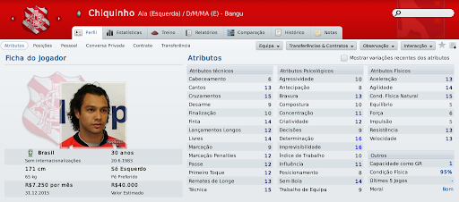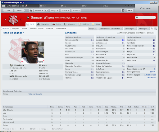silveira Postado 24 de Novembro 2010 Denunciar Postado 24 de Novembro 2010 Pessoal, baixei a demo do FM 2011 e não consigo jogar nem a série D nem com o Bangu. No jogo completo vem a série D? Como faço para jogar com o Bangu? Abraços Silveirão Também fiquei satisfeito com as contratações. Não sei e é um bug, mas notei que existem muitos jogadores de alto nível livres no jogo. Ou você os contrata, ou eles se aposentam com 29, 30, 31 anos... tem acontecido bastante aqui. Valeu, LC! Ora! Se é "como nos velhos tempos", eu levei bem a sério. O Bangu cansou de participar destas competições estilo "quadrangular internacional", então tratei de fazer uma. E fazia parte dos objetivos do save! Fazer e ganhar! Vamos ver no que dá! Valeu, Zimmer! Citar
