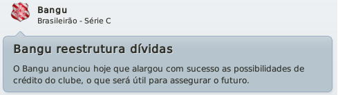 mfeitosa Postado 23 de Novembro 2010 Autor Denunciar Postado 23 de Novembro 2010 Excelente, Bangu começa a voltar ao seu devido lugar :D A Série B é o que o time precisava para dar uma renovada e tanto a diretoria quanto a torcida, passarem a dar mais importância ao clube. Será um dos anos mais difíceis do Bangu sob o comando de Marinho, se não o mais difícil. Com relação ao jogo, como já é de praxe, definiu a classificação fora de casa e só administrou no Moça Bonita! Lá no Alfredo Jaconi, foi melhor durante o jogo e embora o Juventude tivesse tido as melhores chances, se não fosse o gol no final, já saia com a mão no acesso. Dentro de casa, jogou com o regulamento, empatou em um jogo que dava pra vencer, mas o que importa é que estamos na Série B! Agora é sentar e planejar muito cuidadosamente o próximo ano que deve ser bastante duro! Sorte aí Marcelo :thumbsup: A gente postou praticamente na mesma hora, agora respondendo! :thumbsup: Como pode ver, renovei a equipe como pude e fiquei satisfeito com os nomes que vieram. Acredito que faremos mais que o esperado na temporada! Assim espero! Citar
