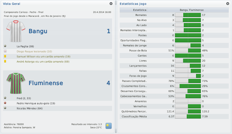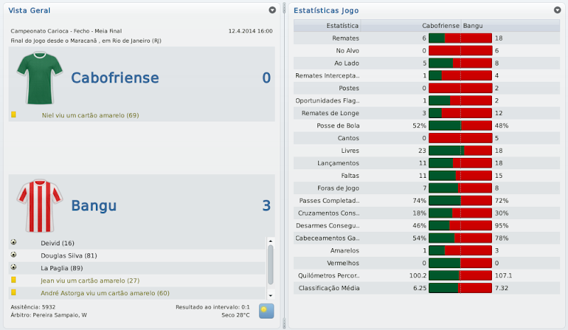 mfeitosa Postado 26 de Novembro 2010 Autor Denunciar Postado 26 de Novembro 2010 (editado) Estava escrito. O Bangu seria o Campeão Carioca em 2014, o ano em que o clube completara 110 anos de existência. O ano da Copa do Mundo no Brasil. Depois de passar facilmente pela Cabofriense na Semi-Final, o alvirrubro tomou um duro golpe ao ser goleado pelo Fluminense na Final da Taça Rio, 4 a 1. Nada deu certo naquele dia e todo aquele trabalho parecia ter sido jogador fora. Parecia. De forma heróica, o time de Marinho encontrou forças para enfrentar novamente o Fluminense nas duas partidas referentes à Final Geral do Campeonato Carioca. Duas partidas histórias, com o Maracanã completamente lotado. No primeiro jogo, o Fluminense jogou bem melhor, mas fora surpreendido aos 5 minutos do segundo tempo, quando Deivid alçou uma bola na área e Samuel Wilson finalizou de carrinho, 1 a 0. Na raça! A acanhada torcida do Bangu parecia não acreditar. Na partida de volta, os times se equilibraram bastante, diferente do jogo anterior onde o Fluminense, embora derrotado, dominou todos os setores de ponta a ponta. No último minuto do primeiro tempo, Fred arrancou do meio-campo e fez um golaço. Ninguém esperava por um lance como aquele. Os times foram para o intervalo e só deve Deus saber o que foi dito no vestiário, pois o alvirrubro voltou diferente, com um brilho de vencedor. Passou a jogar melhor, a preencher todos os espaços e anulou o time do Fluminense. Aos 27 minutos do segundo tempo, um lance para entrar para a história. Nélio cobra falta, a defesa adversária corta a bola, porém, nos pés de Neto que acerta uma bomba para fazer o gol do título! Gol! Gol do Bangu! Aquele empate que significava: BANGU CAMPEÃO CARIOCA DE 2014! Título que o clube de Moça Bonita não conquistava desde de 1966. Bangu histórico! Bangu heróico! Épico! Quanto aos destaques individuais, Samuel Wilson terminou como 3º Melhor Marcador do Carioca e Douglas Silva como 3º Melhor Jogador. Douglas Silva também levou o prêmio de Gol Mais Bonito e entrou para a Seleção do Ano junto com Magno Capetinha e César La Paglia. Como era de se esperar, o Treze não causou nenhum constrangimento à torcida bangüense pela Copa do Brasil. O time de Marinho, que entrou apenas com os reservas nas duas partidas, passou com facilidade pela equipe paraibana, porém sem muito brilho. Vitórias pelo placar mínimo em ambos os jogos. Já pelas Quartas-de-Final, um adversário complicadíssimo: o Guarani. O primeiro jogo, em Moça Bonita, poderia ter sido mais fácil se Samuel Wilson não tivesse desperdiçado a chance de matar a partida em cobrança de pênalti, e o placar permaneceu empatado, 1 a 1. Na partida de volta, no Brinco de Ouro, Samuel Wilson fez as pazes com a rede e foi decisivo para a classificação alvirrubra, 1 a 0. Sendo assim, o Bangu já estava entro os quatro melhores clubes da Copa do Brasil, feito histórico para o clube. O adversário das Semi-Finais seria ninguém menos que o poderoso Internacional, de Guiñazú e Leandro Damião, ambos em grande fase. Após a conquista do título do Campeonato Carioca de 2014, ninguém mais duvidava que o Bangu podesse alcançar mais um acesso. Marinho também já tinha passado a acreditar. Se 2013 foi um ano de crise financeira em Moça Bonita, os prêmios pelo título estadual e pelas passagens à cada fase da Copa do Brasil, geraram um balanço extraordinário ao clube. Com isto, Marinho convenceu Jorge Varela de que não deviam perder tempo e era preciso investir a curto prazo. Criaram um planejamento específico para a campanha no Brasileirão, envolvendo torcida, jogadores e comissão técnica, rumo à Série A. Alguns jogadores que estavam mais cansados e que já não ajudavam tanto o clube, seriam dispensados ou negociados e novos nomes, de peso, chegariam. Se toda aquela movimentação realmente geraria algum resultado, só o tempo iria nos mostrar. Editado 26 de Novembro 2010 por Marcelo Feitosa Citar