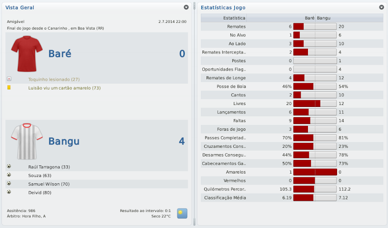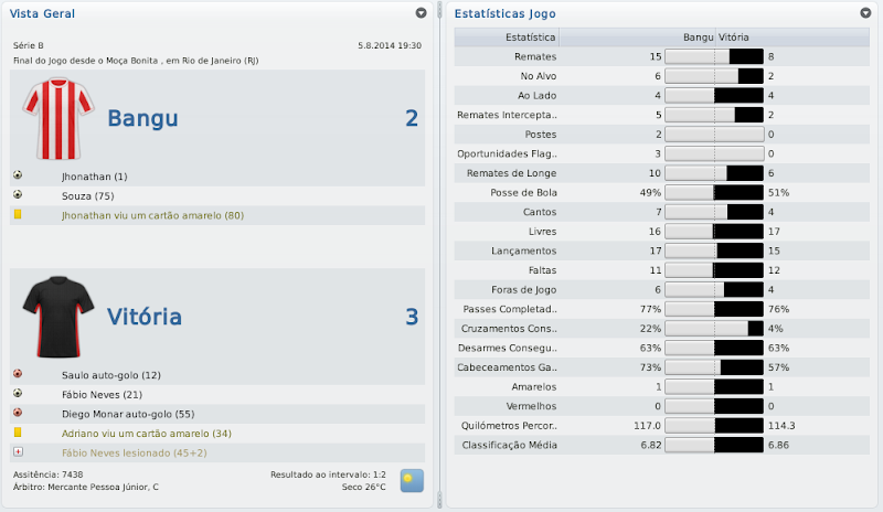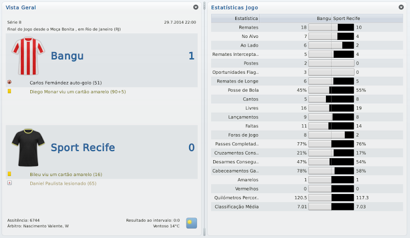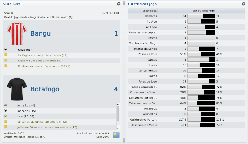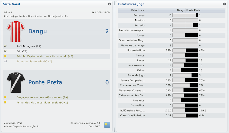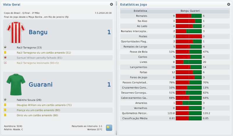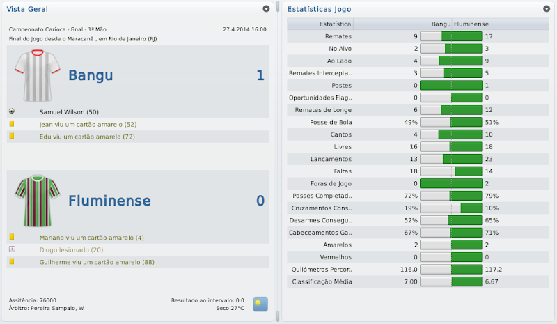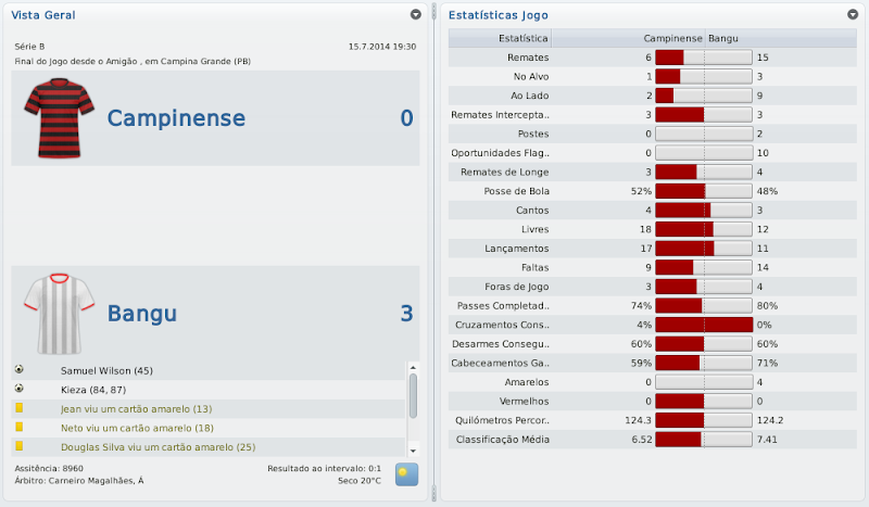 mfeitosa Postado 26 de Novembro 2010 Autor Denunciar Postado 26 de Novembro 2010 Parabéns, Macelo! Estava acompanhando desde o acesso à série C. Impressionante!! Impossível não torcer! Já estava nervoso, ansioso para ver o resultado do Carioca. Arrebentou! Ninguém segura o Bangu e Marinho! Agora é encarar a série B. Com esse time, dá pra subir. Com bons reforços, a promoção é certa! Boa sorte! Muito obrigado, Carlos! Fico feliz por sempre estar acompanhando! Obrigado mesmo! Acredito com alguns reforços ocasionais poderemos, sim, brigar pelo acesso! Isso em qualquer save! :thumbsup: :cheers: Simplesmente fantástico o trajecto com o Bangu! Parabéns pelo campeonato carioca. Na Copa do Brasil é tentar a surpresa frente ao Inter. :thumbsup: Obrigado! Contra o Inter eu já não me iludo muito, mas quem sabe? :weight_lift: Citar
