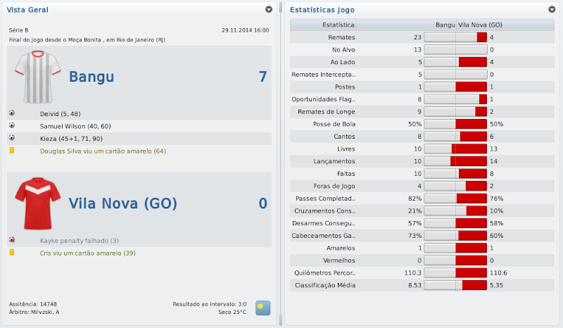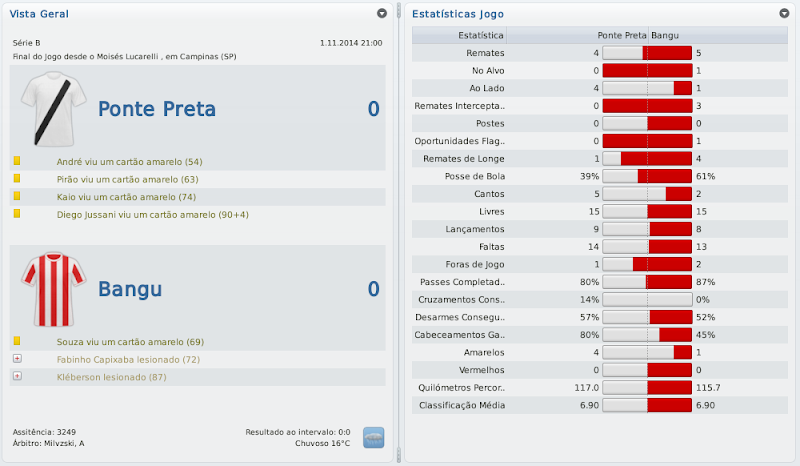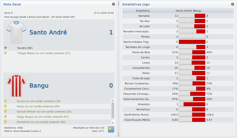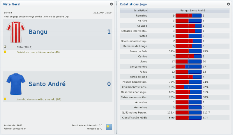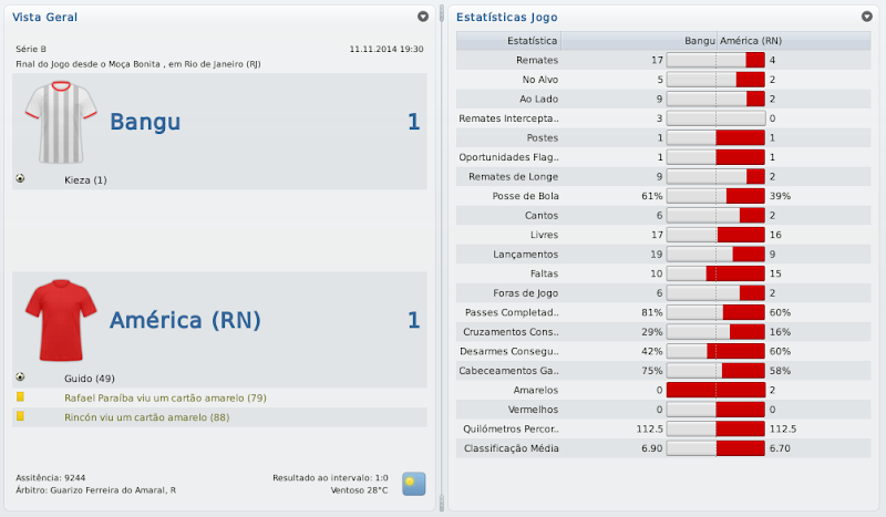mfeitosa Postado 28 de Novembro 2010 Autor Denunciar Postado 28 de Novembro 2010 bom trabalho com o bangu... kramba mano... 6 a 0 no nautico... eh desumano .... kkkk Sorte ai man Valeu! O Náutico bobeou feio naquele partida! :lol: dá dó ver a macaquinha lá embaixo.. e vc e o fogo tão bem.. vão disputar 1º e 2º certo.. Acredito que a sua idéia esteja correta! Quanto à Ponte, acho que não cai, mas a campanha está fraquíssima! Valeu! :thumbsup: curioso... 61 gols... os otros times n chegam nem perto do seu ataque... fascinante ! qual eh seu segredo tatico desse time ?! Segredo nenhum, até. Costumo postar a equipe sem muitos detalhes. Acho que o que tem pesado são as peças mesmo. Pegar o Kieza deste jeito, junto a Deivid, Kléberson e Souza não é brincadeira. Agora, gostaria de saber o segredo para arrumar esta defesa, que há 4 temporadas não consigo! :heh: Portugal chegar à final do Mundial com Orlando Sá e Yannick Djaló na frente????!?!?!? :heh: Quanto ao trabalho no Bangu, fantástico! Foi pena a eliminação com o Inter mas era complicado fazer melhor. Na Série B tudo nos conformes, perdeste agora a liderança mas vai recuperar na próxima sequência. Força! Foi mesmo! O Bebé (ex-Guimarães) também estava neste time. Obrigado!! =) O São Caetano tá nessa situação porque não é no meu save, espera só eu dar uma repaginada no meu PC! :D Só te adiantando, o Azulão não caiu! :rolleyes: Muito proximo de subir a Série A! Parabens pela bela campanha! Valeu, Rafinha!! O Heber ainda tá no Figueira, surpresa, aqui ele sempre é vendido para um bom time da Europa, ele e o Roberto Firmino. A campanha tá ótima, mas perder para o Campinense não dava né? Perdeu a liderança ali, o jogo do Ituiutaba até é perdoável porque o time mineiro tá fazendo uma bela campanha. Boa sorte, falta pouco e vamos conquistar esse título aê! :first: Heber tá jogando muito nesta altura do save, vice-artilheiro e um dos melhores do campeonato, na minha opinião. O Firmino está no Bahia agora por aqui! Campinense foi um tropeço, realmente! Mas acho que ainda dá para chegar no título! :yes: Rumo a série A ! parabéns, está fazendo um ótimo trabalho =] Como está a artilharia do seu time no campeonato? BS Kieza está disparado na artilharia, impossível alguém alcançá-lo nesta altura. Depois temos Heber (Figueirense) e Laio (Botafogo). Valeu!! :thumbsup: Arregaçou o Náutico.. PQP! Time tá muito bem ainda, acima de todas as expectativas! Se continuar assim, sobe fácil! O acesso acho que ninguém tira do Bangu, só um desastre. Acredito que ainda possamos brigar pelo título! Valeu, LC!! Tá pau a pau com o Botafogo. Dava pra tirar eles da ponta se não tivesse perdido pro Campinense! :no: Mas tá bem mesmo assim. Promoção tá quase lá. O vacilo foi o jogo contra o Campinense. Até contra o Ituiutaba dava para ter arrancado mais algum ponto. Vamos lá, falta muito pouto! Citar