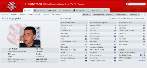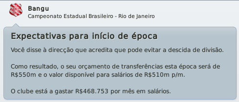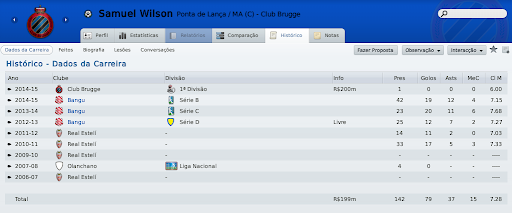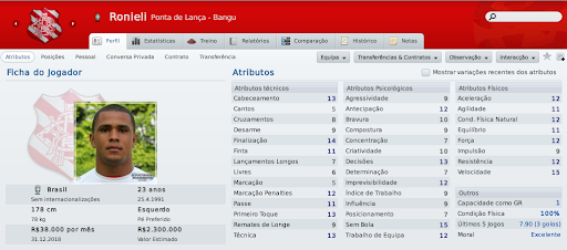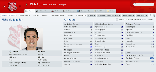 mfeitosa Postado 30 de Novembro 2010 Autor Denunciar Postado 30 de Novembro 2010 Ainda bem que continuaste. Veremos como será o Bangu na Série A com novo treinador. Espero sucesso. :thumbsup: Obrigado pelo apoio!! Tentarei não decepcionar! :thumbsup: Ae! Voltou, e voltou muito bem, por sinal. Excelente resolução para a história. Achei os veteranos meia boca, nada além disso. Acho que só se mantém na Série A, e com muuuuito custo, ainda. Quem parece ser realmente bom é esse newgen, Everton. 19 anos e status muito bem distribuídos, fora que tem 18 de determinação. O cara não vai desistir de melhorar haha! Parece ser jogador de nível de seleção brasileira, num futuro não tão distante. BS! Obrigado, Will! Estive olhando os elencos dos outros clubes da Série A, e notei que eles não estão absurdamente acima do Bangu. Dá para brigar pela manutenção e uma Sulamericana. Espero! :yes: Citar
