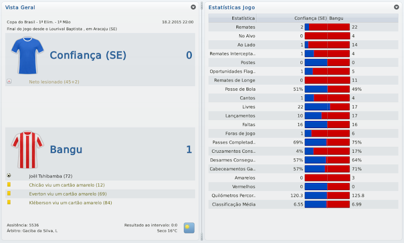 mfeitosa Postado 30 de Novembro 2010 Autor Denunciar Postado 30 de Novembro 2010 Com a eliminação na Taça Guanabara, Cláudio Adão apostou algumas de suas cartas na Taça Rio, visando a possibilidade de conquistar o Bi-Campeonato Carioca para o clube. Mas a verdade era que a maior prioridade do ano era a Copa do Brasil. De qualquer forma, o alvirrubro iniciou muito bem goleando o Madureira e o América. Entretanto, aquele bom momento foi logo interrompido pelo inesperado resultado contra o Duque de Caxias, um empate amargo onde o time de Cláudio Adão desperdiçou diversas chances de matar a partida. Em seguida, o Bangu retornou às vitórias, e conseguiu pontos importantes contra Sendas e Nova Iguaçu. As duas rodadas seguintes seriam contra ninguém menos que Fluminense e Flamengo, partidas decisivas. Mas não deu. O time errou bastante contra o Fluminense e foi derrotado por 2 a 0, resultado que já tirava grande parte das chances de classificação do alvirrubro. Já o empate contra o Flamengo, individualmente falando, foi muito interessante. O time se postou muito bem e dominou a partida, porém o placar de 1 a 1 não era suficiente para as pretensões de Cláudio Adão. O Bangu estava fora do Campeonato Carioca, e a vitória sobre o Americano na última rodada já tinha nenhuma importância. Do outro lado da história, Marinho ia muito bem sob o comando do Botafogo. Tão bem que sagrou-se Campeão Carioca sobre o Vasco da Gama. Já era o seu segundo título estadual, lembrando que o primeiro fora com o Bangu, em 2014. Neste ano, o Bangu encerrou sua participação com a 3ª colocação na Classificação Geral. Quanto às premiações, Kieza foi o vice-artilheiro da competição e junto a ele, o peruano Mario Velarde entrou para a Seleção do Ano. Pela Copa do Brasil, o Bangu também demorou a jogar seu melhor futebol e conseguiu passar pelo Goiás, por detalhes. Conseguiu um gol salvador na primeira partida no Serra Dourada, 1 a 1, e trouxe a decisão para Moça Bonita. Jogando de acordo com o regulamento, Cláudio Adão sabia que empate sem gols era do Bangu. E foi assim que o alvirrubro entrou em campo, sem arriscar-se desnecessariamente e segurando o resultado até o fim, 0 a 0. Precisando de mais opções para o setor de criação, dois reforços chegaram de última hora para as disputas das Oitavas-de-Final da Copa do Brasil. Os meias Leonardo (ex-AEK) e o jovem Diogo (ex-Cabofriense), considerado a Revelação do Campeonato Carioca. Na fase seguinte da competição, o alvirrubro enfrentou a forte equipe do São Paulo e começou muito bem, fazendo seu "dever de casa". Dominou o adversário em Moça Bonita e garantiu a vitória por 2 a 1, gols de Tshibamba e do estreante Leonardo. Na partida de volta, novamente jogando com o regulamento, o Bangu tratou se segurar um suado empate, 1 a 1, garantindo a passagem do time para a fase seguinte. Tshibamba, mais uma vez, foi decisivo. O bom momento de Cláudio Adão continuou pelas Quartas-de-Final, e o Bangu passou sem tantas dificuldades pelo Atlético Paranense. Fez um belo placar no jogo em Moça Bonita, 3 a 0, deixando o time em situação bastante confortável. Na segunda partida, na Arena da Baixas, Cláudio armou um esquema onde os jogadores explorariam, apenas, os contra-ataques. Não havia necessidade de arriscar. Mesmo assim, o Bangu ainda saiu com uma vitória, 1 a 0. Isto significava que, pelo segundo ano consecutivo, o time de Moça Bonita disputaria a fase de Semi-Finais da Copa do Brasil. Agora seu adversário seria o Santo André, clube que conseguiu o acesso para a Primeira Divisão juntamento ao Bangu, na temporada passada. Pelo caminho do time paulista, passaram Serra, Ituiutaba, Atlético Mineiro e Sport Recife. As disputas da Série A também já estavam prestes a começar, antes mesmo dos confrontos contra o Santo André pela Copa do Brasil. Santos, São Paulo, Goiás e Grêmio Prudente seriam os primeiros jogos do alvirrubro nesta volta à elite. Citar
