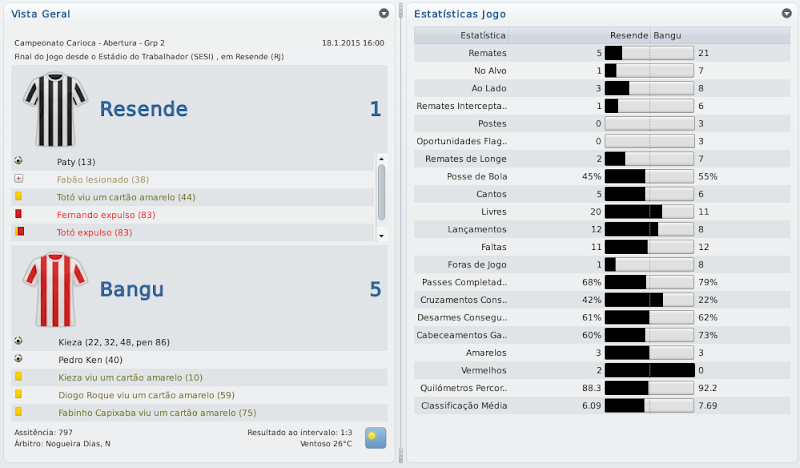 mfeitosa Postado 30 de Novembro 2010 Autor Denunciar Postado 30 de Novembro 2010 (editado) Aê, Feitosa!! Que bom que continuou a história!! :D Caramba, e quantas mudanças em relação ao time do Marinho... Deve levar um tempinho até os jogadores se entrosarem. No Carioca, ficar entre os quatro grandes já é um grande feito, ainda mais na Taça Rio, onde os jogadores ainda estão sem ritmo de jogo. Na Copa do Brasil, o Confiança nao deve oferecer muita resistência. Boa sorte ao Bangu e a Claudio Adão! Muito obrigado, Carlos! O time mudou bastante, realmente. Agora teremos dois jogos decisivos. Contra o Flamengo será uma tarefa complicadíssima, pois não acho que o time esteja pronto. Já passar pelo Confiança é obrigação. :thumbsup: Ainda bem que não acabou. Agora que o negoço começa a ficar legal. Imagina só o Bangu numa Libertadores!! :lol: Pierre e Chicão tão mitos demais ainda. Chicão rula nos técnicos e psicológicos. Tomara que consiga passar pelo Flamengo. Acredito que se vencer esse Carioca, a motivação será ainda maior pra continuar. Seria ótimo ver o Bangu em uma Libertadores novamente depois de quase 30 anos. O Pierre estava encostado no Palmeiras, mas o Chicão ainda jogou 14 partidas pelo Corinthians em 2014, não sei como eles liberaram. Talvez pelo salário. De qualquer forma, eu agradeço os presentes! :heh: Flamengo é pedreira, mas espero um confronto equilibrado, por mais que eles sejam bem mais time. Que grande classificação no Carioca! Deve ter sido emocionante o confronto contra o Botafogo, mas creio que Marinho deu uma bela ajuda ào alvirrubro... :bleh: Copar o Mengo e ir para cima do fraco Confiança... Valeu, LC! Foi um jogo bem esquisito, pois não achei ruim ter perdido, pelo menos o Marinho vai conseguindo se segurar no Botafogo por mais uns tempos. :heh: Ainda mais considerando, que o Cláudio Adão ainda classificou o Bangu! :lol: Editado 30 de Novembro 2010 por Marcelo Feitosa Citar