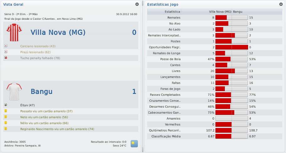 mfeitosa Postado 15 de Novembro 2010 Autor Denunciar Postado 15 de Novembro 2010 Nem tudo eram flores em Moça Bonita e Marinho encontrou muitas dificuldades para escalar o Bangu para o primeiro jogo decisivo contra o Uberaba, em Minas Gerais. Sem poder contar com Samuel Wilson que estava servindo a seleção da Nicarágua e com as lesões de La Paglia, Dininho e Léo Medeiros, o velho Mário teve que optar por um "Plano B". Sérgio Manoel, que ainda não havia jogado uma partida como titular, teve sua chance no meio-campo. Magno fora improvisado no ataque e Neto ganhou nova chance na zaga. Até Tiano que não estava sendo aproveitado na temporada voltou a ser relacionado. Se por um lado o ataque não vinha com força máxima, a defesa tratou de resolver aquele jogo para o Bangu. O camaronês Kalla abriu o placar logo aos 9 minutos. Simão empatou para o Uberaba, mas Neto garantiu que o Bangu fosse para o vestiário em vantagem, 2 a 1. Com Nélio e Sérgio Manoel machucados, o time voltou com Tiano e Edu para a segunda etapa. O jogo estava fácil e o alvirrubro marcou mais duas vezes, com Neto e Edu. Cadu Mineiro ainda descontou aos 39, mas não evitou a dura derrota do Uberaba, 4 a 2. Para o jogo de volta, mais desfalques: Sérgio Manoel e Nélio lesionados e Douglas Silva suspenso, sem esquecer das baixas de La Paglia, Léo Medeiros e Dininho. Em compensação, Samuel Wilson voltara de suas participações internacionais para reforçar o Bangu. Magno voltou para sua posição de origem e Fantick ganhou chance na meia-cancha. O jogo foi tranquilo e terminou empatado, com um Uberaba sem tanto poder de reação e um Bangu desperdiçando várias chances de gol, 1 a 1. O gol do Bangu foi marcado por Samuel Wilson. No final da partida, Kalla saiu lesionado após uma disputa de bola com Cadu Mineiro, o que significava mais problemas para Marinho. Na fase seguinte, o Bangu enfrentaria mais um clube mineiro. Desta vez foi o Villa Nova que havia eliminado, nos pênaltis, ninguém menos que o América, eterno rival de Moça Bonita. A verdade era que o elenco do time mineiro não era nada bom e o verdadeiro adversário naquela altura seria o alto número de desfalques que Marinho teria que driblar para escalar seus titulares. Sem opções, Márcio Martins que mal havia se recuperado de sua lesão teve que ir a campo, compondo a zaga junto a Neto, já que Dininho e Kalla estavam no Departamento Médico. No entanto, Marinho já poderia contar com Léo Medeiros e Douglas Silva. La Paglia ainda estava fora, e Nélio e Magno Capetinha foram escalados no meio-campo. O primeiro jogo contra o Villa Nova foi mais complicado que o esperado e o Bangu por muito pouco não foi para o intervalo em desvantagem no marcador. Evandro abriu o placar para os mineiros e Élton, finalmente encerrando seu jejum de gols, empatou aos 44. O time voltou para o segundo tempo mais focado e acabou por marcar mais duas vezes com Magno e Samuel Wilson, definido a partida em 3 a 1. O resultado do primeiro confronto dava certa tranquilidade para o Bangu, mas Marinho não queria saber de brincadeira e exigiu seriedade nesta segunda partida contra o Villa Nova. Mesmo estando bastante desfalcado, o time de Moça Bonita conseguiu mostrar um bom futebol, garantindo mais uma vitória, 1 a 0, gol de Élton. Tucho ainda perdeu um pênalti para o Villa Nova no segundo tempo, o que não faria tanta diferença no resultado final. Passada a Segunda Eliminatória, já estávamos nas Quartas-de-Final, restando apenas mais um adversário para o Bangu garantir o acesso para a Série C: o Fluminense-BA. O time baiano havia vencido nas fases anteriores times como Ipatinga e Juventude, dois dos favoritos ao acesso. O time comandado por Marinho estava a superar toda e qualquer expectativa em torno daquela temporada. De acordo com as regras da Série D, "na terceira fase os dez clubes restantes jogam novamente em sistema eliminatório, classificando os vencedores mais os três clubes perdedores de melhor desempenho para a fase seguinte", fato que salvou o Juventude de um vexame, permanecendo ainda nas disputas das Quartas-de-Final, mesmo com a derrota para o Fluminense-BA na fase anterior. Citar