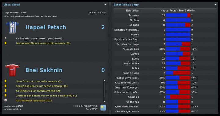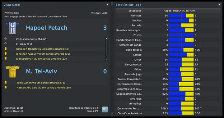 Bruno Trink Postado 25 de Janeiro 2011 Autor Denunciar Postado 25 de Janeiro 2011 24.05.2015 Sobrando na turma É sempre triste ser eliminado de qualquer competição, mesmo quando sabemos que nosso time era o azarão na disputa. Mas a vida segue e cinco dias depois já tínhamos que voltar à rotina dos campeonatos nacionais. E, em casa, estamos sobrando. Nosso time está muito acima dos demais e a prova disso são as cinco vitórias nos cinco jogos dos playoffs, melhor ataque, melhor defesa, recorde de pontos conquistados na Ligat HaAl, e por aí vai. Além da Liga, rompemos o trauma de ter perdido as duas últimas finais e conquistamos também a Gvia HaMedina, levando a Tríplice Coroa. Fechamos a fase de classificação com um empate e mais uma vitória e chegamos ao playoff com uma vantagem de dez pontos. Quer dizer, com mais duas vitórias (ou uma vitória e dois empates) conquistávamos o título. A intenção era vencer logo as duas primeiras, contra Maccabi Petach Tikvah e Maccabi Haifa, para poder dedicar mais tempo à Taça do Estado. Foi o que aconteceu e, coincidentemente, o título veio justamente na centésima partida seguida de invencibilidade na Liga. O time não perde nessa competição desde setembro de 2012, o que se configura num bicampeonato invicto. Isso porque, não satisfeito com o título, o time ainda confirmou sua absoluta superioridade com mais três vitórias, sobre Maccabi Tel Aviv, Hapoel Tel Aviv e Beitar Jerusalem. Terminamos o campeonato com um aproveitamento impressionante de 92,4% dos pontos e uma média de mais de dois gols por jogo. E, mais uma vez, estaremos na UEFA Champions League. O desafio, então, era conquistar também a Gvia HaMedina. Para isso, o confronto das quartas de final, contra o Maccabi Haifa. Tínhamos acabado de empatar com eles pela Liga e chegamos com o time um tanto quanto desfalcado. Mesmo assim, em uma partida estatisticamente equilibrada, fomos mais eficientes. Na semifinal, éramos o único "grande", mas meu pai sabia que não teríamos moleza. Essas copas são praticamente a única chance de um time pequeno aparecer. Ainda mais a Taça do Estado, que dá uma vaga na Europa League. Mas não demos chance ao azar. Goleamos o Hakoah Hamidar na semifinal e batemos o Bnei Sakhnin numa final que só foi decidida na prorrogação. Se é para escolher um jogador no elenco nessa temporada, o nome dele é Carlos Villanueva. Marcou 21 gols e deu 10 assistências jogando praticamente como um segundo atacante. Outro que se destacou bastante foi o Aharonovich. A tendência é que o zagueiro seja convocado pelo Elisha Levi para os próximos jogos da Euro. Entre os reservas, o Adi Elisha, principalmente na segunda metade da temporada, entrou muito bem e deve aparecer mais no ano que vem. Jeffrey Sarpong não aprovou e já acertou sua saída para a Inglaterra. Pelo menos rendeu alguns milhões de euros para o cofre do clube, ao contrário do Assulin, que se despediu do clube entregue ao departamento médico. Já temos, fechado, um substituto para ele, mas isso é papo para depois das férias... Postado por rdayan Citar