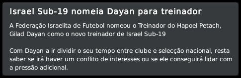 Bruno Trink Postado 31 de Janeiro 2011 Autor Denunciar Postado 31 de Janeiro 2011 24.05.2015 É seleção! Durante os cinco anos do meu pai a frente do Hapoel Petach Tikvah, a seleção israelense trocou de treinador duas vezes. Nas duas, ele se candidatou para a vaga, mas a federação fez outras opções. Nessa semana, Elisha Levi, atual comandante da seleção, convidou meu pai para ser o responsável pela seleção sub-19. Acho que será uma experiência interessante e, quem sabe, pode gerar frutos para nosso clube. Que, por sinal, vai muito bem, obrigado. Líder da Liga, como já era esperado, mas também no grupo B da Champions League. A classificação para o mata-mata pode vir, inclusive, já na próxima rodada, se vencermos o Gent e a Roma derrotar o Porto. É sempre bom estrear em casa, mesmo se o adversário é do nível de um FC Porto. Num grupo como o nosso, com dois times fortes, vitórias em casa são fundamentais. Jogamos para vencer os portugueses e o time foi muito bem. Facilitado, sim, pela expulsão do croata Vukojevic. Villanueva fez o primeiro cobrando falta lá da intermediária, golaço. No segundo tempo, Aharonovich ampliou, de cabeça, fechando a vitória. Mais surpreendente ainda foi a derrota da Roma para o Gent, na Bélgica. Por isso, a pressão por uma vitória na partida seguinte, no Olímpico, era toda deles. Logo no primeiro lance de perigo, o brasileiro Mattioni fez pênalti e foi corretamente expulso, apesar da reclamação romana. Lorusso cobrou e nos deixou em vantagem também no placar. Com um jogador a mais, estávamos controlando muito bem as ações, mantendo a posse da bola e a Roma longe da nossa área. Mas a história se repetiu. Aharonovich derrubou Macheda dentro da área e também foi expulso. O próprio Macheda empatou a partida. Dez contra dez e a Roma pressionou durante os 20 minutos restantes, mas não conseguiu virar o jogo. Na terceira rodada, saímos para enfrentar o Gent. Um empate fora de casa não seria de todo ruim, mas sabia que tínhamos condições de vencê-los. O jogo foi aberto e muito equilibrado nos primeiros 45 minutos. No segundo tempo, entretanto, o melhor time venceu. Confusão na área, pênalti para nós. Villanueva, voltando de contusão, abriu o placar. Nos dez minutos finais, dois gols e virou goleada. Como eu disse, se vencermos o Gent em casa, ficamos muito próximos da classificação para a próxima fase. Esse quadro não era esperado há dois meses, todos previam que teríamos muitas dificuldades no grupo e que a vaga na Europa League era mais provável. Mas estamos contrariando todos os críticos. Ao contrário da temporada passada, meu pai tem escalado os titulares em mais partidas. Muito para consolidar o entrosamento dos novos jogadores, mas também na esperança de abrir logo uma boa vantagem na Liga para poder poupá-los mais para o final da temporada. Como consequência, vencemos as seis partidas que fizemos nesses dois meses e, se não fosse a também muito boa campanha do Beitar Jerusalem, já estaríamos mais folgados na liderança. Na Gvia HaToto, os citizens também tem sido nossos principais rivais e dividem a liderança conosco. Villanueva vem se mantendo como o grande nome do Hapoel Petach Tikvah, mesmo tendo ficado quatro semanas fora com uma lesão. O italianinho Lorusso surpreende com a facilidade na sua adaptação e já marcou cinco vezes e deu sete assistências. Outro que também já chegou mostrando serviço foi Gili Vermut, vice-artilheiro do time na temporada. Strahman, que começou muito bem e chamou a atenção de muita gente, está encarando um jejum de gols e meu pai já tem cogitado voltar com o Biton. A defesa continua muito forte, mas espero que meu pai, junto com a diretoria, consiga definir a renovação dos contratos do Rubinho, do Aharonovich e do Maimon. Todos terminam no fim da temporada e os três estão pedindo aumentos um tanto quanto fora da realidade. Dos três, é bem provável que o goleiro brasileiro deixe o clube mesmo. Postado por rdayan Citar