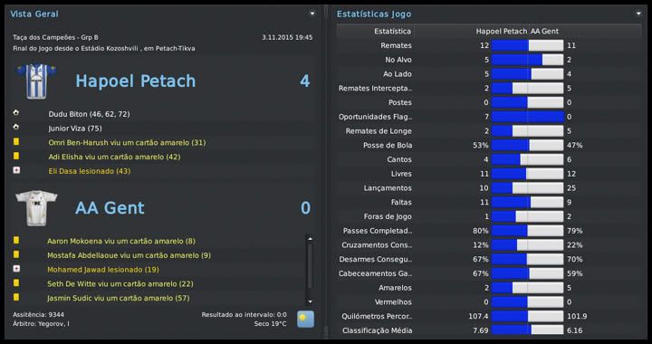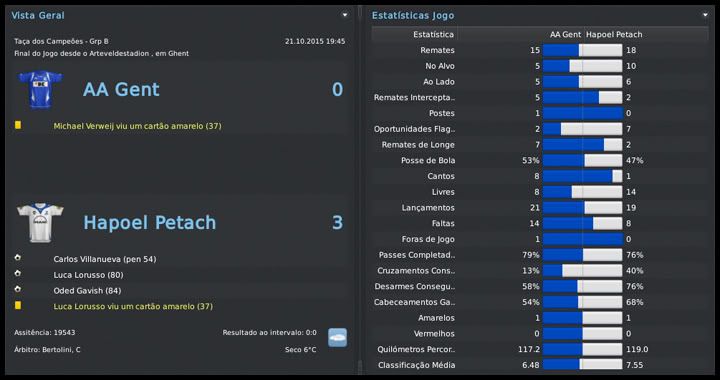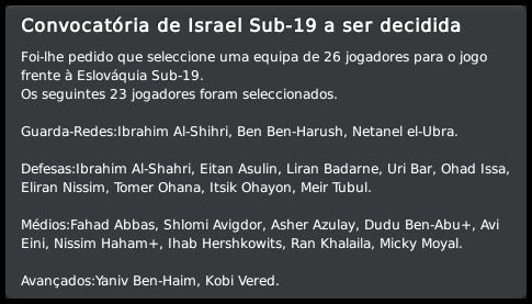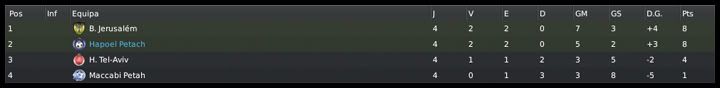 GG. Postado 1 de Fevereiro 2011 Denunciar Postado 1 de Fevereiro 2011 Ótimos resultados contra Roma e Porto, mas como você disse é preciso ficar atento, pois as expulsões podem ter ajudado seu time, mas creio que não foi isso e o Petach fará boas partidas contra essas equipes e se classificará. Já pensou se pegar o 1º lugar. Nas competições israelenses, os Azuis continuam muito bem, mas creio que o mais interessante foi a vaga na seleção israelense. É sub-19, é bem verdade, mas vai dar um colorido ao save e uma motivação a mais para você. Citar