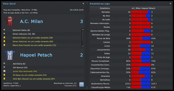 Bruno Trink Postado 8 de Fevereiro 2011 Autor Denunciar Postado 8 de Fevereiro 2011 26.04.2016 Deu a lógica Não deu, é verdade, mas olha que foi por pouco. Todos acreditavam que já era para termos caído na fase anterior, frente ao Bayern, mas o fato é que estávamos nas semifinais da competição mais importante entre clubes europeus. Mesmo com o empate em casa, estivemos algumas vezes a frente do placar lá em Milão mas, no final, o favorito venceu. Estamos todos muito orgulhosos do Hapoel Petach Tikvah, fizemos uma campanha brilhante, mas a temporada ainda não acabou. Temos mais cinco jogos para nos colocar de novo na Champions e precisamos voltar o foco para as competições nacionais. Mais uma vez, jogamos a primeira partida no Kozoshvili e a ideia era tentar repetir a fase anterior. Mas estávamos falando de Milan, com Lavezzi e Pato no ataque, Marko Marin, De Silvestri e o "monstro" Thiago Silva. E foi o atacante argentino que abriu o placar num lindo chute de fora da área, depois de pegar o rebote de uma cobrança de escanteio. Ainda bem que empatamos logo depois, com Viza, substituto do Villanueva que, além de suspenso, ainda contraiu uma lesão que o deixaria de fora também da segunda partida. Foi um jogo aberto e equilibrado. Posse de bola dividida, uma bola na trave para cada lado, oportunidades de gol para as duas equipes, uma bela partida. O empate não era um bom resultado em termos de classificação, mas dá para se orgulhar da atuação contra um dos gigantes europeus. Já tinha entregue os pontos, mas vocês já conhecem meu pai, né? Ele acredita sempre e, para tentar surpreender o treinador Valerio Fiori, armou aquela blitz nos minutos iniciais. Ninguém esperava uma pressão nossa lá no San Siro. Precisamos de seis minutos. Elisha, ótimo substituto do Lorusso, fez 1 a 0 e calou quase oitenta mil milaneses. Mas durou pouco, mais precisamente dois minutos, até o gol de empate do Kalou. Continuamos na pressão mas sem finalizar, só que, antes dos 20 minutos, Vermut nos colocou novamente na frente e, então, classificados. A partida era eletrizante. Com dois gols marcados fora de casa, teríamos que sofrer a virada para perder a vaga na final. Mas Milan é Milan, não é Monaco ou Bayern. Não precisou nem chegar ao intervalo. Com dois gols de Vukcevic, os rossoneros passaram a frente no placar e assim terminou o primeiro tempo. Viza se contundiu e faltou gás nos 45 minutos finais. Estamos eliminados, mas orgulhosos da campanha na Champions. Foco agora nos playoffs da Liga, que até já começaram, e na semifinal da Gvia HaMedina. Está mais apertado que na temporada passada mas já estreamos contra o Maccabi Haifa. Vencendo, abrimos sete pontos sobre eles e nove sobre o Maccabi Tel Aviv, terceiro colocado. Como eu falei, o título está entre os quatro primeiros e a primeira decisão já é no sábado. Villanueva está voltando, assim como Ferreira. Tínhamos o Rubinho e o Maimon com problemas para renovar seus contratos. Do goleiro brasileiro eu até já tinha desistido, mas ele baixou sua bolinha e renovou até 2018 por uma proposta muito mais acessível. O mesmo aconteceu com o Maimon. Outros, fora dos planos, como Ben-Naim e Adawi, já acertaram suas saídas para o final da temporada. Não é momento ainda de falar de reforços, mas não posso mentir e dizer que não estou de olho. Mas é só isso mesmo, nada certo, apenas fase de pesquisas. Postado por rdayan Citar
