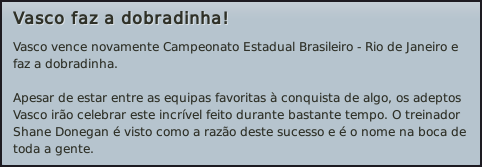 Darthz Postado 10 de Maio 2011 Autor Denunciar Postado 10 de Maio 2011 Está a começar a perder a graça… Agosto e Setembro eram meses em que só jogaríamos partidas a contar para o Brasileirão. Tínhamos alguns adversários complicados, como o Santos, o Internacional, o Fluminense ou o Cruzeiro, mas no geral não era uma série particularmente difícil, para a qualidade de futebol que vimos apresentando. Começo a ficar bastante farto deste campeonato, em que já está tudo conquistado, e isso está a ser um motivo para ir jogando muito pouco. Espero que com o final da época as coisas melhorem e eu comece a ganhar mais motivação com o save. Coritiba, Avaí e Portuguesa foram presas fáceis para o Vasco e deram pouco que fazer nos primeiros jogos de Agosto. Nem foi preciso jogar muito bem, porque os nomes do adversário são bastante fracos e quase não ofereceram resistência ao nosso tipo de jogo. O Atlético Goianiense e, principalmente, o Cruzeiro foram adversários bem mais difíceis que os anteriores. No primeiro jogo apenas conseguimos vencer pela margem mínima e já na altura de descontos. Nesta partida o principal problema foi a falta de vontade com que entrámos em campo, e isso prejudicou-nos bastante. Contra o Cruzeiro fizemos um jogo bastante bom, apesar do adversário não facilitar em nada a nossa tarefa. Foram muito difíceis de bater e os dois golos de vantagem são um resultado bastante enganador. O jogo que mais atenção me despertava em Agosto era a partida com o Fluminense. Nada como um dérbie para dar mais motivação aos jogadores e fazer os adeptos felizes. O nosso objectivo era vencer, como seria de esperar, mas sem deixar de respeitar o adversário. Não era por termos vencido a Libertadores que éramos invencíveis. Acabámos por ganhar com um golo solitário de Jonathan, logo aos três minutos de jogo. Não rematámos muito, mas também não deixamos o Fluminense fazer grandes jogadas de perigo. Estive até ao final dos noventa minutos com medo que num lance qualquer o adversário conseguisse empatar e roubar-nos dois pontos. Felizmente isso não aconteceu e fizemos a festa de mais um dérbie ganho. O último jogo de Agosto foi com o Ipatinga, e aproveitámos para somar mais três pontos contra um adversário que luta desesperadamente contra a despromoção. Nem foi necessário por os titulares em campo, e aproveitei para rodar mais a equipa e dar minutos a jogadores menos utilizados. Setembro começou com a partida contra o Santos, no Vila Belmiro, em que incrivelmente e para espanto de muitos, banalizámos totalmente o adversário, sem os deixar respirar, e vencemos por dois golos sem resposta, juntando mais três pontos à nossa conta. Recebíamos o Internacional no São Januário, num jogo bastante aguardado por mim, pois nas últimas partidas contra eles temos sentido bastantes dificuldades em contornar o meio-campo defensivo deles, e além disso a dupla de centrais foi melhorada e está bastante forte. Esperava-se um bom jogo e era isso que queríamos dar aos adeptos, além de uma vitória. Que jogão que fizemos! O Vascão dominou completamente, apenas deixando o adversário fazer um remate, que nem à baliza foi. Criámos muitas jogadas, marcámos por duas vezes, e demos um show de bola, maravilhando tudo e todos, e dando razão aos que nos intitulam como melhor equipa da América. Vamos ver como vai ser o resto da época, mas este jogo deixou-me com muita esperança para os troféus complicados que se avizinham. Os últimos jogos do mês, contra Botafogo, São Caetano e Icasa foram mais uma vez simples e fáceis para nós. Conseguimos mais três vitórias e confesso que ver tantas vitórias seguidas me deixa bastante satisfeito. Citar