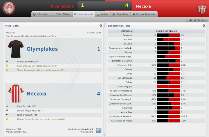 Diogo King Postado 21 de Janeiro 2011 Denunciar Postado 21 de Janeiro 2011 Gostei do elenco, dá pra brigar. Principalmente do montenegrino aí! Experiente, mas com bons atributos técnicos, quando se adaptar deve ajudar e muito o Necaxa. Gostei do Gandin também. A vitória sobre o Olimpyakos foi pra começar bem mesmo. Sorte aí no apertura e essa fórmula do campeonato é osso duro de roer viu! Não vai faltar emoção... rsrsrs Abração! :specool: