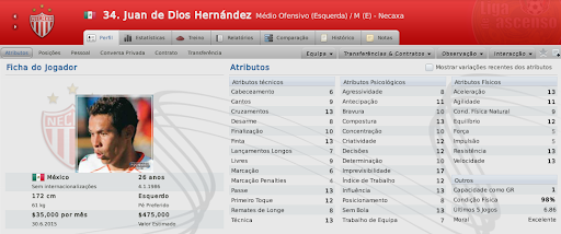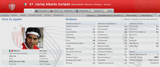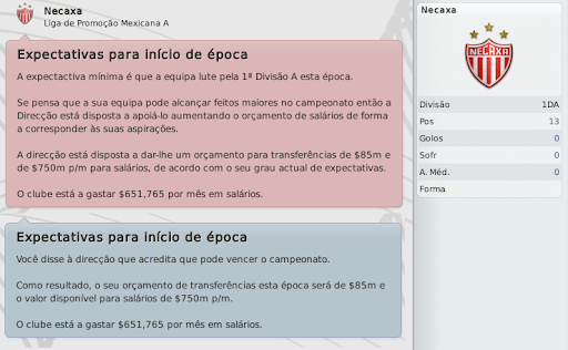 mfeitosa Postado 21 de Janeiro 2011 Denunciar Postado 21 de Janeiro 2011 Que sufoco financeiro hein meu amigo? É desafio em todos os sentidos! hehehe Sorte aí cara. Teu elenco é razoavel? Tu vai postar pra nós né? Abração Verdade. Como viu, entrou mais de 1 milhão de TV nos caixas do clube e ainda estamos no vermelho. A temporada será um sufoco! Sim, vou postar o time já com os reforços. Ainda não postei, porque estou estudando vários nomes para contratar. Gosto desta parte, e sempre dedico um tempo a mais. Valeu, Diogo! Eu me surpreendi e gostei da escolha. O México é um país com um futebol bem interessante e como no meu save pretendo passar por lá vou ficar de olho nos destaque por aí. Além disso, o Necaxa me trás ótimas recordações, como a semifinal do Mundial da FIFA de 2000 :specool: Reerguê-lo vai ser uma tarefa muito interessante e subir é obrigação hein :rtfm: Gosto do México. Fico surpreendido porque não tem tanto destaque internacionalmente. Os times possuem boa estrutura, torcidas imensas e condições financeiras consideráveis, mas dificilmente fazem boas campanhas continentais. Digo, em relação a títulos. Uma pena. Vamos ver se isso muda agora! :lol: Foi exatamente na época daquele Mundial que simpatizei com Necaxa! Subir? Obrigação MESMO. Eu fiquei surpreso em ver que saiste para a segunda divisão mexicana quando tinha chances de chegar até a Série A da Itália. Achei besteira, mas você é quem está jogando, então, vamos ver como se sai no Necaxa. Pô, Henrique. É porque eu nem vi por este lado, ir para a Segunda Divisão Mexicana. Pensei, ir para o Necaxa. Acho que vai ser interessante, vamos ver no que dá! ;) acompanhando aqui :specool: amigo que skin é essa que vc usa ? pode fala o nome ? achei bonita BS ae no Necaxa :thumbsup: Fala, Rafa! O nome da skin é Glass.2, baixei aqui no fórum. Obrigado! Para mim foi um retrocesso.. mas boa sorte para vc no necaxa... Valeu, Franquini! Fique tranqüilo que a carreira do Caniggia ainda será bem longa, poderá retornar a Europa! :yes: Achei um desafio bem motivador, a primeira coisa que me veio a cabeça foi o Vasco, um gigante que caiu, o triste é que o Necaxa não se re-ergueu em seguida o que torna as coisas mais dificeis já que as principais peças da equipe (original) já devem ter saído do clube. Também vi desta forma, Vita. O desafio é motivador. Quis expandir ao máximo as possibilidades do save e segurar um pouco a "evolução" do Caniggia. Se foi um retrocesso, foi um retrocesso bom para o save. Aquele jogo do Vasco contra o Necaxa foi muito legal, de virada. O Aguinaga ainda estava no time. Grande Aguinaga!