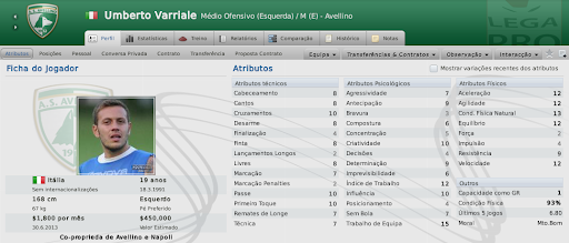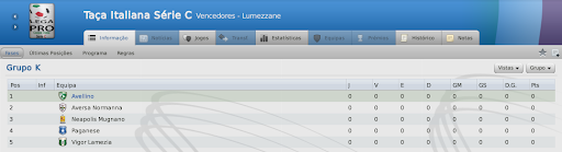 mfeitosa Postado 2 de Janeiro 2011 Denunciar Postado 2 de Janeiro 2011 Confira a ficha técnica dos novos contratados: Claudio De Rosa, Daniel Henz, Michele Ferri, Eder Baù, Rodrigo Trovo e Fabio Galante. Confira o resumo das partidas de Pré-Temporada: v Del Conca, v Arezzo, v Gladiàtor e v Eloile-Carouge. Após estas seis contratações, o adjunto apontou que seria interessante reforçar o ataque. Ainda existe espaço na folha salarial para mais duas contratações consideráveis, com salários de $ 10.000,00 mensais. Um atacante e um Camisa 10 serão os próximos alvos de Caniggia. A Taça Italiana Série C começará antes da Série C2, e o Avellino foi sorteado para o Grupo K, ao lado de Aversa Normanna, Neapolis Mugnano, Paganese e Vigor Lamezia, onde apenas o Paganese é da Série C1. Os demais também estão na C2.