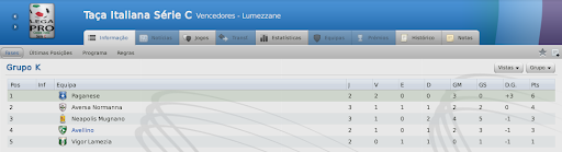 mfeitosa Postado 4 de Janeiro 2011 Denunciar Postado 4 de Janeiro 2011 Série C2/C: Resultados dos jogos v Aversa Normanna, v Melfi, v Vigor Lamezia e v Matera Taça Série C: Resultados dos jogos v Aversa Normanna, v Paganese Classificação da Série C2/C Classificação final do Grupo K da Taça Série C Acredito que finalmente encontrei a melhor forma de postar neste estilo. Como podem notar, algumas partes da imagem da notícias possuem links externos diferentes, como classificação, vídeos e resumo dos jogos. Se alguém tiver sugestões, favor dizer! <img src='http://www.fmanager.com.br/forum/public/style_emoticons/default/wink.gif' class='bbc_emoticon' alt=';)' />