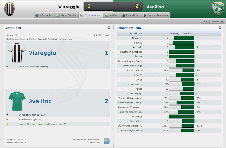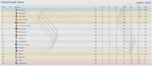 mfeitosa Postado 13 de Janeiro 2011 Denunciar Postado 13 de Janeiro 2011 Sequência praticamente perfeita. Se não fosse o polêmico jogo contra o Taranto teria 100% de aproveitamento. Continuando assim consegue bem o acesso e com o título. Ganhou o confronto direto com o Grosseto, muito importante. Ps: Muito falta mesmo esse lance contra o Taranto! Pior é que o Grosseto dificilmente tropeça, e aqueles 2 pontos que perdemos pro Taranto farão falta. Por sorte, conseguimos vencê-los no confronto direto e assumimos a liderança! Agora quem não pode tropeçar é a o Avellino! :yes: vem mto bem na competição.. já abriu uma boa vantagem pro primeiro eliminado.. Valeu, cara! ;) Essa arbitragem italiana... O time está muito bem. Minha desconfiança inicial se foi. O Avellino pode seguir bem na temporada. O time está funcionando muito bem. Estamos tendo muitas lesões, mas como temos um elenco consideravelmente numeroso, os buracos estão sendo tapados sem problemas. Pelo menos, até o momento. Pegou a liderança, está muito bem, se manter título na certa. E na Taça Série C passou bem pelo Como, outra competição para ir em busca do título. Juiz ladrão hein?! Estão querendo derrubar o Avellino! :lol: O cara atropelou o meu zagueiro. :heh: Exatamente, estou buscando o título da Taça Série C. Mas como um objetivo pessoal, pois a diretoria não dá importância a competição. Valeu, Lucas! Ta muito bem... Líder e indo bem na Copa... Parabéns Valeu, Franquini! :D