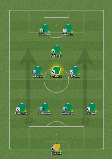 mfeitosa Postado 12 de Janeiro 2011 Denunciar Postado 12 de Janeiro 2011 mas que grande azar na taça mas de resto tem sido Gimenez mais 10. Qual a tua táctica? Verdade, mouki! Normalmente, utilizo um 4-3-1-2 que pode se transformar num 4-1-2-1-2 no jogo, dependendo do adversário. Também costumo utilizar o 4-2-2-2 defensivo em jogos fora de casa ou para segurar resultados.
