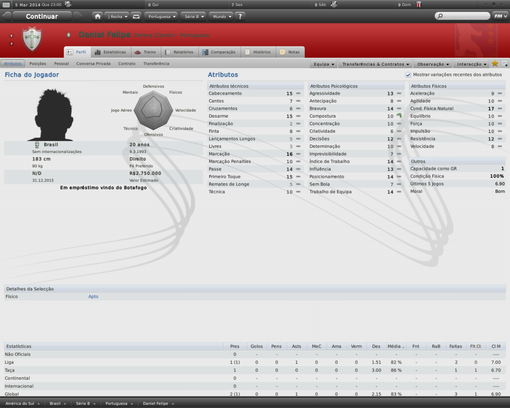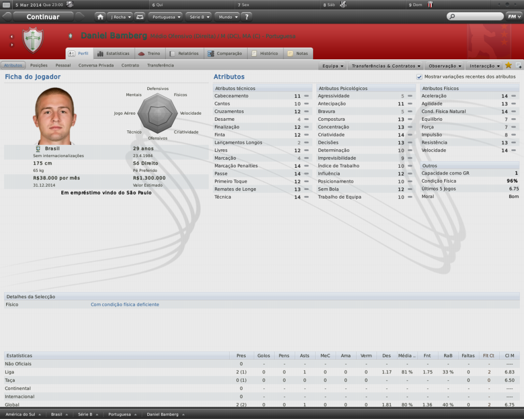 Jirimias Postado 15 de Fevereiro 2011 Autor Denunciar Postado 15 de Fevereiro 2011 Time mal administrado dá nisso. Pelo menos a base tá formando mais bons jogadores pra você. Eu vou tentar cuidar da base, para que não ocorra estas negociações precipitadas e mal feitas. Consegui ler tudo. Muito boa a história Jirimias. Também fiz uma carreira dessas, comecei com o Trem, no segundo ano fui para o Botafogo (SP), consegui promoção pra série C e em seguida pra série B, e consegui ficar em 4º na série B, com um segundo turno impecável. Daí na metade do campeonato paulista de 2016 fui chamado pro Santos. Tá muito bom. Boa sorte na Lusa, tenho certeza que vai figurar entre os postulantes ao acesso com o time que montar. Se quiser indicações, é complicado por conta do tempo avançado de jogo, mas posso ajudar. Obrigado pela leitura,paso!É muito bom esse tipo de carreira, e pelo jeito vc tá indo bem.O difícil para mim sempre foi lidar com newgens, mas neste save eu aprendi a gostar de mexer com a base. Acho que vamos lutar diretamente pela promoção, mas ainda preciso acertar este time.Pode indicar, ajuda bastante, se for zagueiro e zagueiro será melhor ainda. dagol é craque se vier é lucro demaiiss, é páreo duro com o Diogo no FM.. tenta contratar o Elkeson(MA), Wendel (Começa no CAM, é MA), Romário(começa no Vitória, DL Direita), Marcos Aurélio(começa no Coritiba, PL), Renatinho(PL, não sei onde começa <_< ), Sodinha(MA, acho que vem emprestado, começa no Udinese) ee faz um Como vai você do Flamengo, Arsenal e Real Madrid ?? se possível, claro..haahahaha sou muito chato :bleh: Já fiz um Como vai você com o Mengão, foi o primeiro, dá uma olhadinha lá trás.Os outros já anotei.Relaxa que não incomoda não, a idéia era interagir mesmo. O diogo eu não consegui, mas o Dagoberto tá perto.Peguei os nomes, já dei uma olhada, estão todos bem valorizados, mas já tentei o marco Aurélio e o Sodinha, vamos ver. O próximo Como vai você? Arsenal e Real Madrid Citar