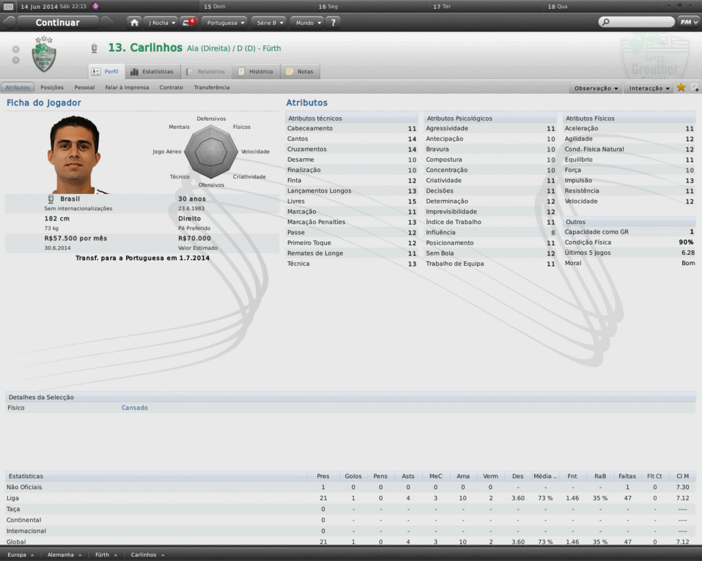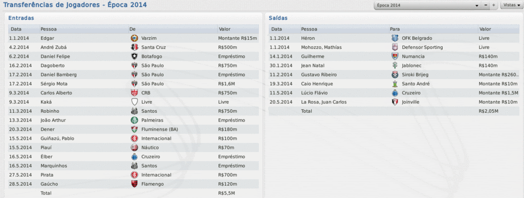 Jirimias Postado 23 de Fevereiro 2011 Autor Denunciar Postado 23 de Fevereiro 2011 Agora está tudo normalizado aqui, apesar de continuar sem som no computador, mas amanhã chega a placa.Além dos pedidos do Como vai você, eu adicionei a Copa do Brasil como curiosidade, porque merece... Conca: com 31 anos, o médio do Fluminense está avaliado em R$8,5M.Sua média atual é 6.60.O jogador de dupla nacionalidade, não foi convocado nenhuma vez pela Seleção de seu país, nem pela Seleção Brasileira. Dentinho: com 25 anos, está avaliado em R$20M.Segue firme no Corinthians.Sua média atual é 7.74.Foi convocado duas vezes para a Seleção Brasileira. Arsenal: títulos: Liga dos Campeões Europa (2011), Campeão Inglês (2011/2012 e 2012/2013),Mundial de Clubes (2011),Supertaça Européia(2012), Taça da Liga (2012) e Supertaça da Inglaterra (2012).Destaques: Fabregas,Chamakh e Ramsey. Real Madrid: título: Liga BBVA(2012).Destaques: Ôzil,Kaká,C.Ronaldo e Kevin Kurányi Copa do Brasil:últimos campeões: Coritiba(2011), Ceará(2012) e São José(RS)(2013).A edição de 2014 está sendo disputada por Inter x São Paulo e Botafogo x Ceará. Citar