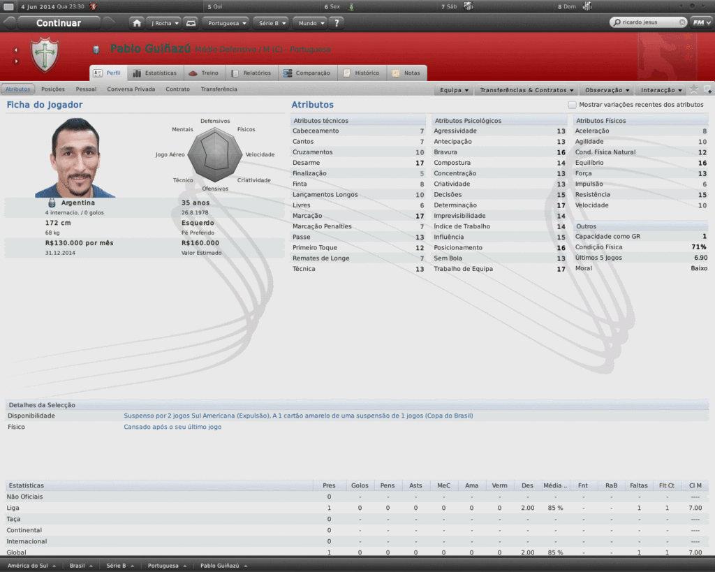 Jirimias Postado 22 de Fevereiro 2011 Autor Denunciar Postado 22 de Fevereiro 2011 ótimo jogador, vai carregar o time. Começando a seguir com frequência :thumbsup: Pena que não consegui acertar com ele,Luiz.A Europa falou mais alto rsr Valeu pela força e por passar a acompanhar. Como que está o Conca e Dentinho no save? Já, já posto junto com o pedido anterior do "Como vai você". :thumbsup: Foi uma grande campanha apesar de tudo, só acho que na Lusa não tem essa pressão toda. :heh: E que loucura a premiação, doido mesmo. O argentino é bom demais, na Série B jogaria fácil, agora vai para terras espanholas, pena. Mas os reforços que tu trouxe não ficam muito abaixo, acho que o treinador de video-game vai ficar mais conhecido ainda depois dessa temporada... :thumbsup: Lá o pessoal é estressadinho sim, não viu o lance depois do jogo contra o São Paulo?Ali eu tive que pegar leve, pq o time chegou na semi-final. Ganhei um prêmio de lambuja, tive que inventar uma historinha pra não ficar feio hehe. Estou apostando no Guinazu e nos outros que vão cehgar, já terei uma base pronta para a Série A. Citar