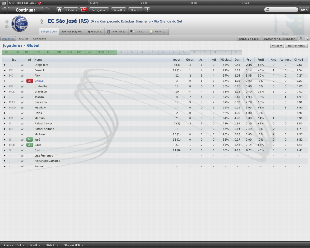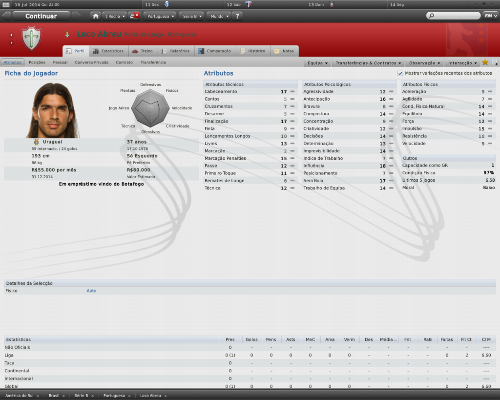 Jirimias Postado 24 de Fevereiro 2011 Autor Denunciar Postado 24 de Fevereiro 2011 Ótimos resultados. Deve subir fácil! :thumbsup: Ahco que sim, mas temos que continuar assim. Dagoberto jogando tudo que sabe e com um ótimo time por trás dele só pode dar nisso: liderança com certa facilidade. Dagol tá se acertando, consequentemente o time tb passou a render mais. Qual Skin você usa.. Glass 2 Como estão os tecnicos Mourinho,Mano e Muricy? Anotado aqui.Vou olhar. :thumbsup: Tá com um bom elenco no papel, logo, se o papel continuar indo bem, como está indo, sobe. Isso aí, tenho um time bom no papel, e por ora tb em campo. Como vai você? Mourinho Mano Muricy Argel um jogador da vida real que no FM tenha se aposentado, virado treinador e conseguido algum destaque! Citar