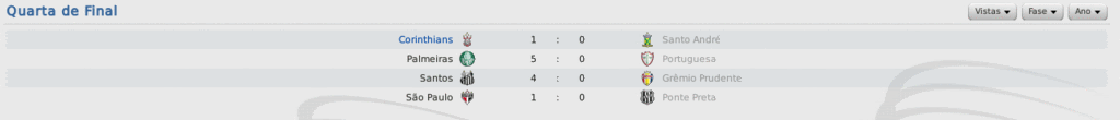 Jirimias Postado 23 de Março 2011 Autor Denunciar Postado 23 de Março 2011 Paulistão na reta fina! O Timão selou sua participação na semi-final do Campeonato Paulista na vitória por 1 a 0 sobre o Santo André.Com time misto, em virtude do jogo no meio de semana pela Libertadores da América, o Corinthians não teve dificuldades na partida, mas a bola teimou em não entrar.Ari fez o gol Mosqueteiro. Na semi-final, o Corinthians enfrenta o São Paulo, e Palmeiras e Santos fazem a outra semi-final.Notícias relacionadas:Semi-finais definidasEnfim líder!Retrospecto do Timão Citar