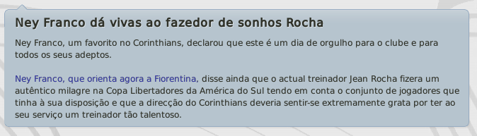 Jirimias Postado 25 de Março 2011 Autor Denunciar Postado 25 de Março 2011 JIIIIIIIIIIIRIMIAS meu graande! quanto tempo cara! voltei pra ganhar os teus esquemas hahahhahaha bons tempos de vagabundagem! abração JAAAAAAAAAAAAAAAAAAAAAAUUUUUUUUUUUUUUUUUUM, quanto tempo moleque!!!! hehe um dia desses eu li lá o Monalisa e deu saudade daquele tempo, aquele tempo éramos vagabundos mesmo hsuahusa. Abração!!!Vlw por passar aqui! :specool: Caramba, parabéns pelo belo título. Só não é melhor porque no jogo o Timão já tinha conquistado a Libertadores 3 vezes né? Cardozo dá pro gasto sim, grande jogador que contratou. Foi estranho ver a Libertadores só com brazucas nas semi-finais. Hehehe Será que postar essa congratulação do Ney Franco na Fiorentina significa alguma ida para a Itália? :lol: Eh, eu queria ter o gosto de ser o primeiro :lol: , mas enfim, valeu pelo que mudará na minha carreira. Cardozo é só um dos monstros que vem aí, alguns velhacos, mas vou fazer uma máquina neste brasileiro.Ah, o domínio brazuca ocorreu nestes últimos anos creio eu pelo dinheiro que os clubes brasileiros tem ganho, principalmente revelando jogadores, mas a liga mais forte do continente é a Argentina, o brasil é o segundo. ahah o post do Ney foi só pra dizer que ele tá na Fiorentina, achei bacana!Mas tb servirá como uma ponte em uma possível transferência para a Europa, mas por enquanto nada está certo. :thumbsup: Que humilhação santos perdeu a final da libertadores pro Corinthians... :nono: Ah, ajuda aí, cansei de perder pro seu time...deixa eu ganhar uma :heh: Citar