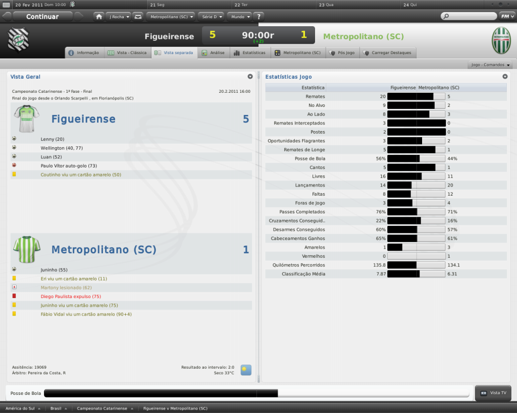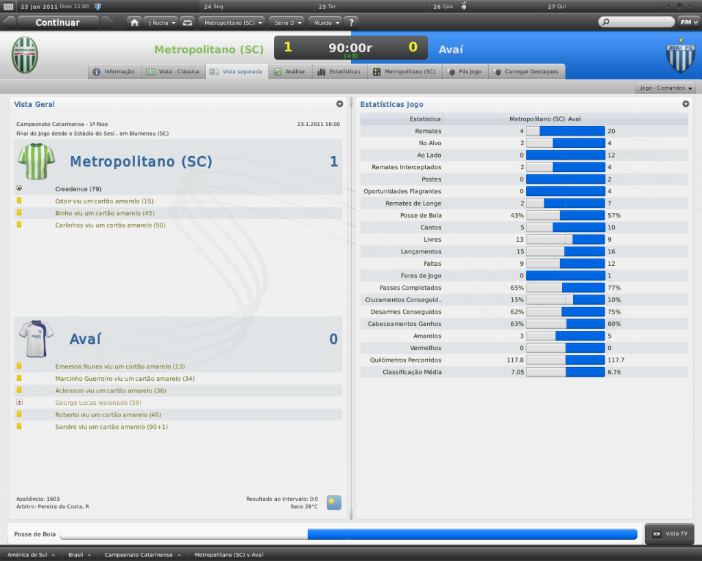 Jirimias Postado 24 de Janeiro 2011 Autor Denunciar Postado 24 de Janeiro 2011 TEMPORADA 2011 Capítulo 4 Para quê serve um conselheiro? O grande problema de trabalhar com o presidente Edson é acostumar com suas reuniões surpresas.Assim sem esperar, vem alguém me avisar: - " Jean, o Sr. Edson quer falar com você". -Jean, me explica quem são estes três rapazes aqui. Os três rapazes eram os três últimos reforços para a disputa do Campeonato Catarinense, e o Sr. Edson sabia disso, estava perguntando só para me encher o saco. -O Sr. me deu aval para contratar, e eu achei necessário trazer mais alguns jogadores.Olha, da esquerda para a direita: Eri, lateral direito, já jogou no Paraná no Atlético Paranaense; Henri, atacante, rodou aqui pelo Sul, e vem compensar a barração da molecada do Vasco; e por fim o Rômulo, que veio do Botafogo, por empréstimo, lateral esquerdo, vem para ser reserva do Fábio Vidal. - Você enlouqueceu?Todo dia vejo uma cara nova neste time!Ontem vi as molecadas que trouxemos por empréstimo treinando entre os juniores, e agora você contrata mais. - Sr. Edson, me desculpe a sinceridade, mas o senhor prefere resultados financeiros ou vitórias dentro do campo?Se for dentro do campo, deixa comigo que eu sei o que estou fazendo, se quiser financeiro, por favor trate de ser menos pão duro, pois com esta verba de salário não há muito o que fazer.Agora deixa eu ir que tenho que me arrumar para o jogo contra o Avaí.Tenho que vestir uma boa roupa para sair nas fotos dos jornais, porque hoje é dia de vitória.Vamos lá, rapazes! O engraçadinho do conselheiro Edvaldo soltou a dele antes que eu saísse da sala: - Ah, sim, mas não esquece de desligar o Playstation quando terminar de vencer o Avaí,hein? Ignorei, é o melhor a fazer nesta situações.Eu ssai, mas o fulaninho continuou a falar de mim. - Presidente, esse rapaz está ficando muito ousado, acho que está na hora de cortarmos as asinhas dele. - Se aquiete Edvaldo, se ele continuar me surpreendendo, ele pode até me xingar que eu não ligo.Vamos deixar de conversa fiada, pois eu quero ver o Metropolitano ganhar hoje! http://www.youtube.com/watch?v=ZUJ8IIw71Gc Metropolitano e Avaí jogavam pela 5º rodada da 1º fase do Campeonato Catarinense, até aí nada muito incomum.Até que Credence, aos 34 mintuos do segundo tempo deviou bem a falta cobrada da esquerda e marcou o gol que selaria a vitória do modesto Metropolitano.Sim, a vitória do "Metrô", como é conhecida a equipe de Blumenau, foi um feito, mas seria só mais uma zebra se no seu banco de reservas não estivesse sentado um treinador, que há algumas semanas atrás, treinava equipes sentado em frente a uma tela de computador. Jean Rocha, 29 anos, treinador do Metropolitano, nunca jogou profissionalmente e nem fez curso de técnico de futebol, e já começa a ganhar respeito a cada novo triunfo de sua equipe.O Metropolitano ocupa a 3º colocação no campeonato, e pode se orgulhar de ter o primeiro treinador de videogame da história do futebol. Citar