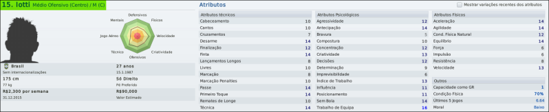 Tsuru Postado 13 de Junho 2011 Denunciar Postado 13 de Junho 2011 Parabens pelo ótimo começo na serie B. Empatar com o Bahia fora de casa é um ótimo resultado, alem das belas vitorias. Agora, eu temo pelas lesões nos amistosos, pois são varios jogos todos eles com diferença de 4 dias um do outro. Pois é, Boegas...o começo foi bom mesmo, vamos ver na sequência se somos mesmo candidatos a uma vaga ou "cavalo paraguaio". E confira aí embaixo o que rolou nos amistosos :thumbsup: Ótimo começo, se mantenha nesse ritmo que a vaga na Série A é sua Obrigado Anthraxx, com mais algumas vitórias o sonho da Série A pode começar a virar realidade! Esse começo foi bastante importante. Ficar nas cabeças da competição, nessa fase do campeonato é bom porque dá pra planejar melhor durante o intervalo da Copa. Pois é, Renato, estreamos bem...o problema é que, sem dinheiro em caixa e com a folha de salários estourada, me resta apenas trabalhar a parte tática durante a intertemporada. Vamos ver o que conseguimos na sequência. Nada mau esse começo, vencendo em casa, e conquistando pontos importantes fora, isso é o Brasileirão! Disse tudo, Igor...valeu! começou bem, isso eh importante vamos ver até onde esse time pode ir Vamos mesmo...a volta da Série B vai ser crucial para definir em que parte da tabela vamos brigar. Obrigado Caio! começo bom, tomara que com a pausa da copa do mundo o time nao caia de ritmo :P Assim também espero. Valeu Augusto! Ta fazendo valor ao fator casa, é assim mesmo. Ainda é cedo pra falar algo, e mal começou já parou, tem que ver se o time rende com a tática nos amistosos e botar ela pra funcionar. Detalhe, dos 4 primeiros, 3 são pernambucanos? Fator casa é chave, fiz as contas aqui, e numa hipótese de vencer todos os jogos em casa e empatar todos os jogos fora, teríamos campanha de campeões. É claro que não vai acontecer, mas serve para mostrar que estamos no caminho certo. E sim, temos 4 times de Pernambuco entre os três primeiros colocados...o futebol do estado está mesmo nas cabeças nesse início de Série B :specool: Experiências, erros e acertos 10/07/2014 Nossa viagem aos Estados Unidos e à Costa Rica foi bastante interessante. Pela primeira vez desde que comecei a carreira tive um mês e meio inteiro, sem competições oficiais, para preparar o time, testar formações, variações táticas, e experimentar jogadores em diferentes posições. Por esse lado foi ótimo, mas, em campo, deixamos um pouco a desejar. Não sei se foi o forte ritmo da Série B, se as muitas trocas de posição prejudicaram a equipe, ou mesmo as mudanças táticas; fato é que os resultados não foram tão bons quanto os da primeira intertemporada nos Estados Unidos. Mas, antes de falarmos dos jogos, vamos a uma rápida análise do mercado de transferências. Neste início de julho, tivemos confirmadas as saídas de vários jogadores que já estavam vendidos, o que representou dinheiro nos cofres do clube e um bom alívio em nossa folha salarial. Ao mesmo tempo, confirmamos as chegadas de três novos reforços. O primeiro deles é o atacante uruguaio Marcelo Guerrero, que vem para fazer sombra à João Paulo e Danilo Santos. Junto com ele se juntou ao grupo o meia Iotti, que foi testado durante nossa intertemporada e me agradou. E por fim, o último reforço é o goleiro Dionanttan, que chega para compor elenco. Na verdade, os três reforços são para compor elenco, pois sinceramente, o mercado está escasso, o dinheiro é pouco e não vejo muito mais o que fazer. Vendi quase meio time nessa metade de ano, coloquei dinheiro em caixa, mas mesmo aliviada a folha salarial continua estourada, o que torna muito difícil negociar com qualquer atleta. Com isso, nosso elenco para o restante da temporada será o seguinte: Também devido à escassez de bons extremos (meias direita e esquerda) no mercado, decidi não priorizar, ao menos por enquanto, as táticas onde eles são fundamentais. Quando tivermos de jogar no 4-4-2 britânico ou no 4-4-2 em losango aberto, usaremos mesmo as opções que já temos no elenco. Começamos nossa viagem nos Estados Unidos, onde entramos como favoritos contra o Kansas City. Apostei em um time ofensivo, mas o resultado foi um desastre: sofremos um gol, esbarramos na retranca deles e não conseguimos nem mesmo empatar. Não estava entendendo a diferença de comportamento entre esse início de intertemporada e o anterior (que fizemos antes da segundona). Seria o ritmo da Série B, onde jogamos de forma muito mais recuada e defensiva do que no Campeonato Pernambucano? Resolvi experimentar jogar no contra-ataque, e apesar dos dois gols sofridos, jogamos melhor e vencemos o Baltimore. A partir daí, mantive o time no contra-ataque e seguimos bem, vencendo o Dallas, o Brujas, o Herediano e o Alajuelense - esses três últimos, já na Costa Rica. Por fim, considerei normal a derrota para o Saprissa e fiquei irritado com o empate contra o Northern Virginia. Fechando a série de amistosos, vencemos bem o Porto Alegre, mas voltei da viagem com uma pulga atrás da orelha. Dos nove jogos que fizemos, só não levamos gols em dois. O que estará acontecendo com a defesa salgueirense? Enquanto viajávamos, acompanhamos pela TV a grande frustração da Seleção Brasileira, que caiu nas oitavas de final da Copa do Mundo, em casa, ao perder para...a Croácia. E a zebra galopou na grande final no Maracanã: a Costa do Marfim de Didier Drogba bateu a França e conquistou o primeiro Mundial do continente africano. Na reestreia da Série B temos um jogo teoricamente mais fácil, contra o Americana-SP em casa. Já a sequência nos reserva três confrontos bastante difíceis, sendo dois deles fora. Vamos a campo procurando manter o mesmo ritmo do início da competição. Um grande abraço a todos e até a próxima! Raimundo Cavalcanti