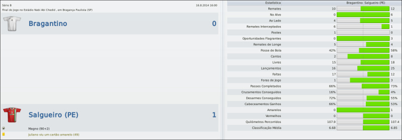 Tsuru Postado 27 de Junho 2011 Denunciar Postado 27 de Junho 2011 Pessoal, devido à falta de tempo, voltarei a postar com as estatísticas dos jogos em link. O modelo que eu vinha utilizando é melhor visualmente, mas leva muito tempo para ficar pronto e prejudica o ritmo da atualização. Espero que compreendam. Obrigado! Reage, Carcará! 30/08/2014 O mês de agosto não foi, para o Salgueiro, muito melhor do que julho. Com algumas mudanças no time e uma postura mais defensiva de jogo, esboçamos uma reação e conseguimos alguns bons resultados na Série B. Porém, ainda perdemos mais do que ganhamos, situação que nos colocou em uma situação delicada, a apenas um ponto da zona de rebaixamento. Estou vendo novamente o filme de dois anos atrás, quando saí do Central. A equipe parece não reagir às instruções e comete erros infantis; constrói resultados, mas não sustenta; e novamente as peças que há no banco parecem não ser suficientes para reverter a situação. E o fator casa, sempre tão importante, não vem sendo utilizado da melhor maneira. Por outro lado, falta dinheiro para contratar jogadores e investir na estrutura do clube. Então, vamos com o que temos, driblando as adversidades e nos mantendo firmes na busca por uma recuperação. Paraná | Portuguesa | Náutico | Bragantino | Campinense | Sport | Fortaleza | Criciúma Não começamos nada bem, recebendo o Paraná em casa com derrota - embora o time tenha mostrado mais empenho que nos jogos seguintes. Em seguida, viajamos a São Paulo e entrei com a equipe bastante defensiva para segurar o forte ímpeto da Portuguesa, um adversário complicadíssimo no Canindé. E qual não foi minha surpresa quando, em dois contra-ataques, Marcelo Guerrero e Willian Alves fizeram 2 a 0 logo no início do jogo? O resultado era excelente, o que precisávamos: uma boa vitória fora de casa para levantar o moral. Mas a Lusa veio toda para cima e não conseguimos segurar o ímpeto dos paulistas. Achei que ao menos o empate era um bom resultado, mas o Salgueiro sentiu o empate e vieram mais dois gols deles. Assim, em vez do bom resultado, saímos com uma goleada de São Paulo. O time sentiu a derrota, e, contra o Náutico, levamos uma surra em pleno Salgueirão. Com os nervos em frangalhos, tínhamos mais um jogo duríssimo em São Paulo, dessa vez contra o Bragantino no Nabi Abi Chedid. Armei o time mais defensivo que de costume, fiz algumas mudanças - como Henrique ao lado de Gil na zaga, aproveitando lesão do titular Cleiton - e deu certo: jogamos bem e voltamos a vencer, com um gol de Magno já nos acréscimos. A vitória animou a equipe, e na rodada seguinte, em casa, fizemos um excelente jogo contra o vice-líder Campinense. Foi duro, foi suado, mas William - voltando a balançar as redes depois de um longo jejum - e Henrique, de cabeça, garantiram três pontos importantíssimos. O destino, porém, não nos ajudou: o jogo seguinte, que deveria ser o da afirmação - onde venceríamos a terceira seguida e deixaríamos a zona do rebaixamento de vez para trás - era contra o Sport na Ilha do Retiro. Sei bem como é duro enfrentá-los lá, e mais uma vez saímos derrotados. Ajudou bastante a expulsão de Willian Alves ainda no primeiro tempo, quando tentávamos reagir ao gol marcado por Leandro Guerreiro. Mas, nada de desânimo: com dois gols de Cleiton, de cabeça, vencemos mais um jogo suado, desta vez em casa contra o Fortaleza. E fechando o longo mês de agosto, viajamos até a longínqua Criciúma, em Santa Catarina, onde perdemos para os donos da casa. Com isso ocupamos a 16ª posição da tabela, a apenas um ponto do Bragantino, primeiro colocado da zona de rebaixamento. Situação que não é nada confortável, mas, ao mesmo tempo, estamos a apenas dois pontos da Portuguesa, 12ª. Não podemos desanimar agora. Além de marcar o início do returno da Série B, setembro nos reserva alguns jogos muito difíceis, como a Ponte Preta no Moisés Lucarelli e o Coritiba no Couto Pereira. Precisamos pontuar o máximo fora e vencer em casa para não entrarmos na zona de rebaixamento. Um grande abraço a todos e até o mês que vem! Raimundo Cavalcanti