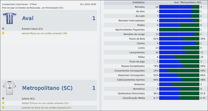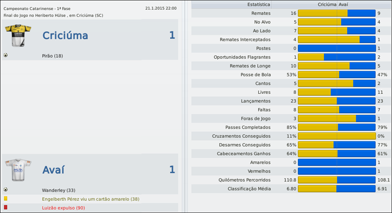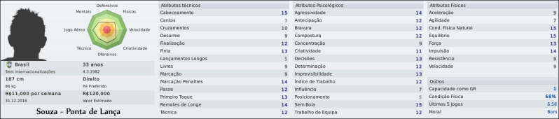 Tsuru Postado 1 de Setembro 2011 Denunciar Postado 1 de Setembro 2011 Rola a bola no Estadual 09/02/2015 Começou: depois de quase seis meses de muita expectativa da minha parte, rolou a bola no Campeonato Catarinense. Mas, antes de falar sobre o Estadual, vamos a uma rápida análise do mercado de transferências nos meses de janeiro e fevereiro. O primeiro reforço foi o meia Hugo, que estava sem clube. Versátil, ele pode jogar de meia central, meia ofensivo e meia esquerda (uma função rara e importante no esquema tático do Avaí, conforme vocês verão a seguir). Depois chegou o jovem meia Renan, enviado pelo Grêmio como resultado da recente parceria que fizemos com eles. Porém, a chegada dele me desagradou, pois era uma contratação que não pedi e para uma função cheia de opções – meia ofensivo. Assim, o jogador foi devolvido ao Tricolor Gaúcho. Outra contratação importante foi do atacante Souza, o mesmo que jogou no Vasco, no Flamengo, no Corinthians e no Bahia. Aos 33 anos, ele vem para disputar posição com Dinei como homem de referência. Por sua vez, o goleiro Marcos Weynnicios já estava acertado antes mesmo de eu chegar ao Avaí. E, fechando o ciclo de contratações para o time principal, contratamos o jovem senegalês Diédhiou. Recomendado por um empresário, ele chegou com salário abaixo do mercado, e já aos 18 anos vem para ser titular. Sem dúvida, um excelente negócio. Também contratamos os jovens Pareja, José, Fabiano e Chiquinho, que seguem direto para nossas categorias de base. Por outro lado, o meia boliviano Joselito Vaca e o zagueiro Rafael – que tinha um salário de R$ 36 mil/mensais e não estava nos planos – deixaram a Ressacada. Na parte tática, decidi seguir uma linha mais “básica”, alternando entre duas formações, como fiz na época do Central. A primeira delas é o tradicional 4-3-1-2, com dois volantes (Díaz e Éverton César). A segunda formação é um 4-4-2 inglês, em que Díaz e Leandro Bomfim saem para as entradas de Pérez na meia-esquerda e Hugo na meia-direita. Dinélson passa a ser o meia central mais ofensivo, e Everton César, o responsável por ligar a defesa e o meio de campo, apoiando o ataque quando necessário. Em ambas as formações a estratégia escolhida é o contra-ataque em velocidade. Se o time se encaixar muito bem e mostrar que pode jogar de maneira mais ofensiva, poderemos repensar. Enquanto contratávamos, rolava a bola no Campeonato Catarinense, cuja fórmula é parecida com a do Carioca: no primeiro turno, os dez times jogam entre si uma vez cada, em sistema de pontos corridos, e os quatro melhores vão às semifinais. Os dois vencedores das semifinais, por sua vez, decidem o título do primeiro turno. No segundo turno os times voltam a jogar entre si uma vez cada, na mesma ordem do primeiro turno, com mando de campo invertido, em pontos corridos; novamente os quatro melhores colocados vão às semifinais, e os dois vencedores das semis decidem o título do segundo turno. O campeão do segundo turno enfrenta o do primeiro, em ida e volta, valendo o título estadual. Se um mesmo time conquistar o turno e o returno, é campeão sem a necessidade de finais. Nossa estreia no Estadual foi contra o Porto-SC e fizemos um grande jogo, goleando por 5 a 0. Surpreso com o encaixe rápido da equipe, não esperava o tropeço na rodada seguinte, em casa, contra o Chapecoense, em que saímos atrás no placar e só conseguimos empatar a 15 minutos do fim, com um golaço de Everton César chutando de longe: 1 a 1. Também em casa, jogamos bem e vencemos o Joinvile por tranquilidade por 2 a 0, em uma bela estreia de Wanderley. Voltamos a empatar, porém, contra o Criciúma, em que estreamos o 4-4-2 em duas linhas de quatro jogando fora de casa, no Heriberto Hülse. A estratégia não deu certo e saímos atrás no placar; ao soltar o time, equilibramos o jogo e Wanderley marcou o gol do empate em 1 a 1. Não foi um resultado de todo ruim, contando o time forte que tem a equipe do interior. De volta a Florianópolis e ao 4-3-1-2, o desafio era o Metropolitano, na Ressacada. Fácil? Nem um pouco. O Metro tem um bom time e conseguiu um empate importante em 1 a 1, depois que abrimos o placar com Everton César em mais um belo chute de longe. Contra o Brusque, mantive o time no 4-3-1-2 mas prendi mais os laterais, como fiz na nossa estreia contra o Porto, e como deixara de fazer nas rodadas seguintes. Voltamos a jogar bem e goleamos por 5 a 0, com gols de todos os jeitos e maneiras. Como em time que está ganhando não se mexe, seguimos jogando da mesma forma e goleamos novamente: 6 a 1 sobre o Juventus, em que o atacante Dinei foi o grande destaque ao marcar dois gols. Na penúltima partida do turno, recebemos o Marcílio Dias. Sem Wanderley e Cubilla, que se machucaram contra o Juventus, coube a Macena fazer os gols da vitória por 2 a 0, que garantiu a classificação para as semifinais da competição. Já classificados, enfrentamos o Figueirense no clássico da rodada. Jogamos bem, mas o adversário soube aproveitar a oportunidade que teve e venceu por 1 a 0, gol de Edson em jogada de escanteio. O sorteio das semifinais nos colocou mais uma vez frente a frente com o Figueirense, enquanto o Criciúma enfrentará o Marcílio Dias. Nosso jogo será no Orlando Scarpelli, já que o time alvinegro teve melhor campanha na primeira fase. Porém, a primeira fase ficou para trás; o que importa agora é a vaga na final, e trabalharemos duro para chegar lá. Um grande abraço a todos e até a próxima! Raimundo Cavalcanti