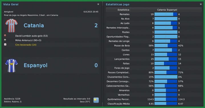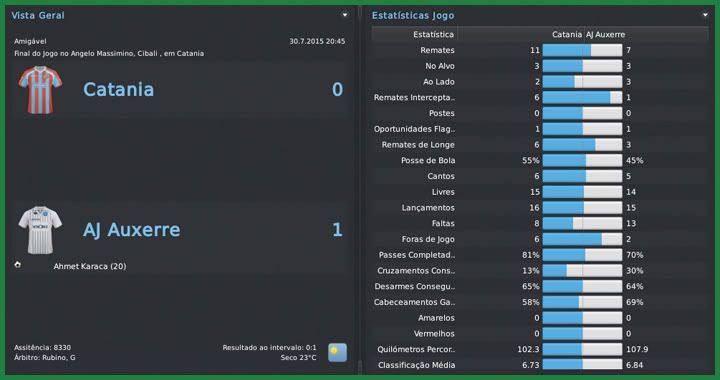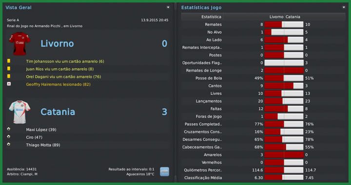 Bruno Trink Postado 10 de Maio 2011 Autor Denunciar Postado 10 de Maio 2011 Uma base inchada de um time que foi 11º colocado na última série A não era exatamente com o que eu pretendia contar nessa temporada de estreia no Catania. Por isso, as contratações foram muitas e as dispensas em maior número. Começando por aí, entre dispensas, vendas e empréstimos, saíram 24 jogadores do clube, somando quase €35M. Praticamente o triplo do que foi gasto com os treze reforços que chegam ao clube, além dos três que aqui já estavam em co-propriedade e que adquirimos os demais 50% dos direitos. A contratação mais sonora foi a do atacante Maxi López que estava na Sampdoria e volta ao clube depois de três temporadas. Com 31 anos e já sabendo como as coisas funcionam em Catania, vem para ser o companheiro do Ciro e o homem gol do time. Já tinha tentado contratar o meia esquerda sérvio Marko Milovanovic no Birmingham mas não consegui o visto de trabalho para ele. Sem esse problema na Itália, ele é o extra-comunitário que contratei para essa temporada. Ampliando a legião argentina, trouxe Bolatti e Formica. O volante chega para formar dupla com o Gago, enquanto treinarei o meia para jogar pelo lado direito do campo e brigar com o Dejagah e com o Sutchuin. Outro que chega para essa briga é o belga de ascendência chinesa Zhang Peng. Com apenas 19 anos, Peng já está quase pronto, tem muito a evoluir e é mais uma aposta para a próxima temporada, assim como são o goleiro Mattia Meneghini e o zagueiro português Ricardo Bettencourt. Construi o lado esquerdo do time, de acordo com o assistente, o setor mais fraco quando eu cheguei, com croata Mijo Bakaric e o espanhol Jurado. Os últimos quatro, o lateral direito Nathaniel Clyne, os volantes Thiago Motta e Francis Coquelin e o atacante Vicenzo Basso, chegam para compor elenco mas todos com condições de ganhar a posição a qualquer momento. Marko Milovanovic | Ricardo Bettencourt | Mattia Meneghini | Mijo Bakaric | Maxi López | Mario Bolatti | Nathaniel Clyne José Manuel Jurado | Zhang Peng | Mauro Formica | Thiago Motta | Francis Coquelin | Vicenzo Basso Ficamos com um elenco ainda um pouco inchado, com 28 jogadores, mas muito mais qualificado, na minha opinião. É claro que ainda temos muito a melhorar mas preferi não descaracterizar completamente o time nessa primeira temporada. Por mais que tenham sido treze caras novas, apenas quatro serão titulares na estreia do Catania na serie A. A zaga, por exemplo, seria um setor que eu reforçaria mas preferi apostar na experiência do Silvestre e do Esposito e no entrosamento dos dois com o Andújar. Temos titulares e reservas mais ou menos do mesmo nível em quase todas as posições. Talvez o Maxi López seja o único que não tenha um substituto à altura. Acredito que, se esse time não demorar muito para encaixar, uma vaga na Europa League é um objetivo bem palpável para essa estreia do Milla em campos italianos e bem acima das expectativas da diretoria. Priorizando o treinamento da pré-temporada, marquei apenas quatro amistosos antes do início do ano. Num 4-4-2 bem amarradinho, o time foi superior em todas as partidas. Contra o Auxerre, o jogo mais equilibrado, faltou pontaria, assim como no último, contra o Cartagena. Maxi López, esperança de gols do Catania na temporada, ainda não marcou. Espero que esteja guardando para as partidas oficiais. AJ Auxerre | Leganés | Espanyol | Cartagena O início da serie A para o Catania não será nada fácil. Estreamos no Giuseppe Meazza contra a Inter e depois recebemos a Juventus, duas das mais fortes equipes italianas. Melhor seria começar contra times mais fracos, mas não tem como escolher, vamos para a luta. A estreia na Coppa Italia, na 3ª Eliminatória, será contra o Frosinone, que hoje disputa a serie B. A limpeza feita no elenco foi essencial para a melhora da situação financeira do clube. É fato que algumas das negociações de saída dos nossos jogadores foi feita de forma parcelada, mas o balanço já é de mais de €12M. Temos que ver como funcionará, mensalmente, o equilíbrio entre receitas e despesas, mas acredito que consegui uma boa enxugada na folha salarial. Citar