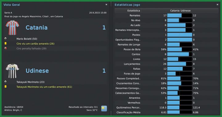 Bruno Trink Postado 12 de Maio 2011 Autor Denunciar Postado 12 de Maio 2011 O início foi um tanto quanto assustador. Fora a fácil estreia na Coppa Italia, fizemos a primeira partida na serie A logo contra a Inter que nos sapecou uma sonora goleada no San Siro. Recebemos, em seguida, a Juventus e imaginava outra derrota, o que levaria o moral do elenco lá para baixo. Mas com uma ótima atuação, surpreendemos e vencemos por 3 a 2. Daí em diante, nada de muito anormal. Perdemos para Palermo e Milan fora de casa, resultados esperados, mas vencemos cinco das primeiras onze partidas que fizemos. Para um time em formação e que ainda está num nível abaixo dos grandes da Itália, até que está bem razoável. Frosinone | Inter | Juventus | Livorno | Udinese | Sassuolo Fiorentina | Palermo | Atalanta | Milan | Sampdoria Estrear sofrendo aquela goleada não é nada tranquilo, mas o time se recuperou bem com a vitória sobre a Vecchia Signora. Estamos fazendo uma campanha mediana até agora, dentro das possibilidades que esse elenco me dá, e o Catania já está na parte de cima da tabela de classificação. O Milan já abriu uma vantagem interessante na liderança que, até pouco tempo, era do Genoa. Por sinal, as duas equipes da terra de Colombo começaram muito bem essa serie A e estão entre os quatro primeiros. Sassuolo e Benevento pintam como sérias candidatas a voltar para a segundona. Nenhum problema para bater o Frosinone, mesmo com o time reserva, e avançar para a fase seguinte da Coppa Italia, quando enfrentaremos o Torino. Esse início de temporada está confirmando o que eu já previa antes da estreia. Temos um elenco razoável, sem destaques individuais mas bastante trabalhador. Maxi López confirmou minha torcida, estava guardando os gols para os jogos oficiais e já marcou seis em dez partidas. A defesa, principalmente a dupla de zaga, é o calcanhar de aquiles. Benalouane ganhou a posição do Esposito, mas ainda não é o zagueiro dos meus sonhos, assim como não o é o Silvestre. Pensando nisso, já acertei com um reforço para a posição que chegará na janela de inverno. Uma dica: já jogou com o Milla. Um goleiro experiente para fazer sombra ao Andújar também vem em janeiro, enquanto mais um argentino, titular da seleção, chegará apenas na próxima temporada. Citar